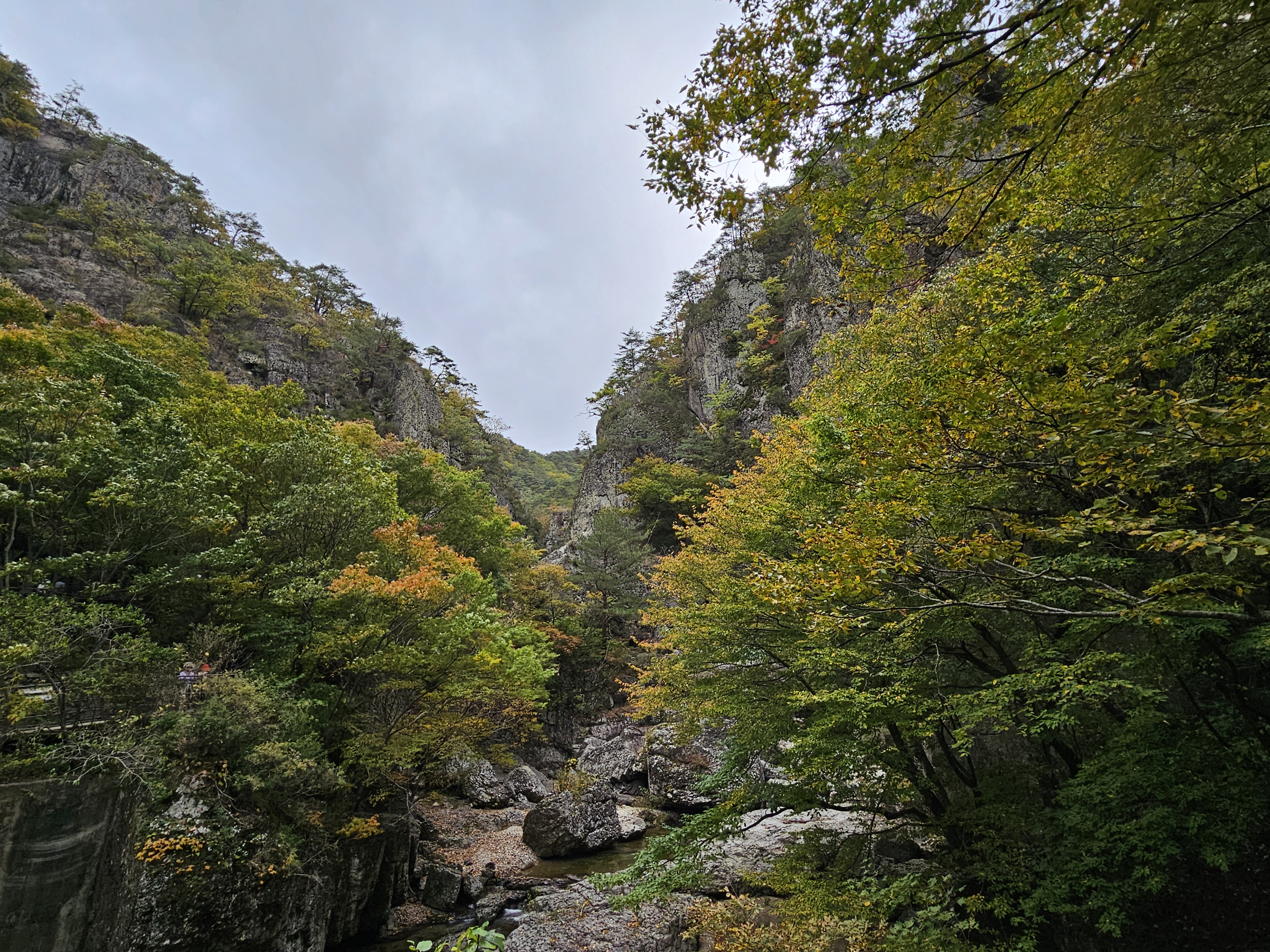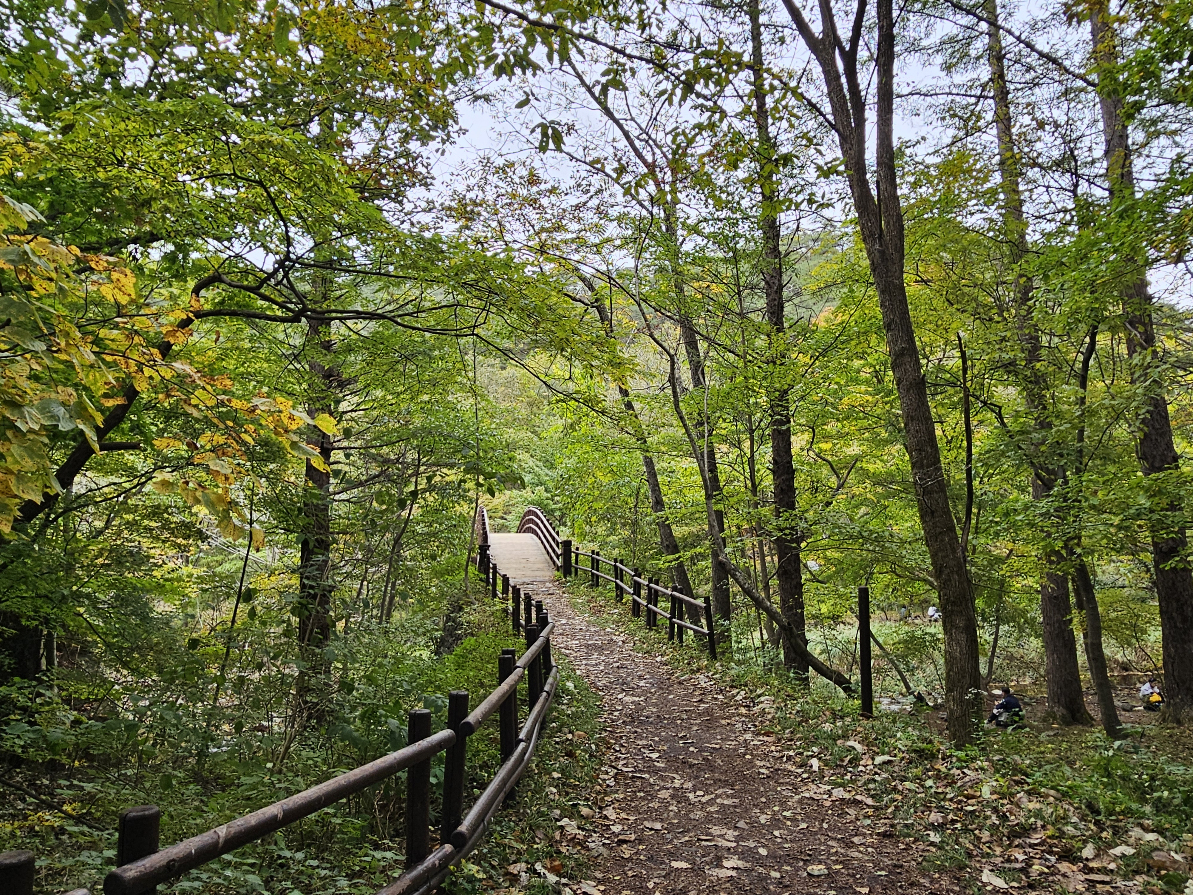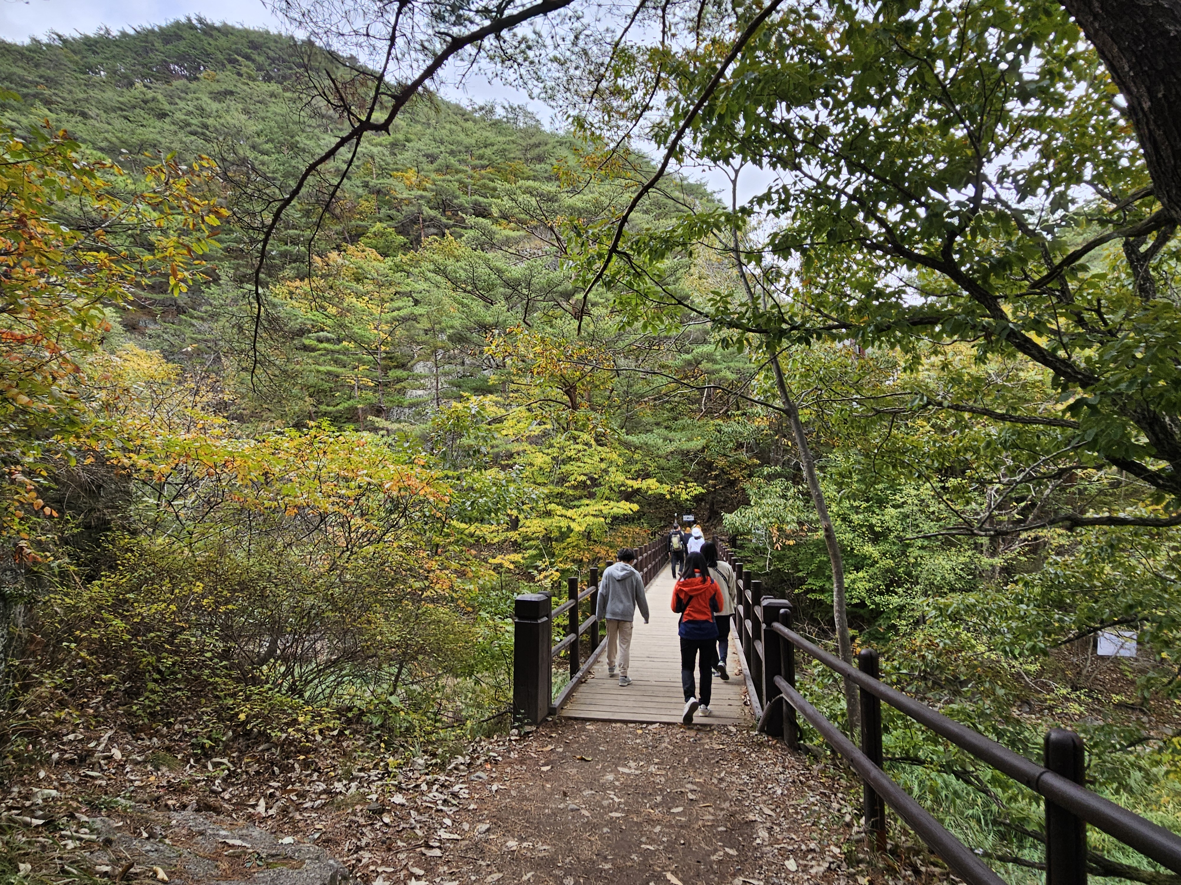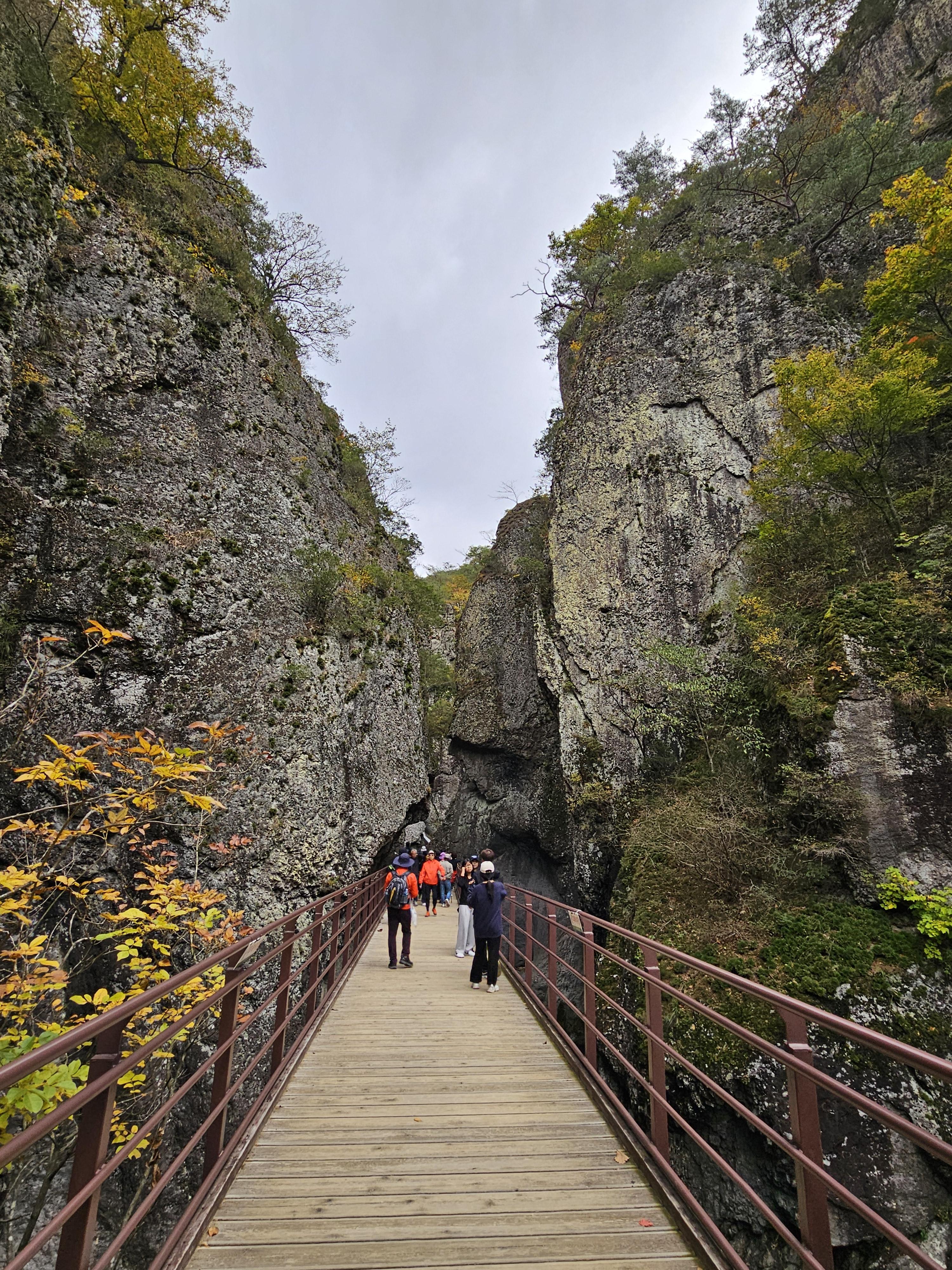 용추협곡의 작은 다리를 건넙니다.