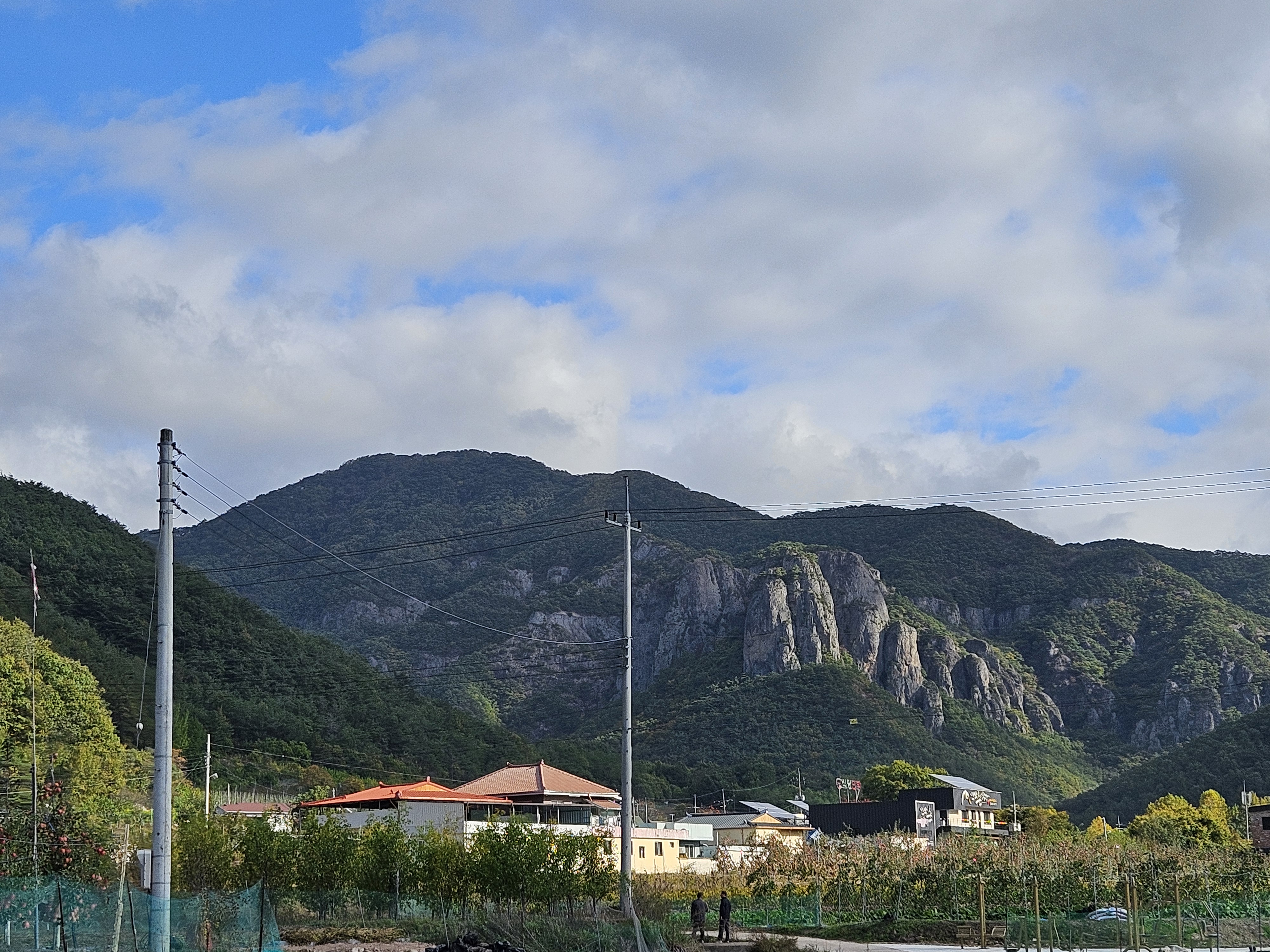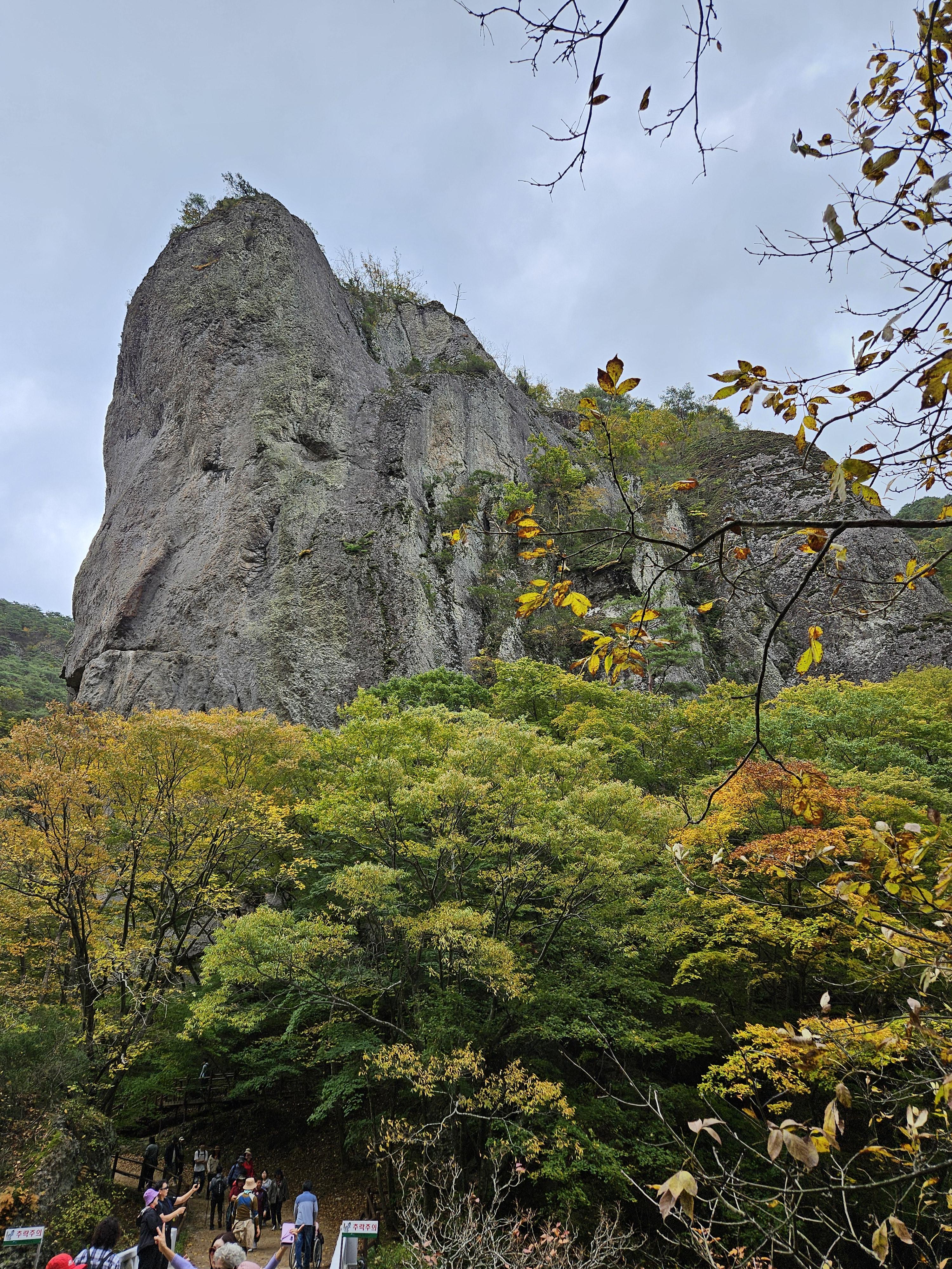 전방에 보이는 거대한 암벽바위