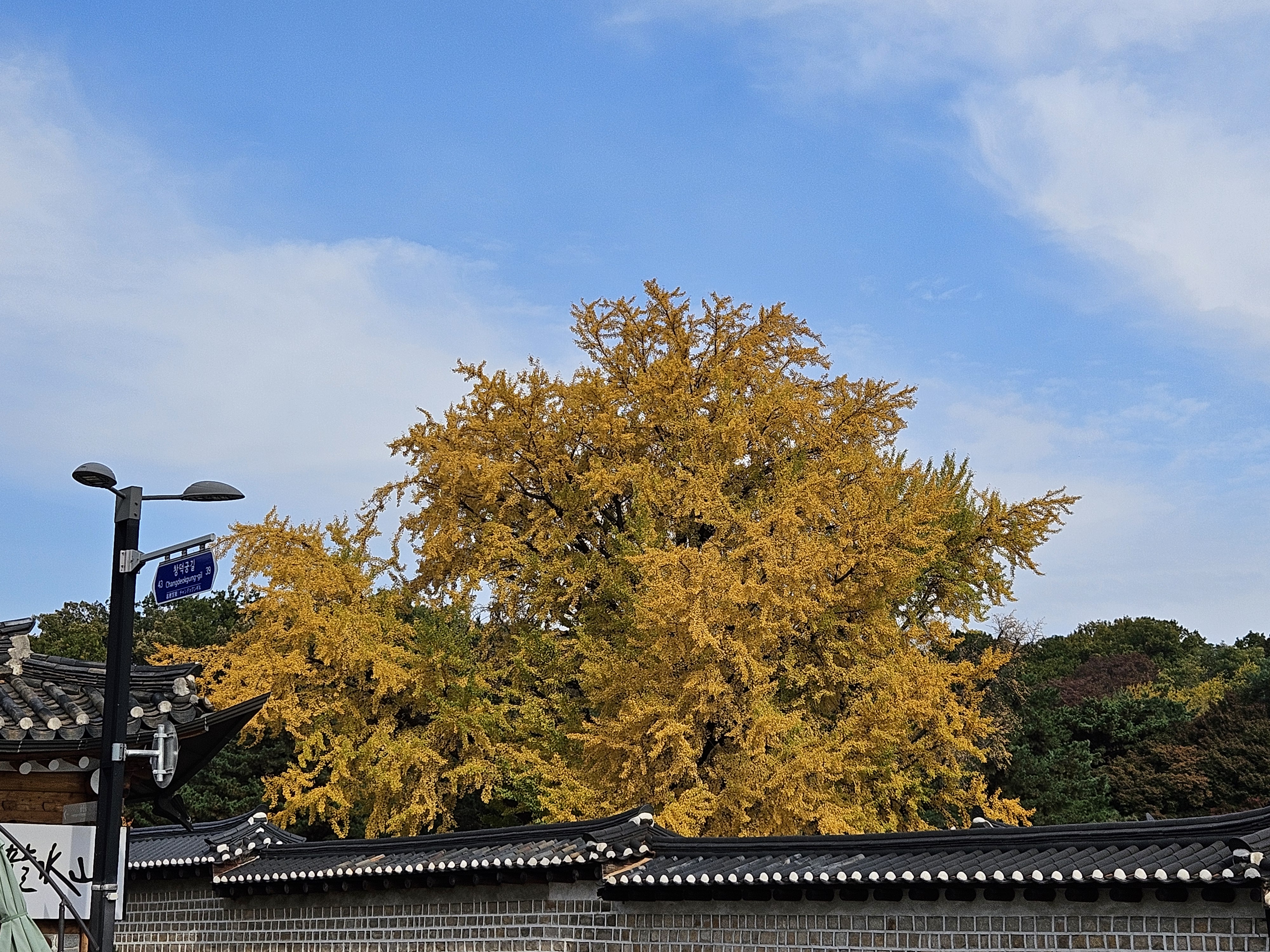 창덕궁 서쪽 담장 너머로 보이는 은행나무 모습