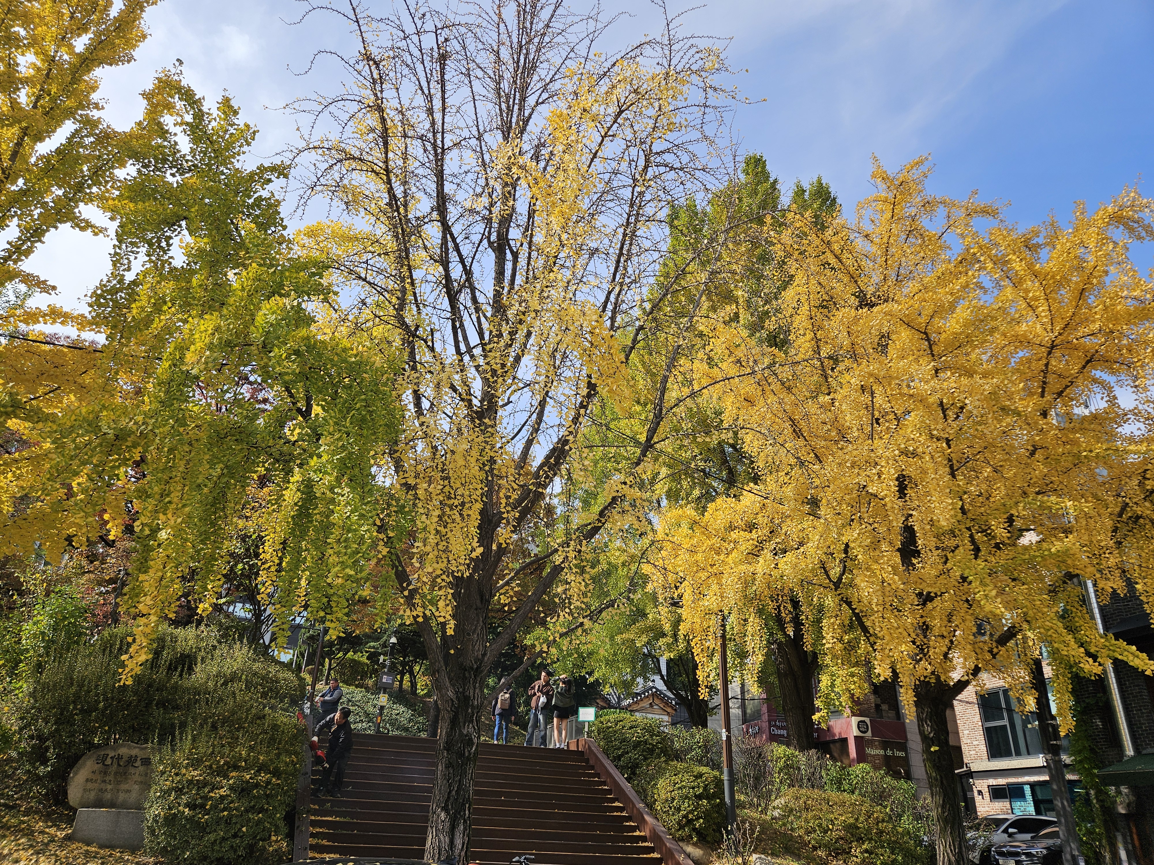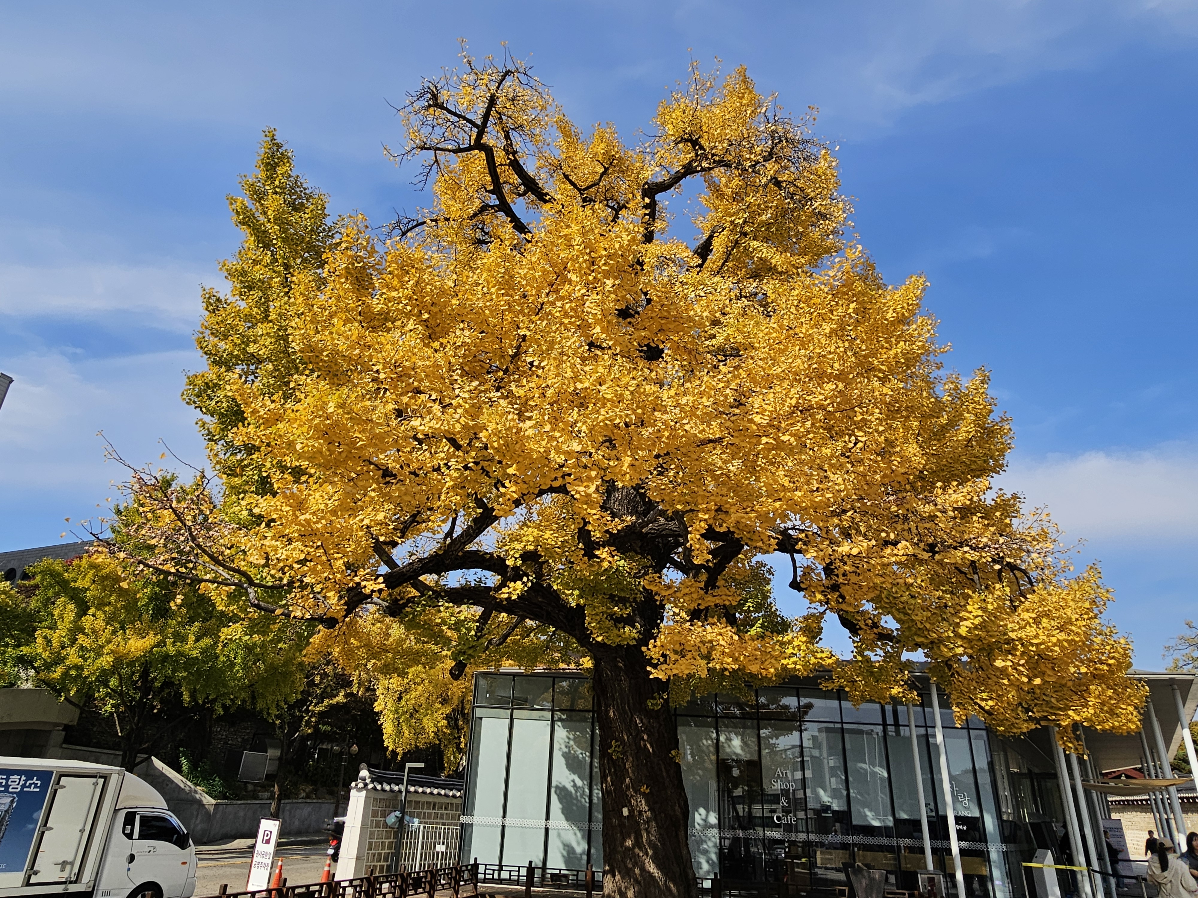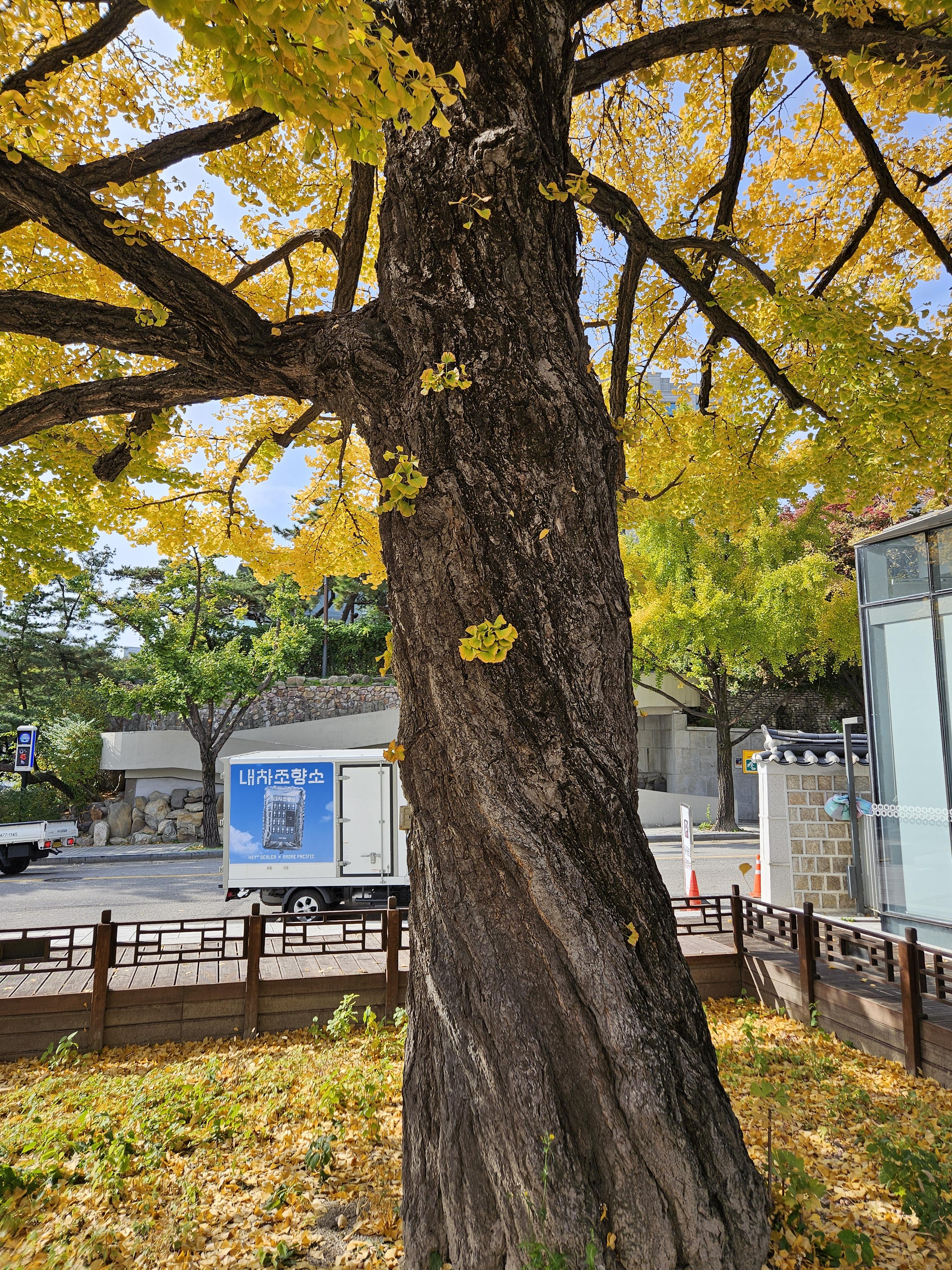 완연한 가을날씨가 이어지면서, 점심시간에 잠시 산책하다가 창덕궁 입구에 있는 은행나무와 창덕궁에서 750년이 넘은 향나무 위쪽에 있는 은행나무가 완전히 노랗게 물들어 가는 이의 발걸음을 멈추게 하고 있었습니다.