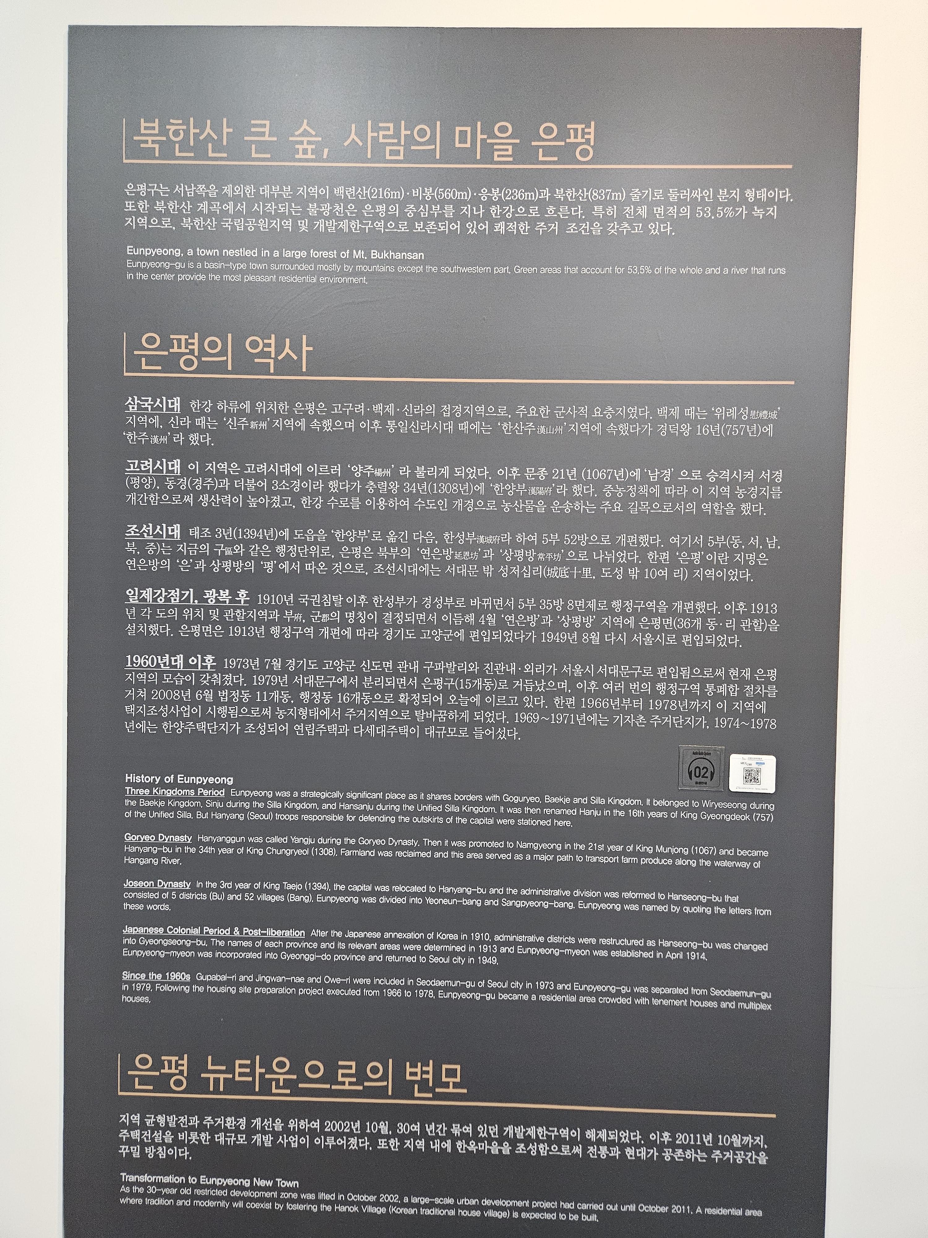 북한산 깊은 곳에 자리한 은평의 지리와 역사, 문화적 가치를 소개하는 전시공간입니다.
