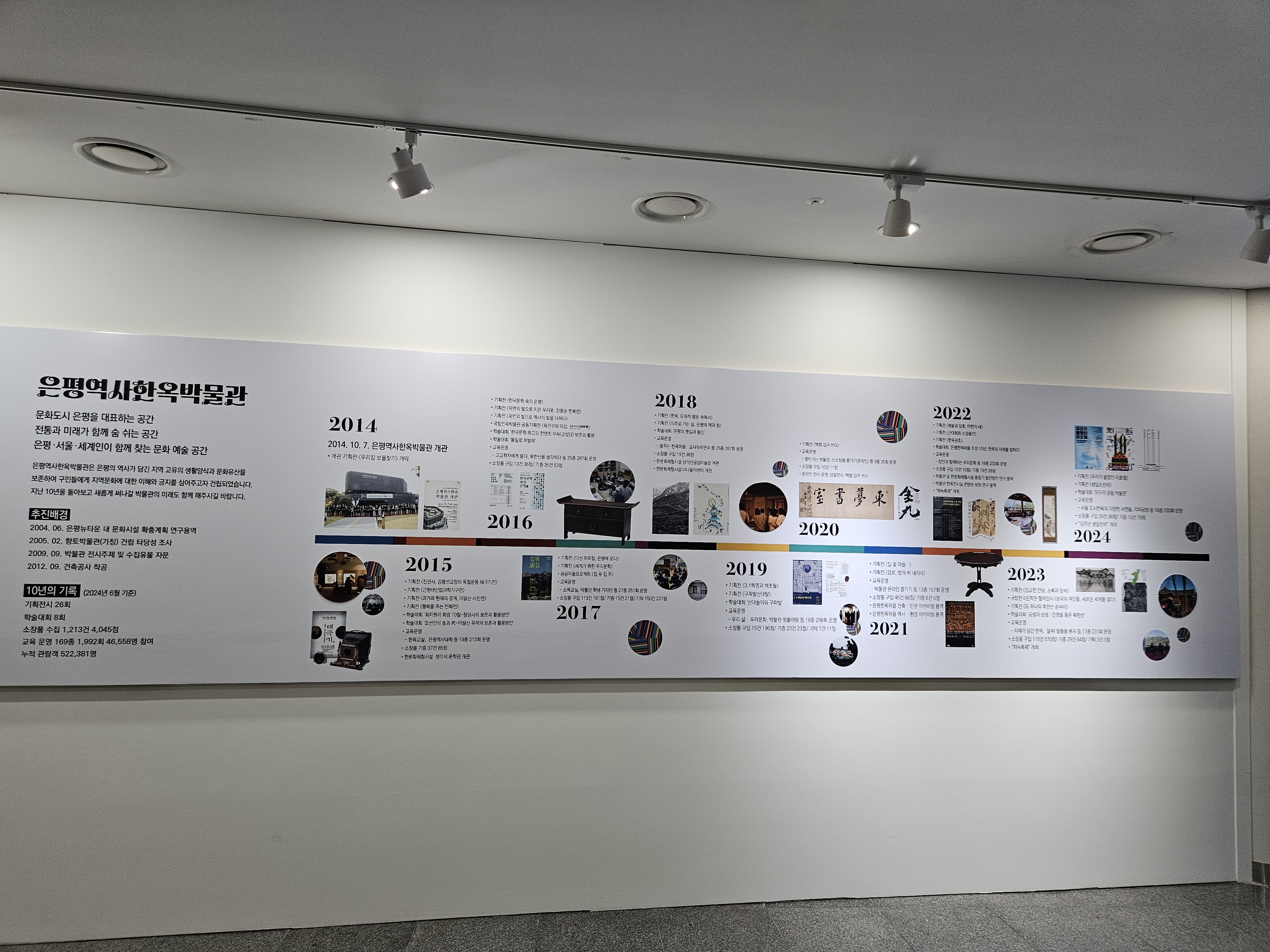 상설전시실에서 나오면 복도에 은평역사한옥박물관의 역사가 적혀 있습니다.