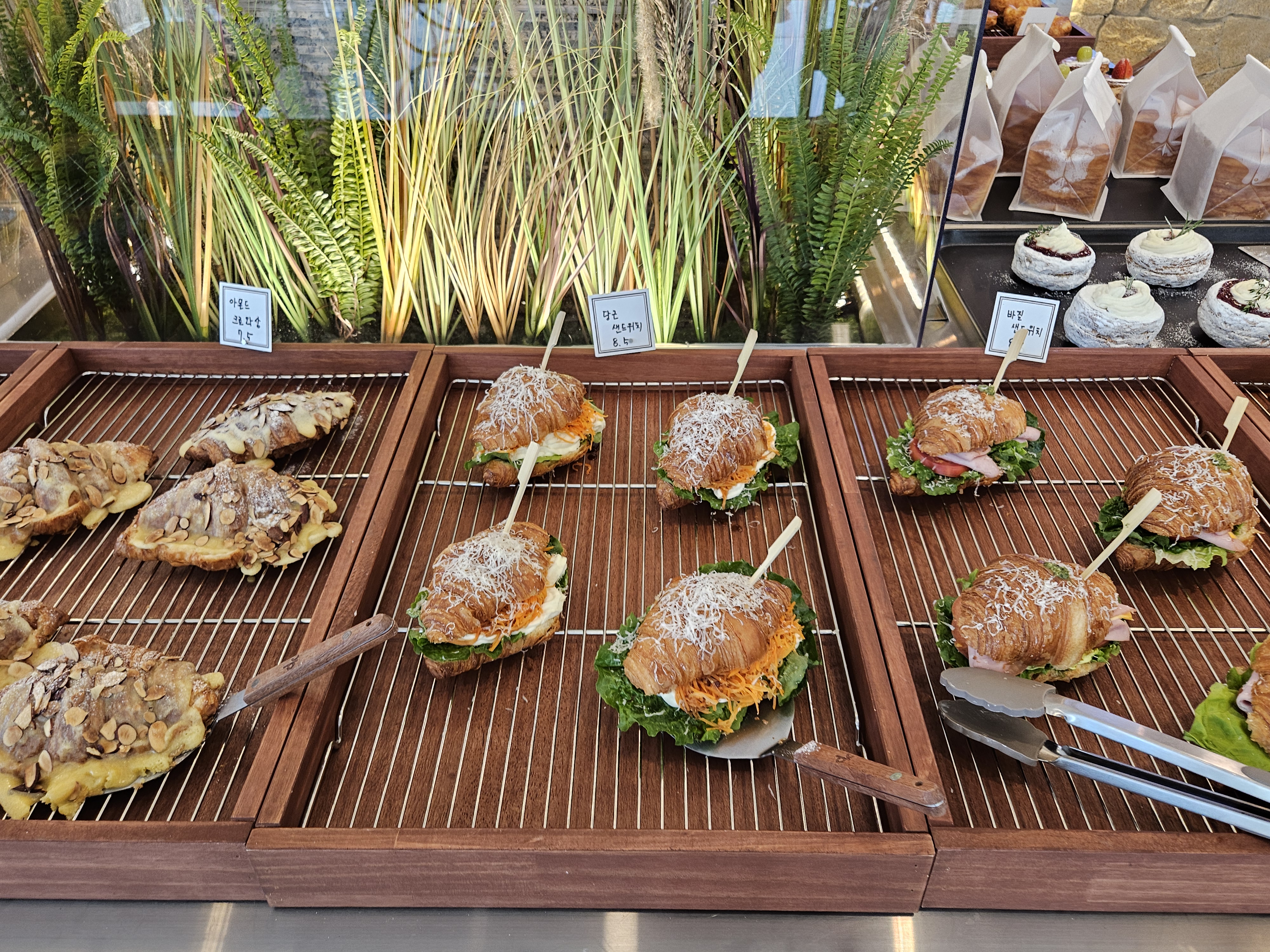 아몬드 크로아상 7,500, 당근 샌드위치 8,500, 바질 샌드위치 8,000 등