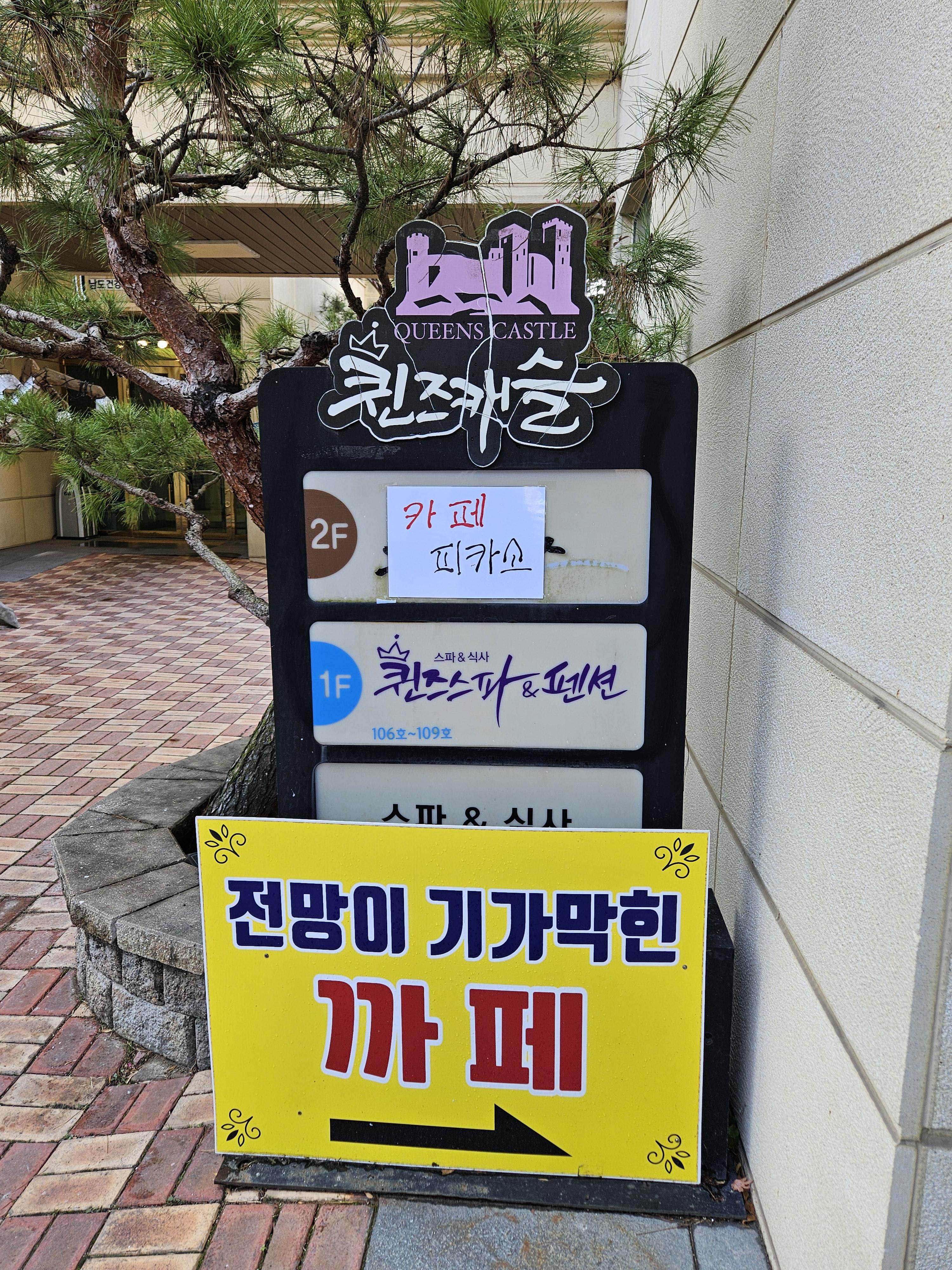 1층은 퀸즈스파 펜션이 있고, 2층에 카페퀸즈가 있는데요.