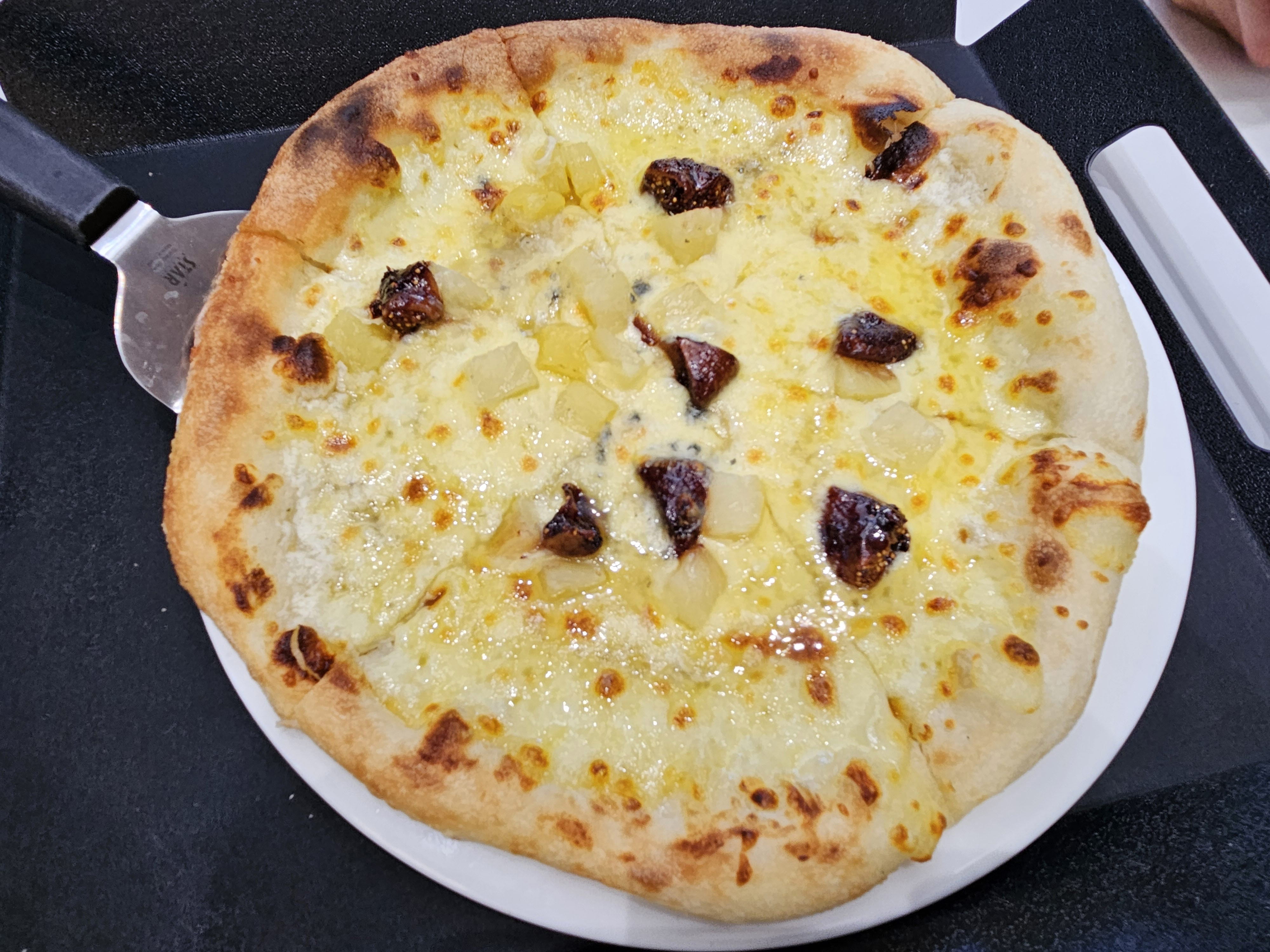 점심을 먹지 않은 탓에 무화과 고르곤졸라 피자와 페퍼로니 피자를 하나씩 주문했습니다.