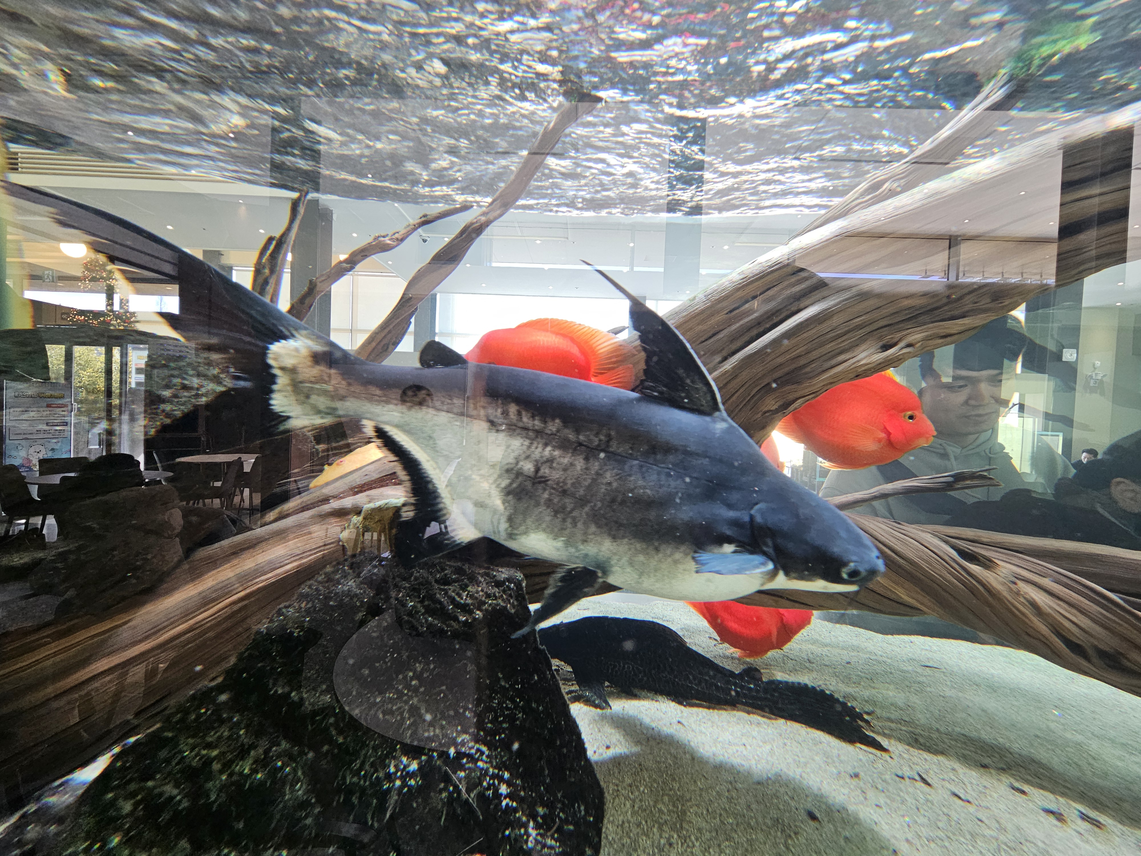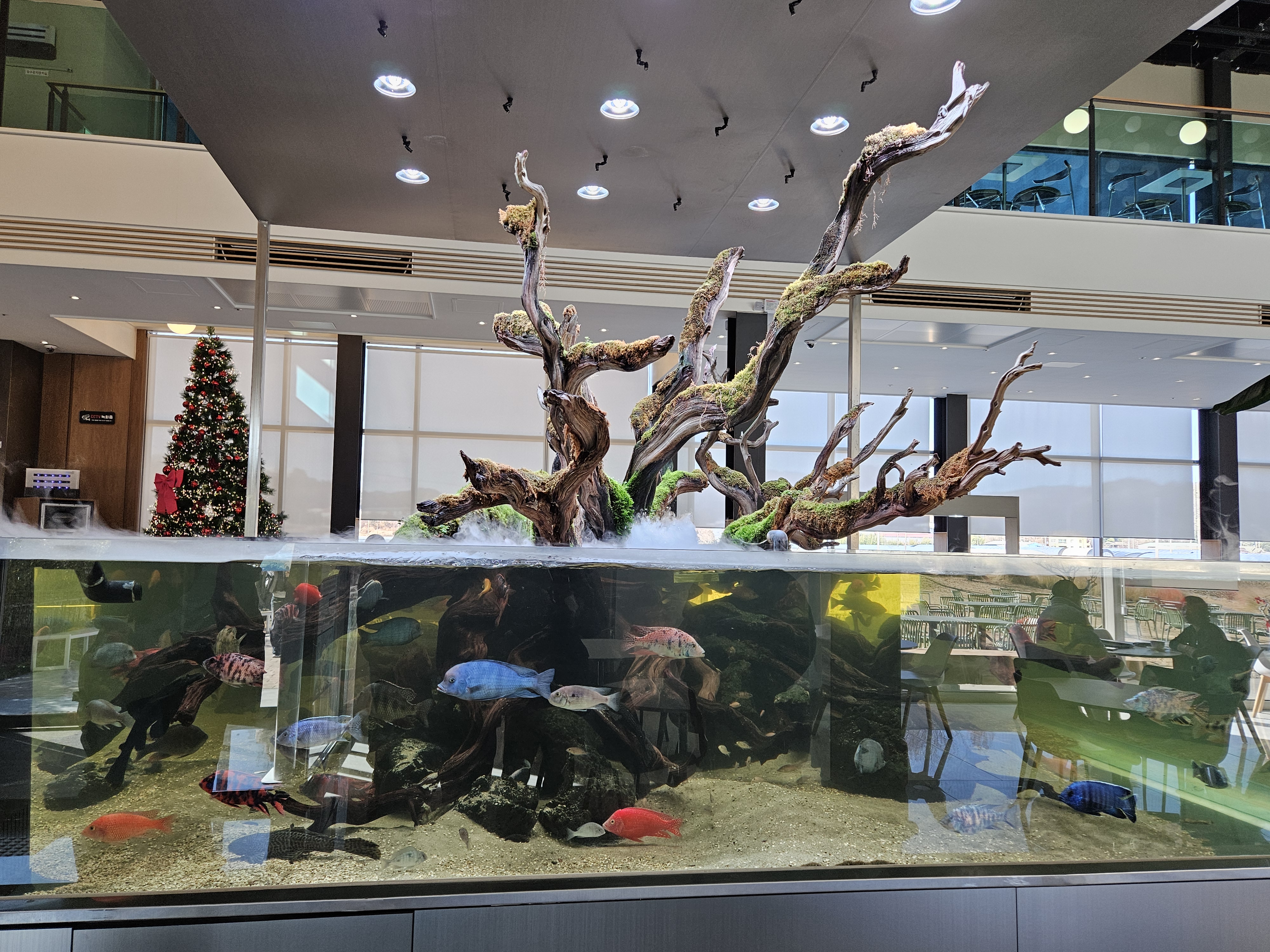 고목이 있는 수족관엔 다양한 열대어들이 잇네요.