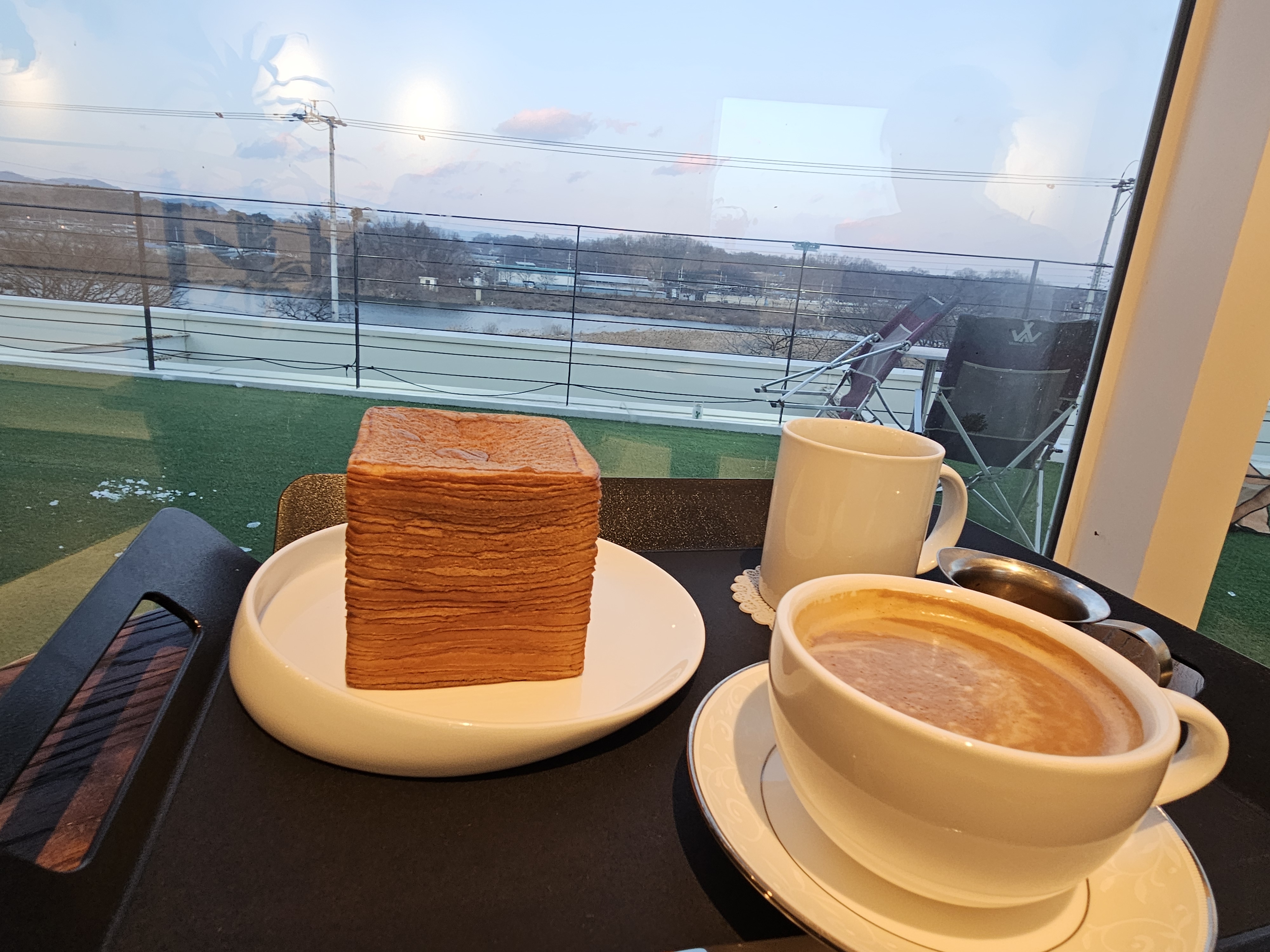 영강을 따라 카페가 몇 군데 있는데, 가장 큰 규모의 카페이고, 영강을 바라볼 수 있어서 인기가 많아 보였습니다.