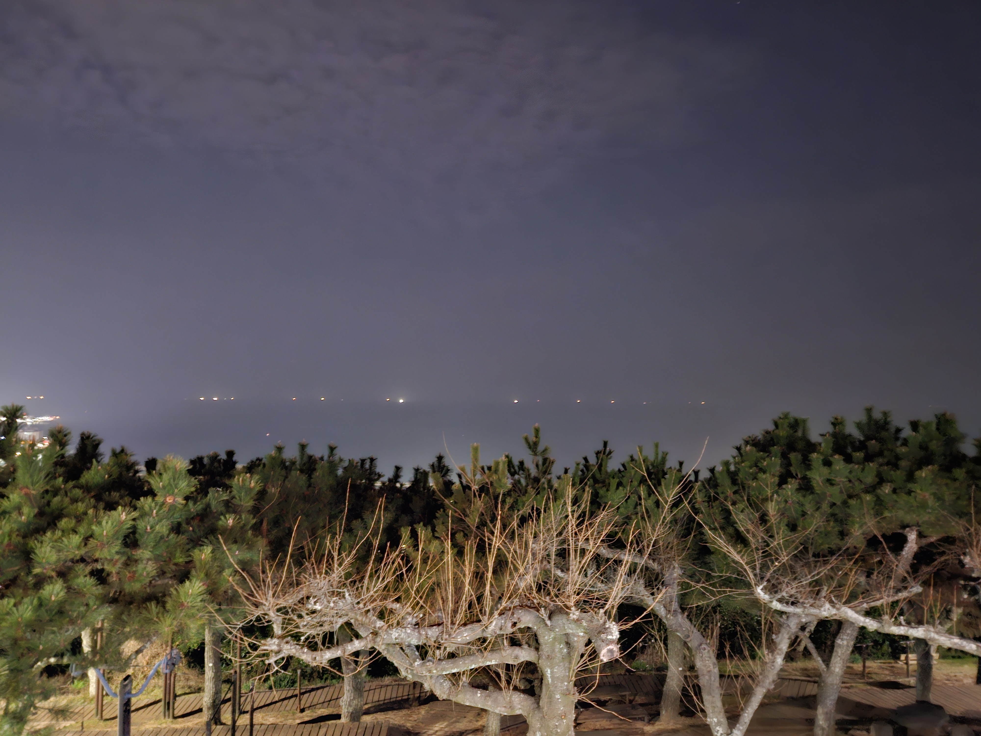 고기잡이 어선만 있는 제주시 앞바다 야경
