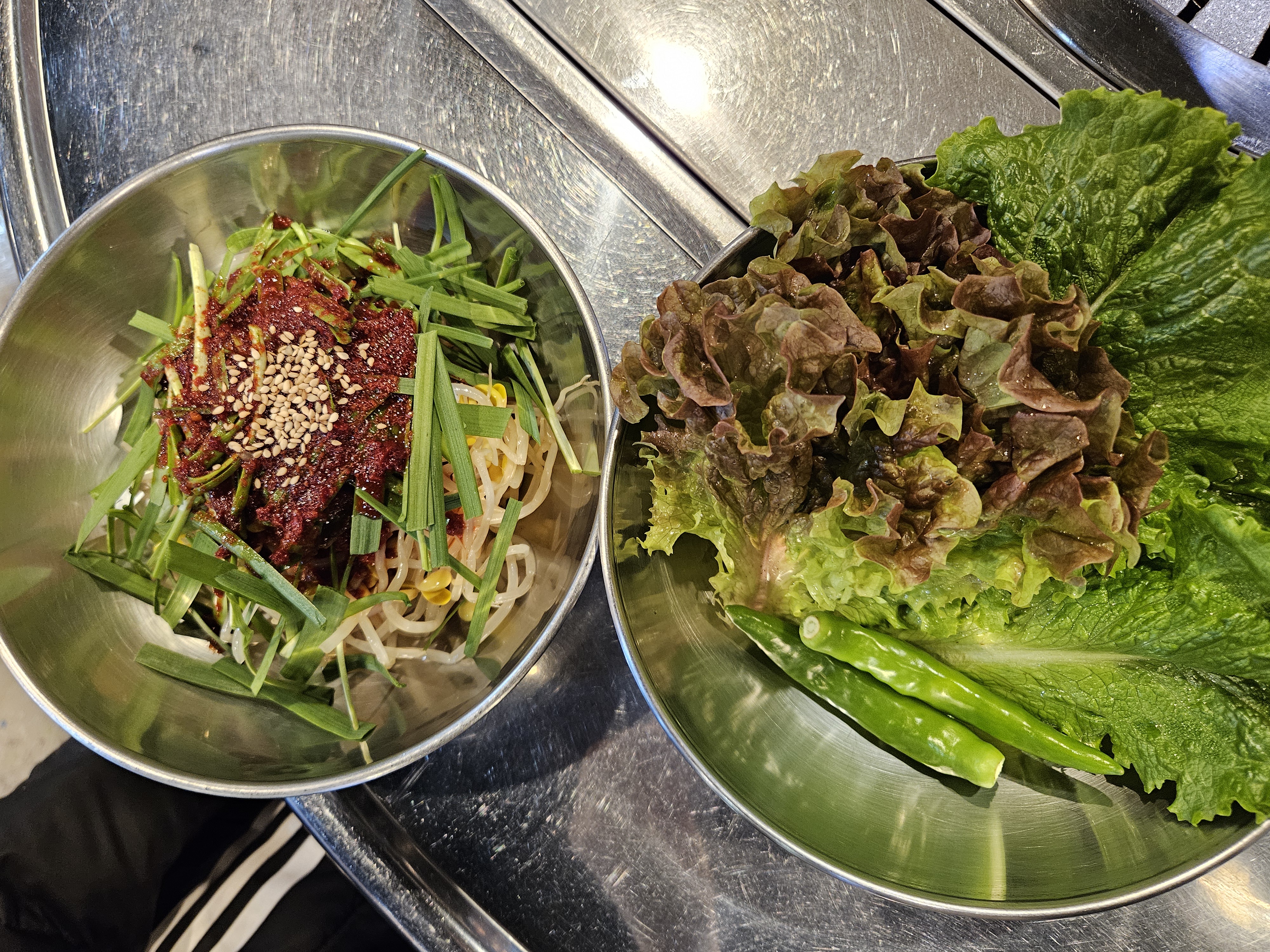 고기와 함께 먹을 부추콩나물무침과 쌈