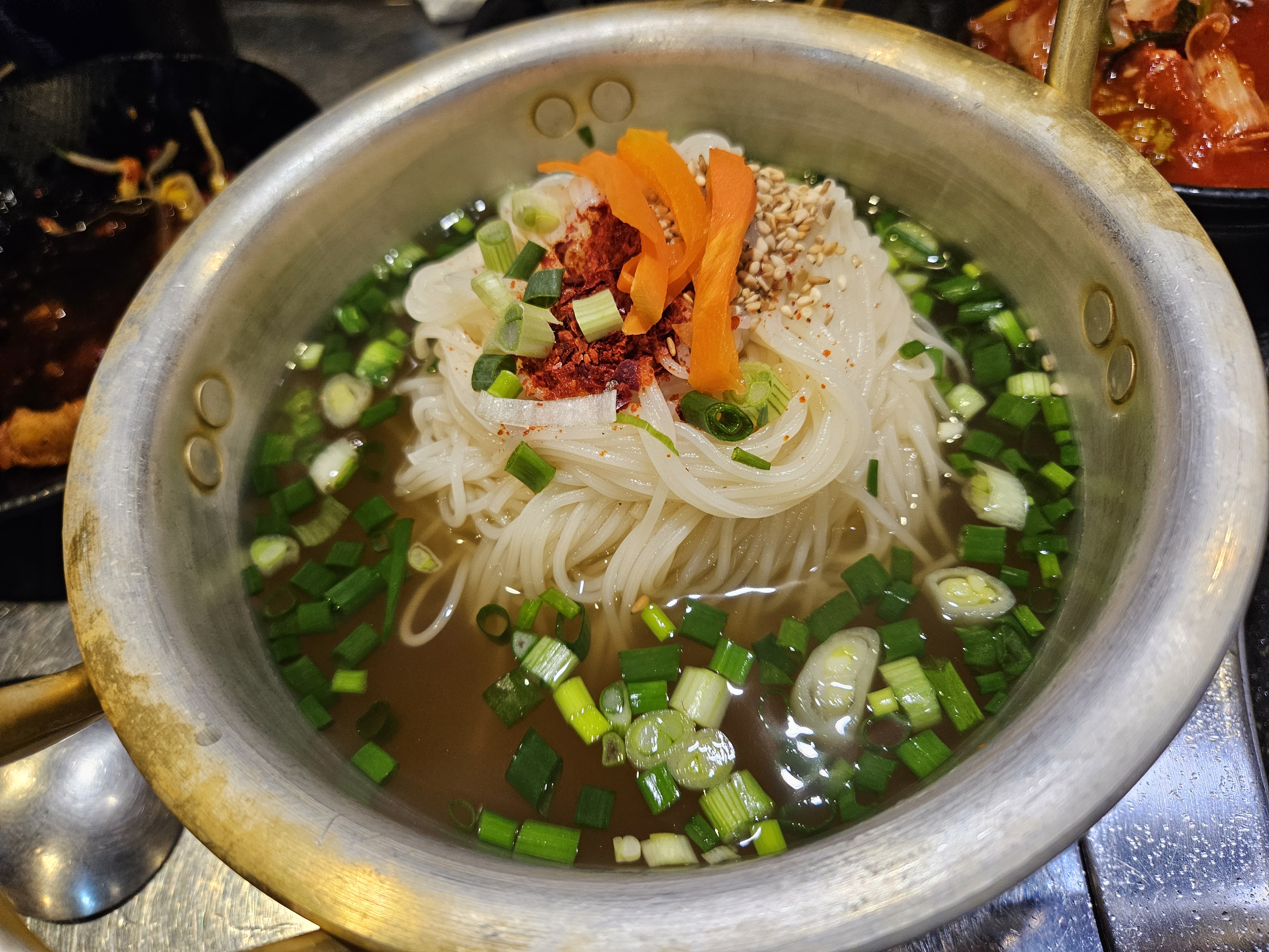 사이드 메뉴로는 멸치국수와 비빔국수, 김치찌개 등이 있고요.