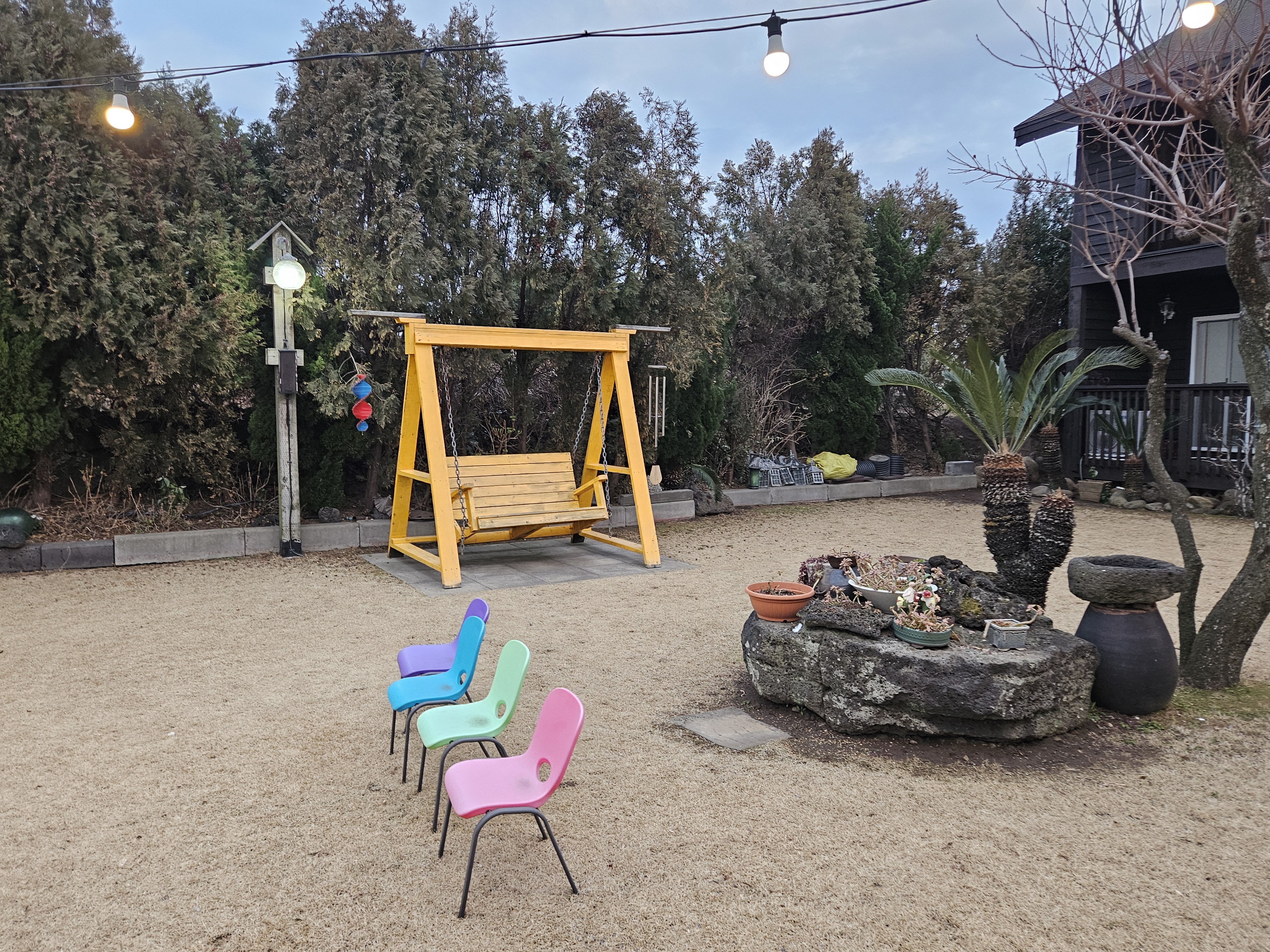 펜션을 함께 운영하고 있어서 야외 정원이 아기자기하게 꾸며져 있습니다.