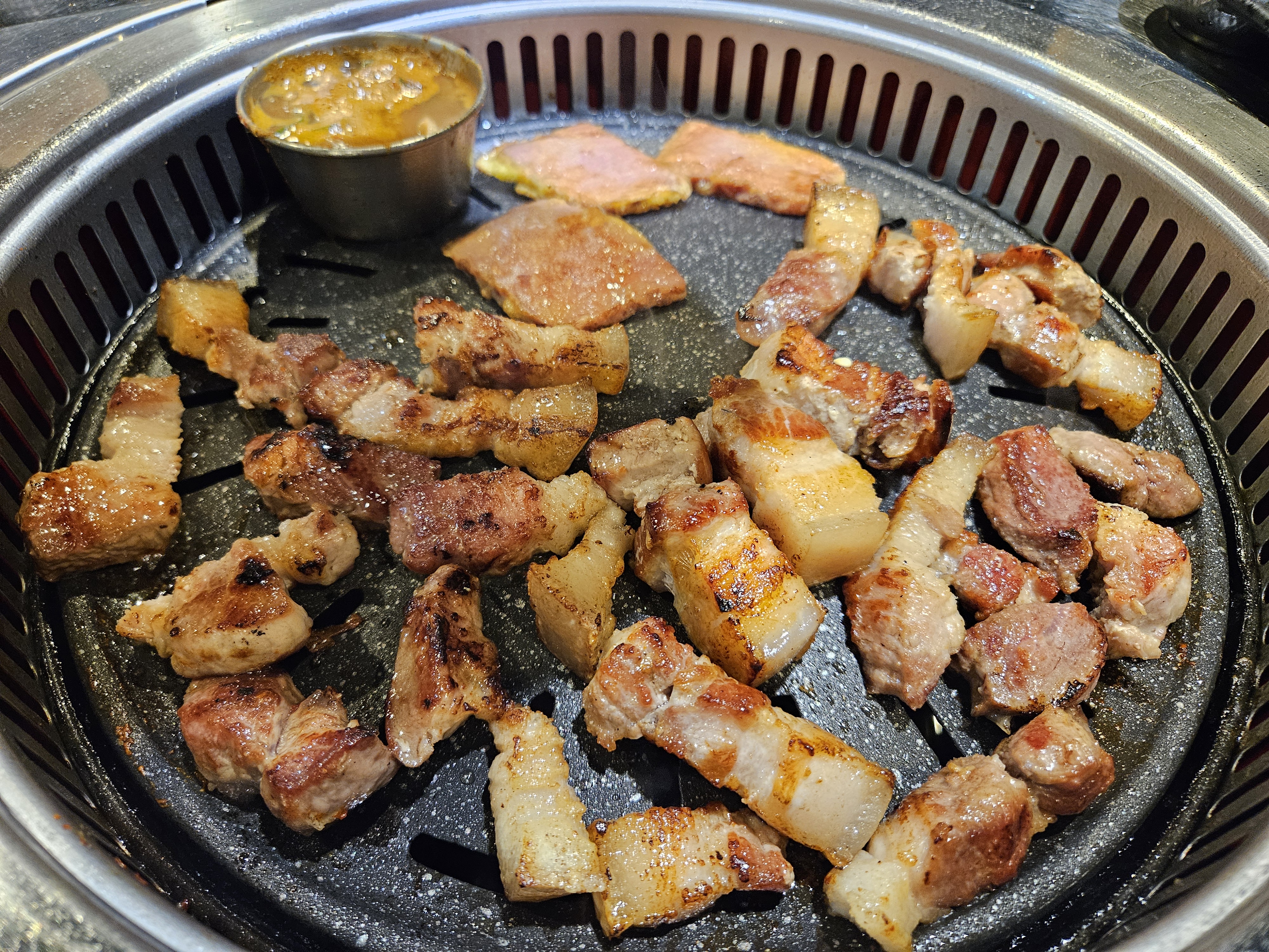 불판에 올라간 전지와 오겹살