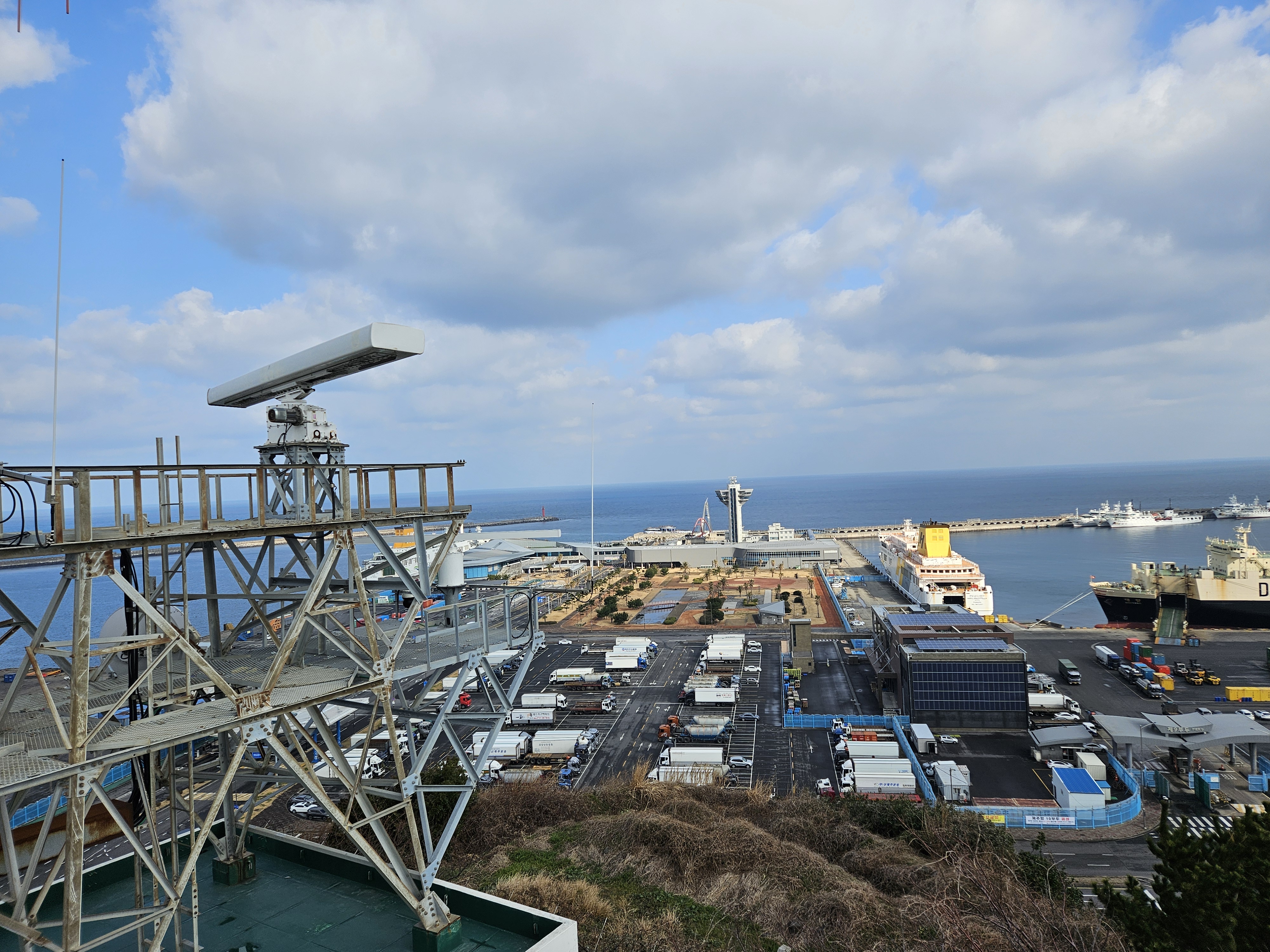 산지등대에선 제주도의 관문인 제주항 국제여객터미널이 한눈에 내려다보이고, 제주도 앞바다가 광활하게 펼쳐진 바다 뷰 맛집인데요.