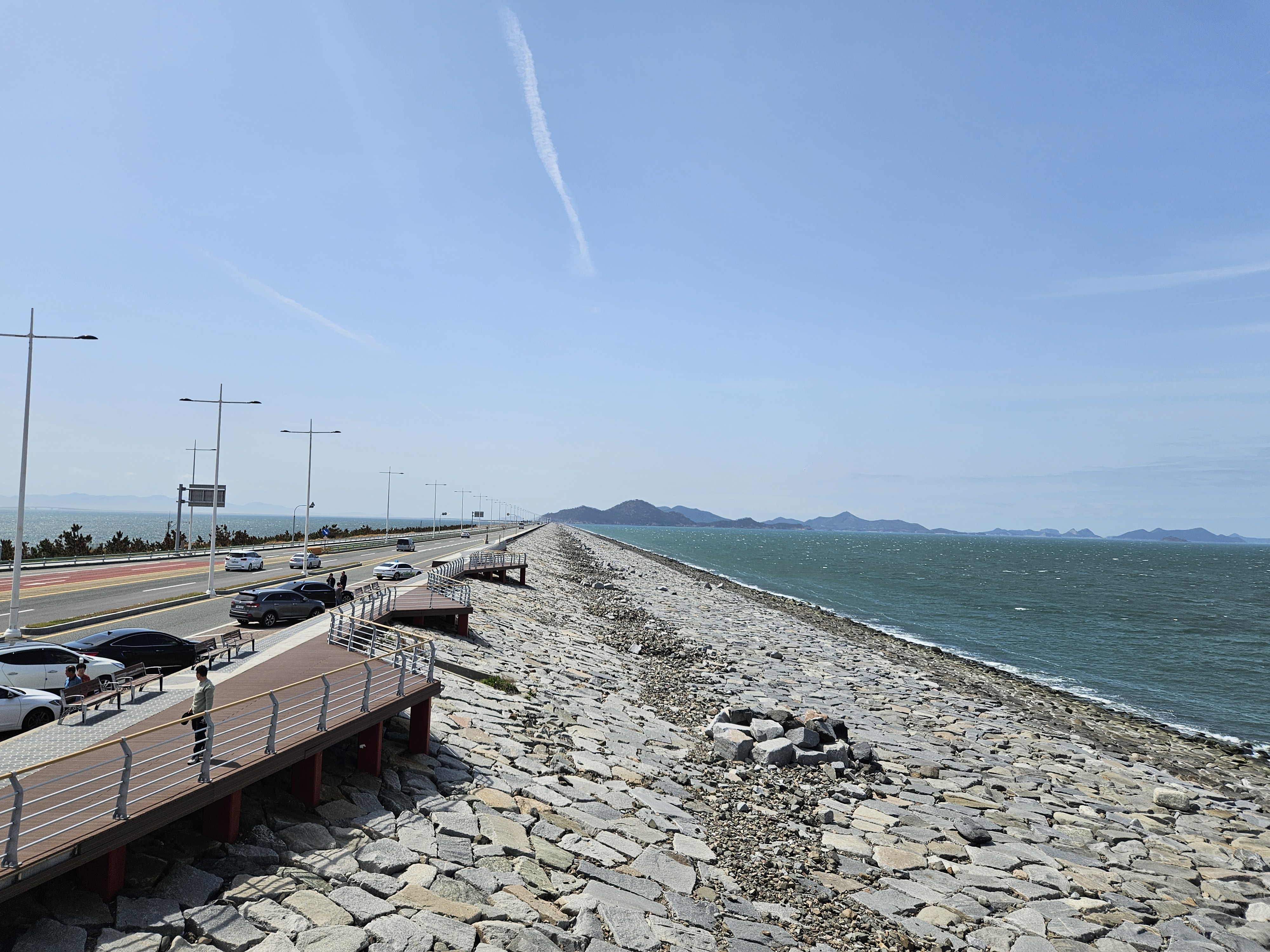 새만금방조제 길이만 33.9km에 이르며, 두 번째에 해당하는 네덜란드 자위더르 방조제의 32.5km보다 1.4km가 더 길다고 합니다.