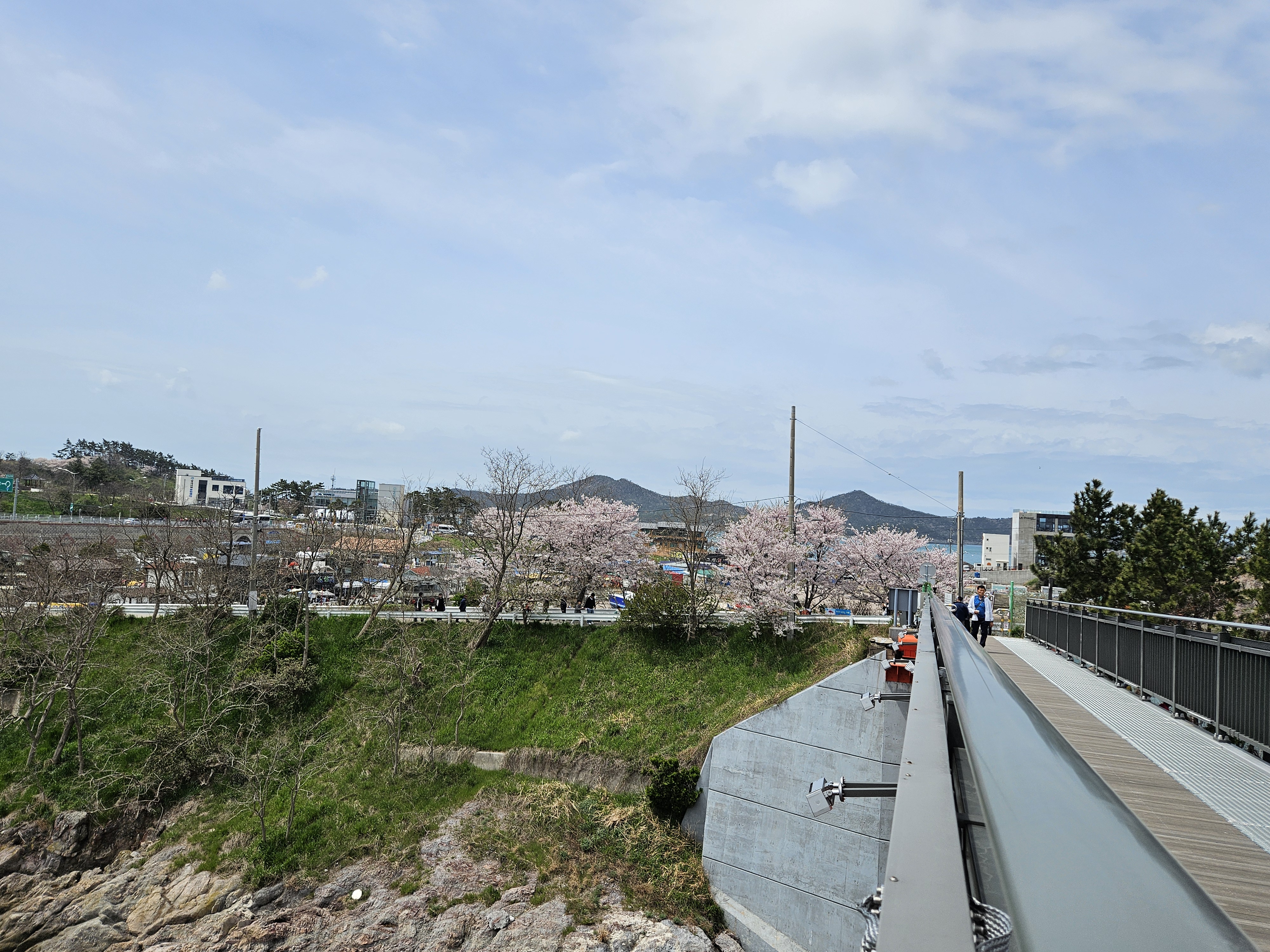 벚꽃 사이로 보이는 장자교 스카이워크(빨간다리)