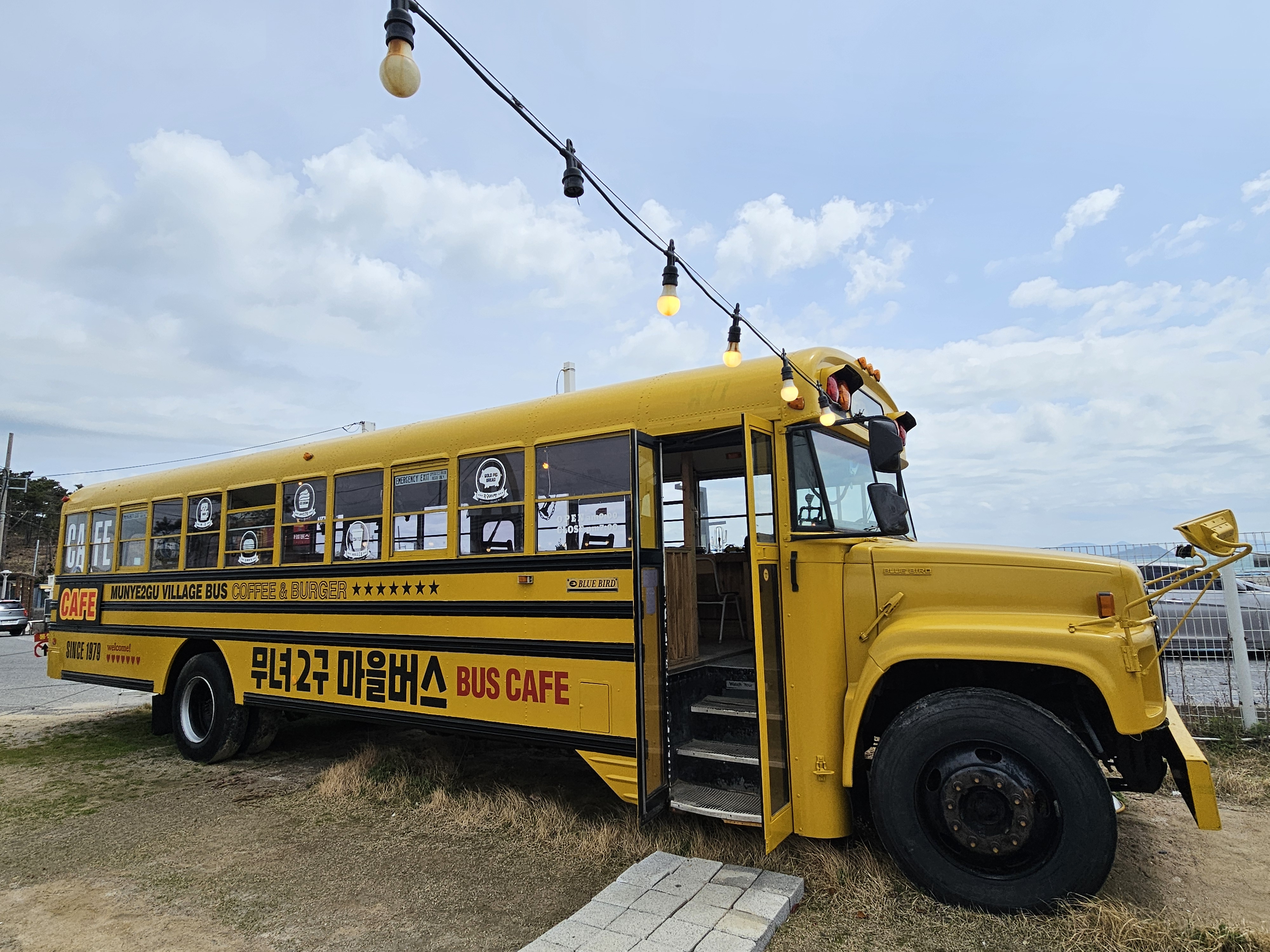 그리고 무녀도 쥐똥섬 입구에는 스쿨버스를 모티브로 하는 이색적인 카페, 무녀2구마을버스가 있습니다.