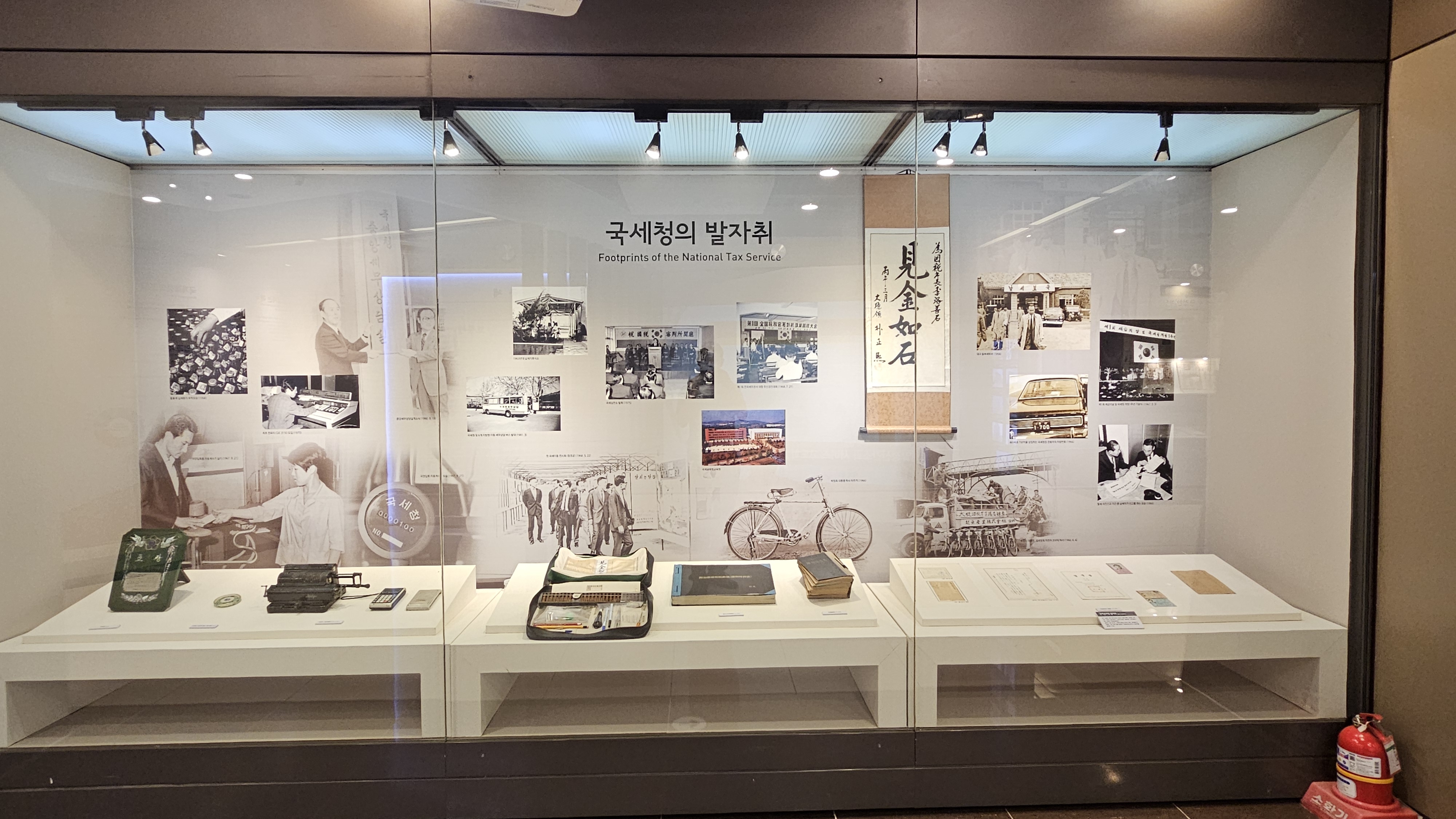 옛날 국세청에서 사용하던 계산기와 세무조사원의 가방에 들어있는 주판과 필기도구들, 국세공무원 임명장 등이 전시되어 있네요.