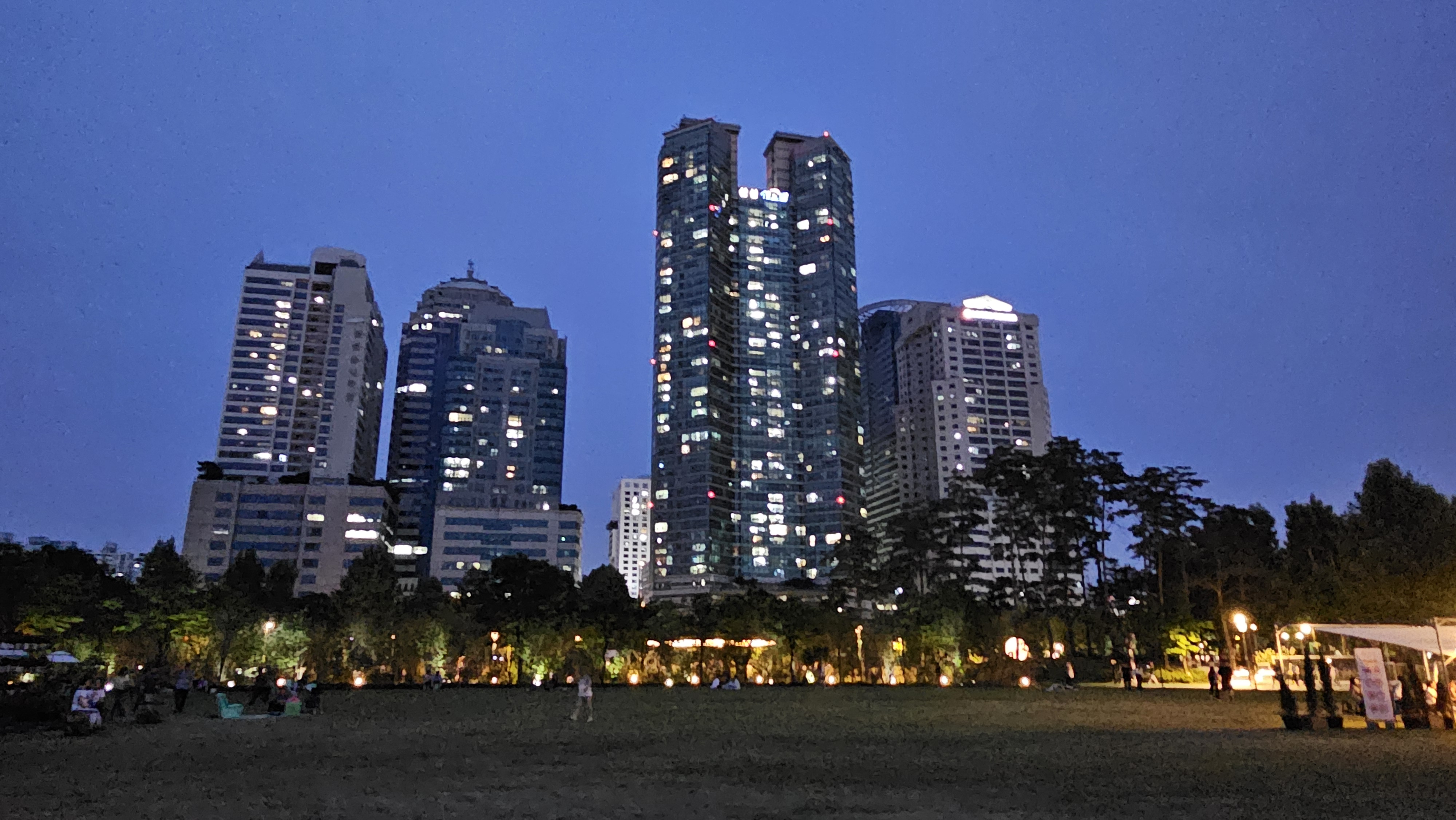 보라매공원 동쪽에 있는 주상복합 빌딩 야경