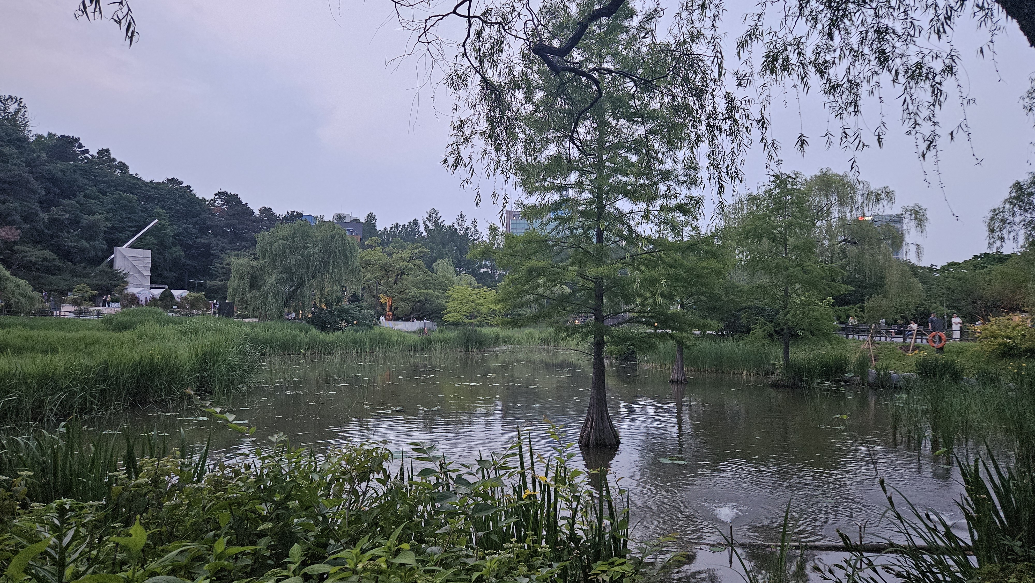 보라매공원 연못이 있는 음악분수 주변과 놀이터, 동쪽에 주로 정원들이 조성되어 있습니다.