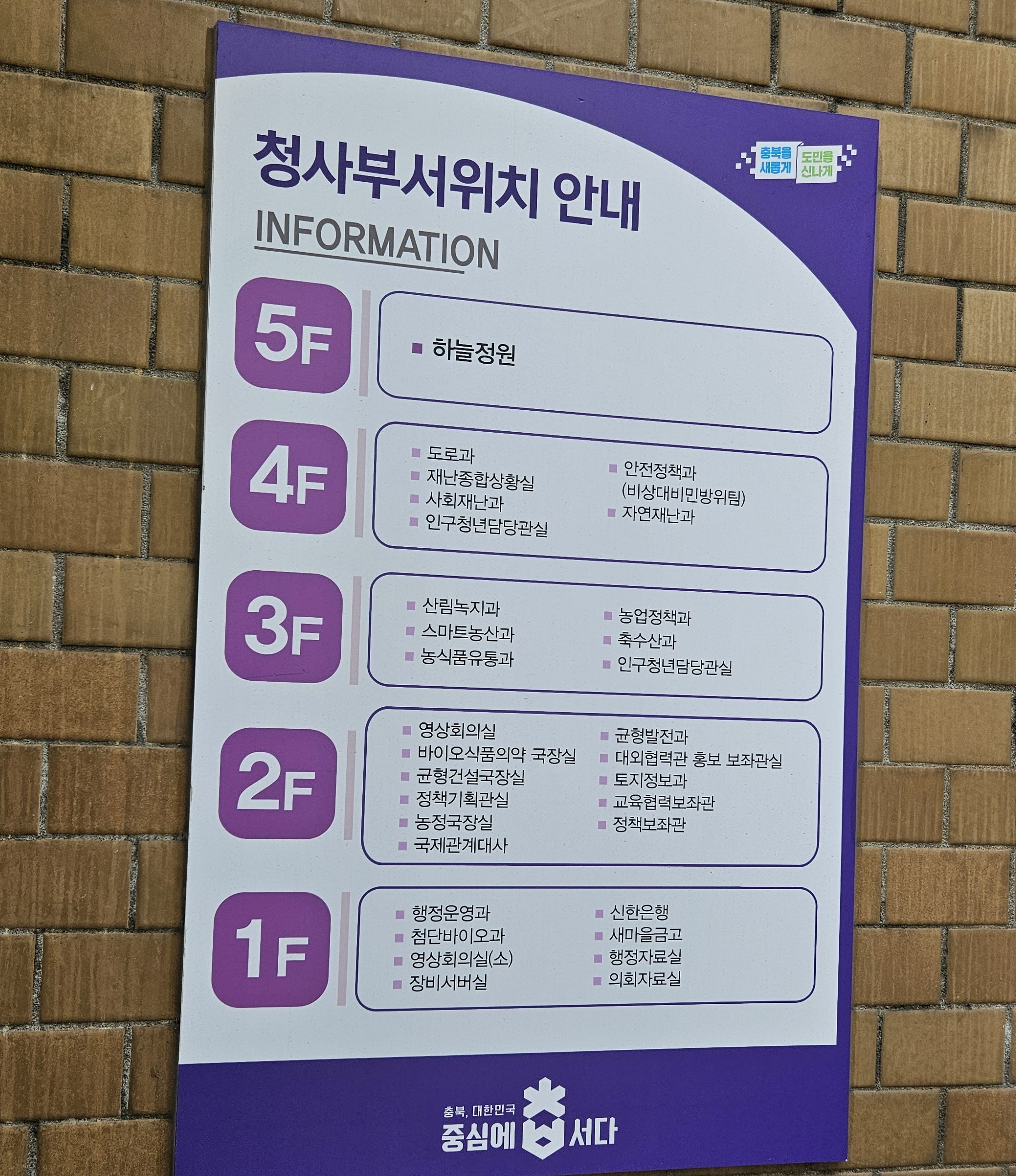 충북도청 하늘정원은 본관을 지나 동관 건물로 이동하면 됩니다.
