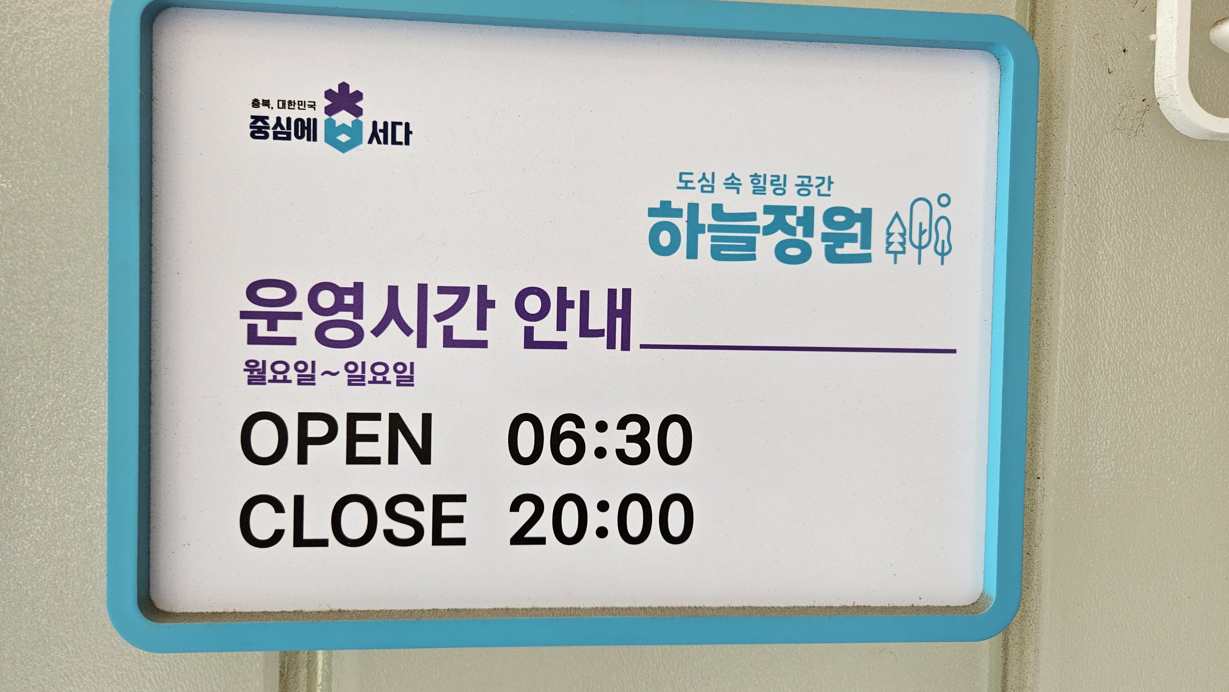 하늘정원은 휴무일 없이, 매일 06:30~20:00까지 운영됩니다.