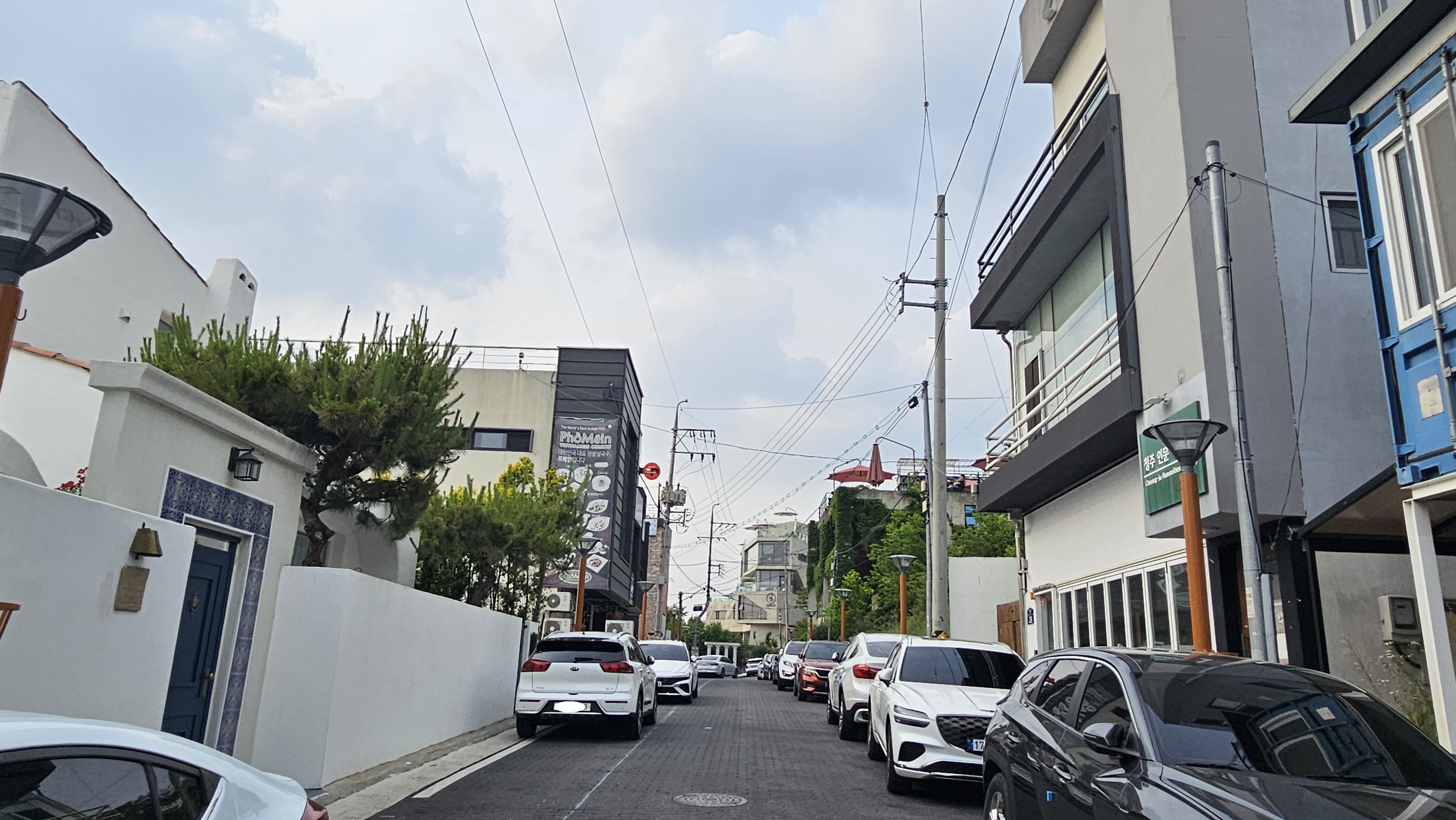 다소 더운 날씨라 거리엔 사람들이 거의 보이지 않고 주차된 차량들만 보이네요.