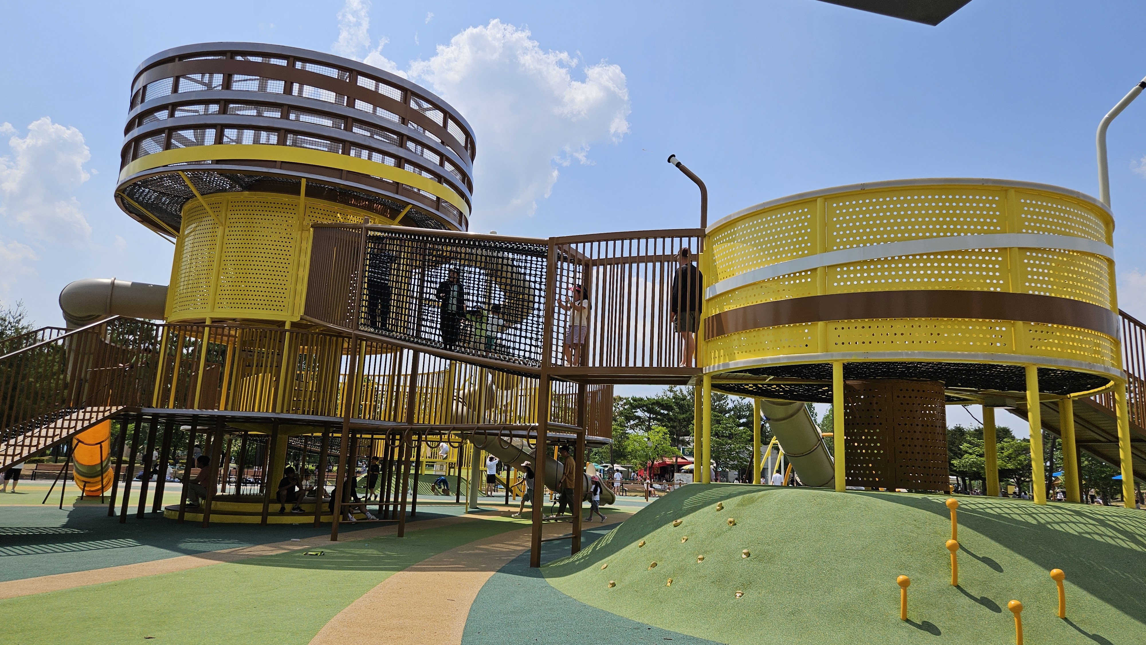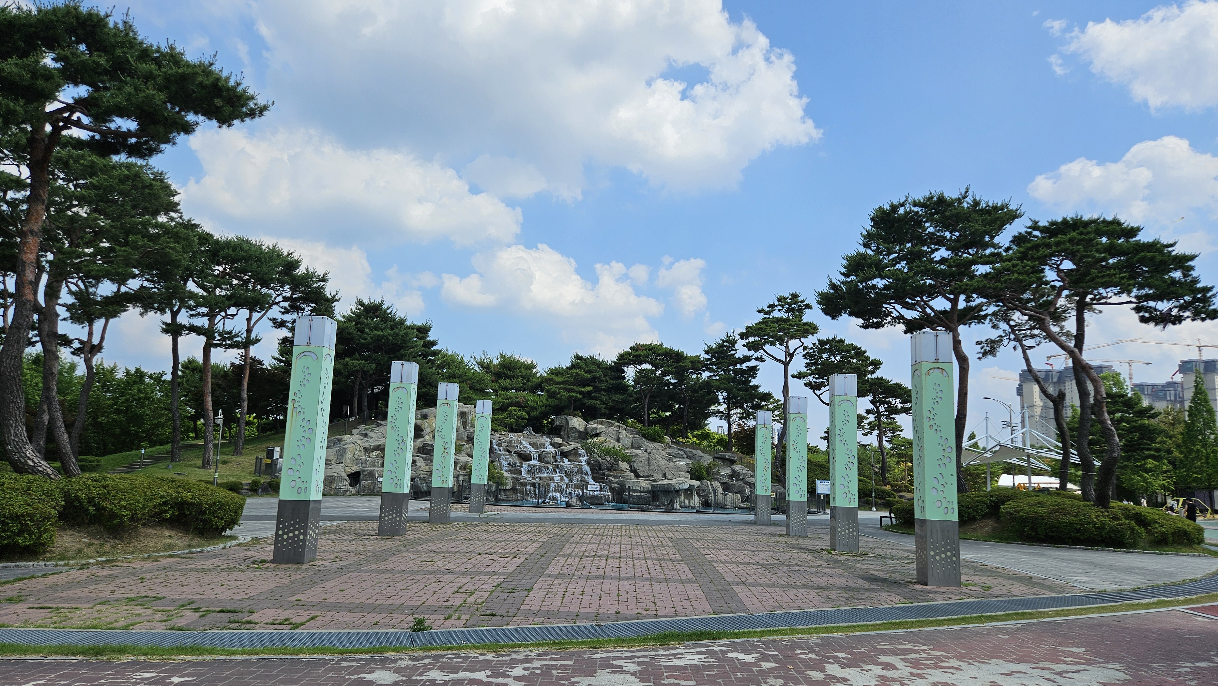 주차장을 기점으로 인공폭포와 어린이 놀이터, 바닥분수 AR동물원 포토존, 잔디광장과 야외공연장 등이 있고,