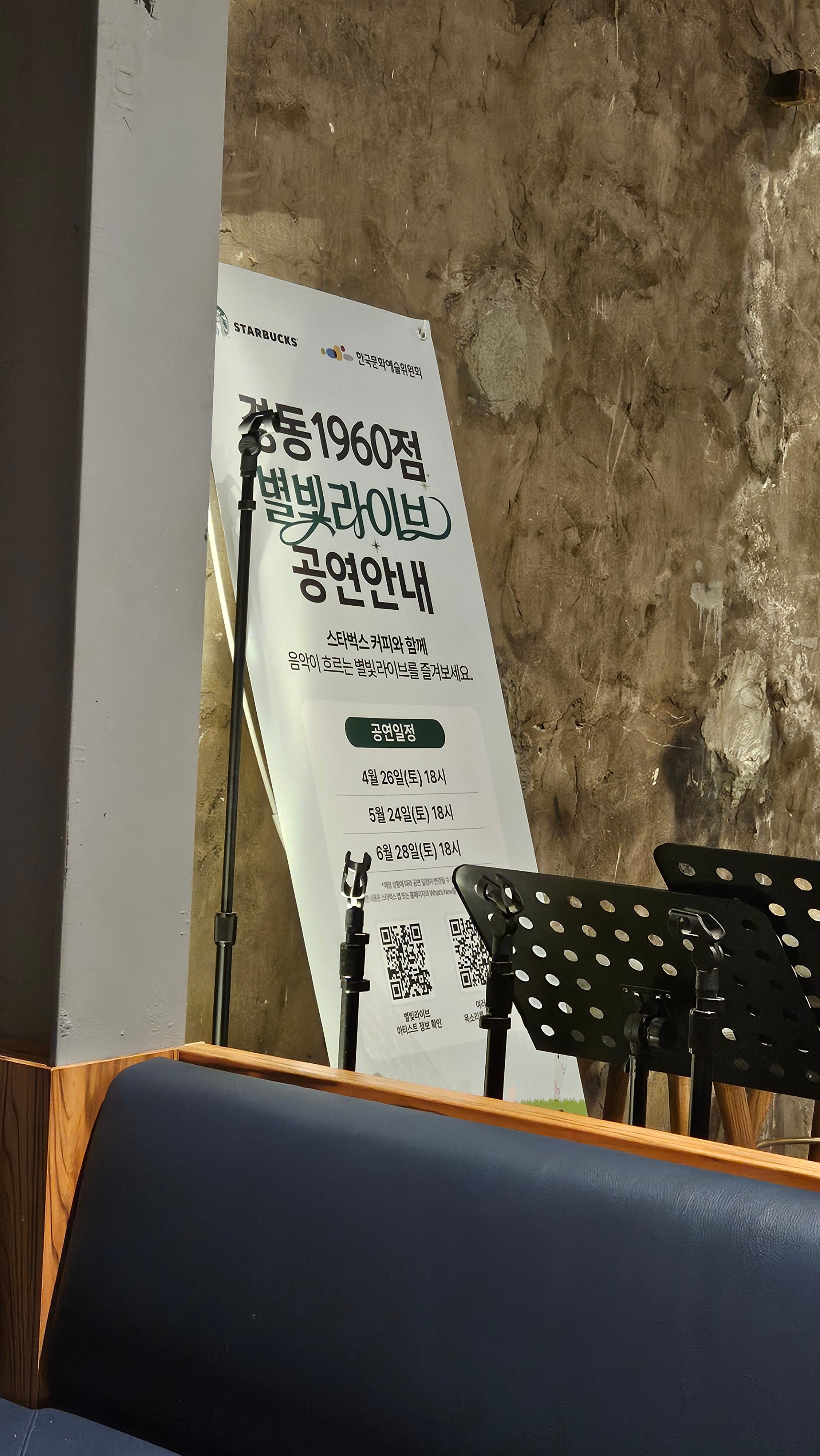특별한 스타벅스 매장이라 매월 한 번씩 별빛 라이브 공연도 진행되나 봅니다.