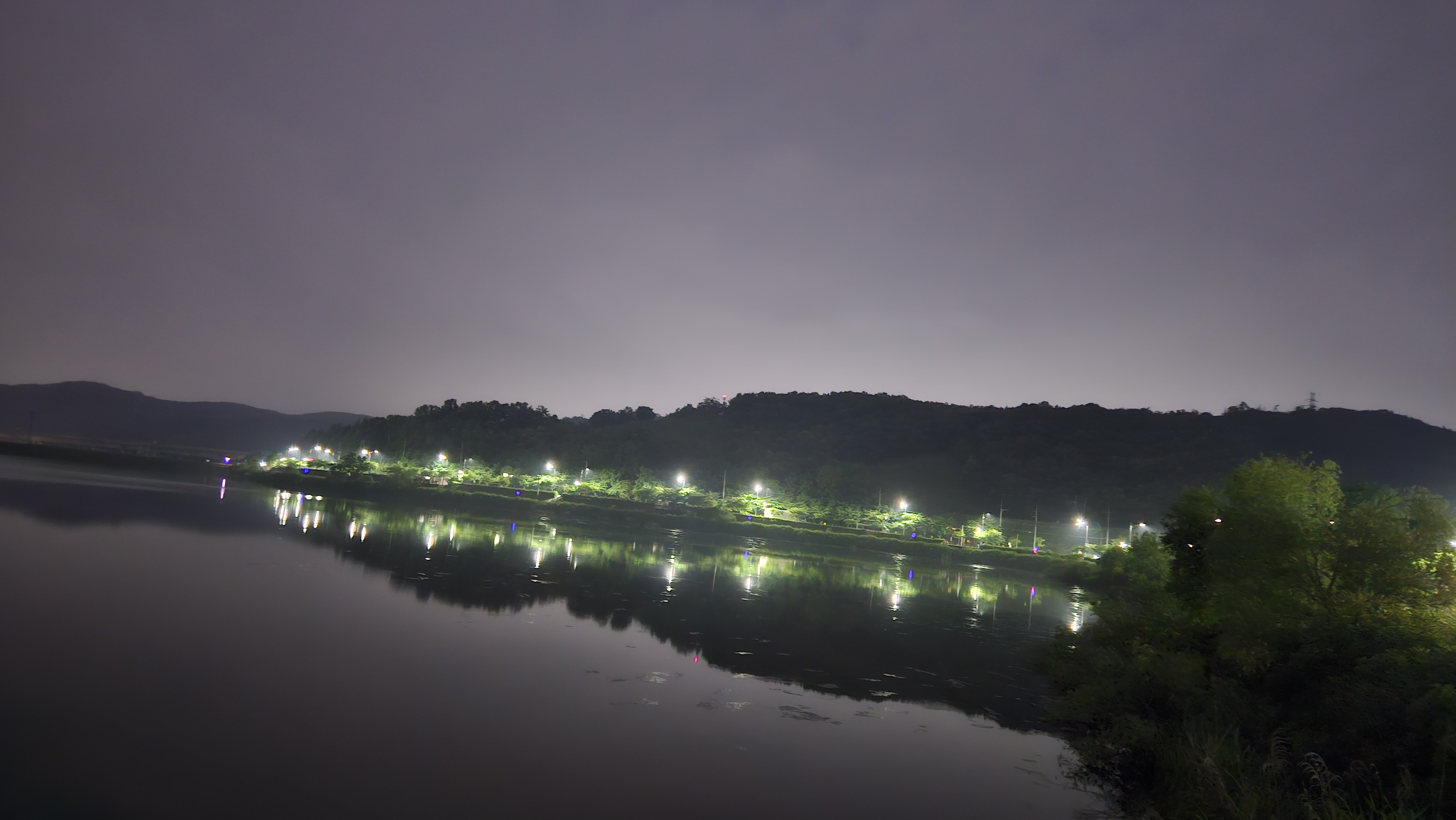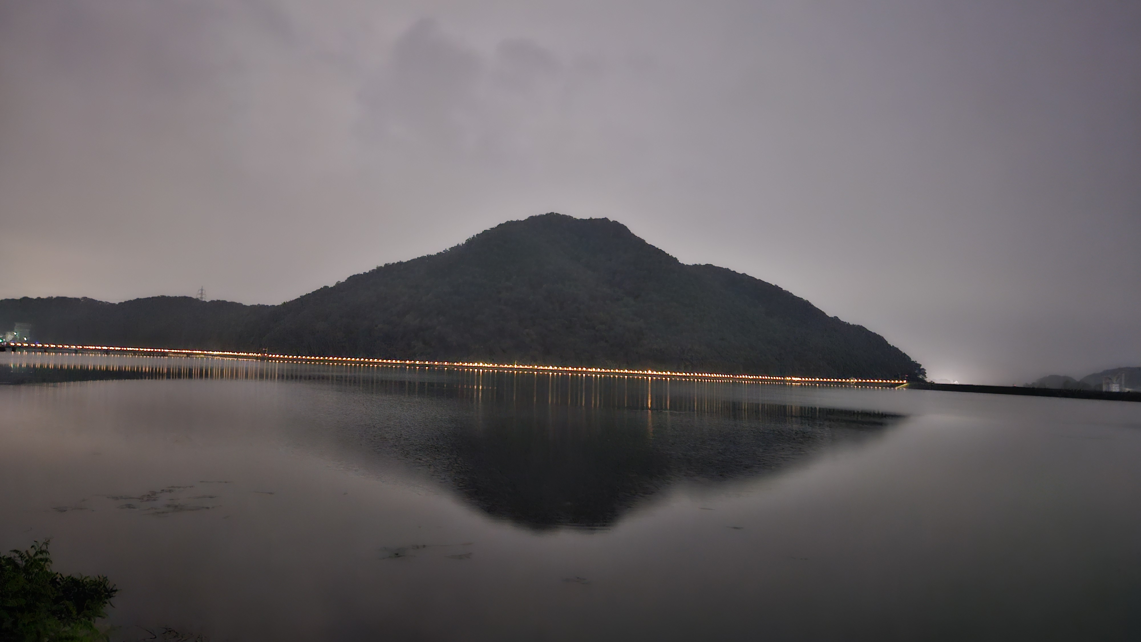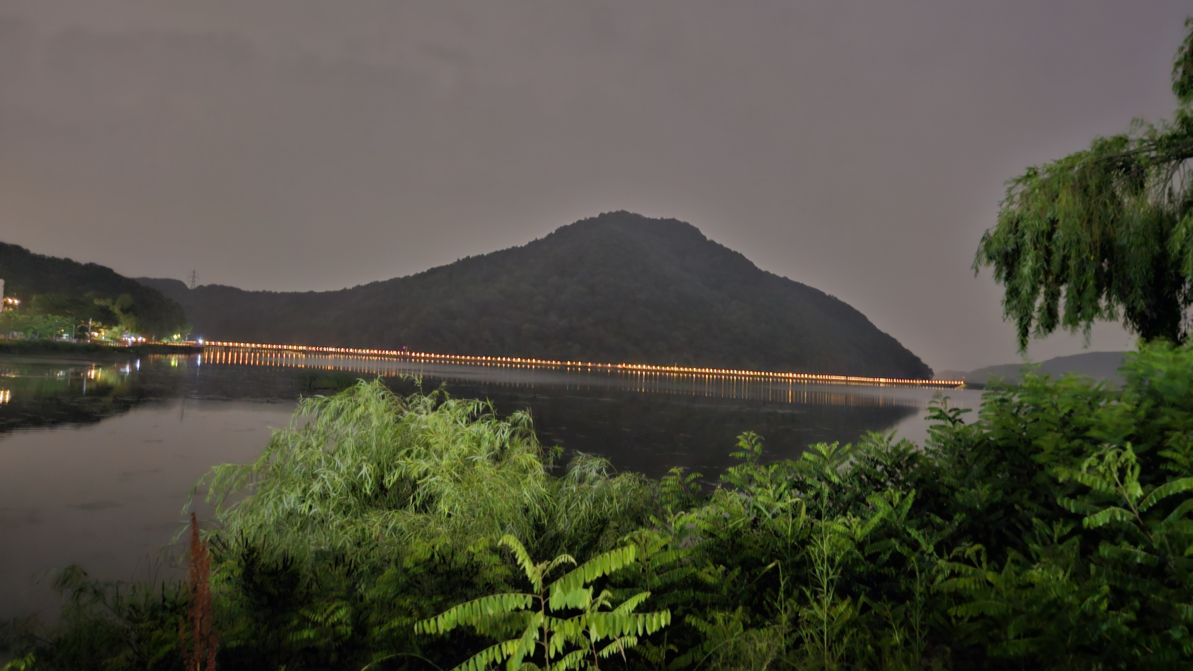 반월호수 남쪽에 있는 퇴미산과 호수 위로 설치된 둘레길 조명