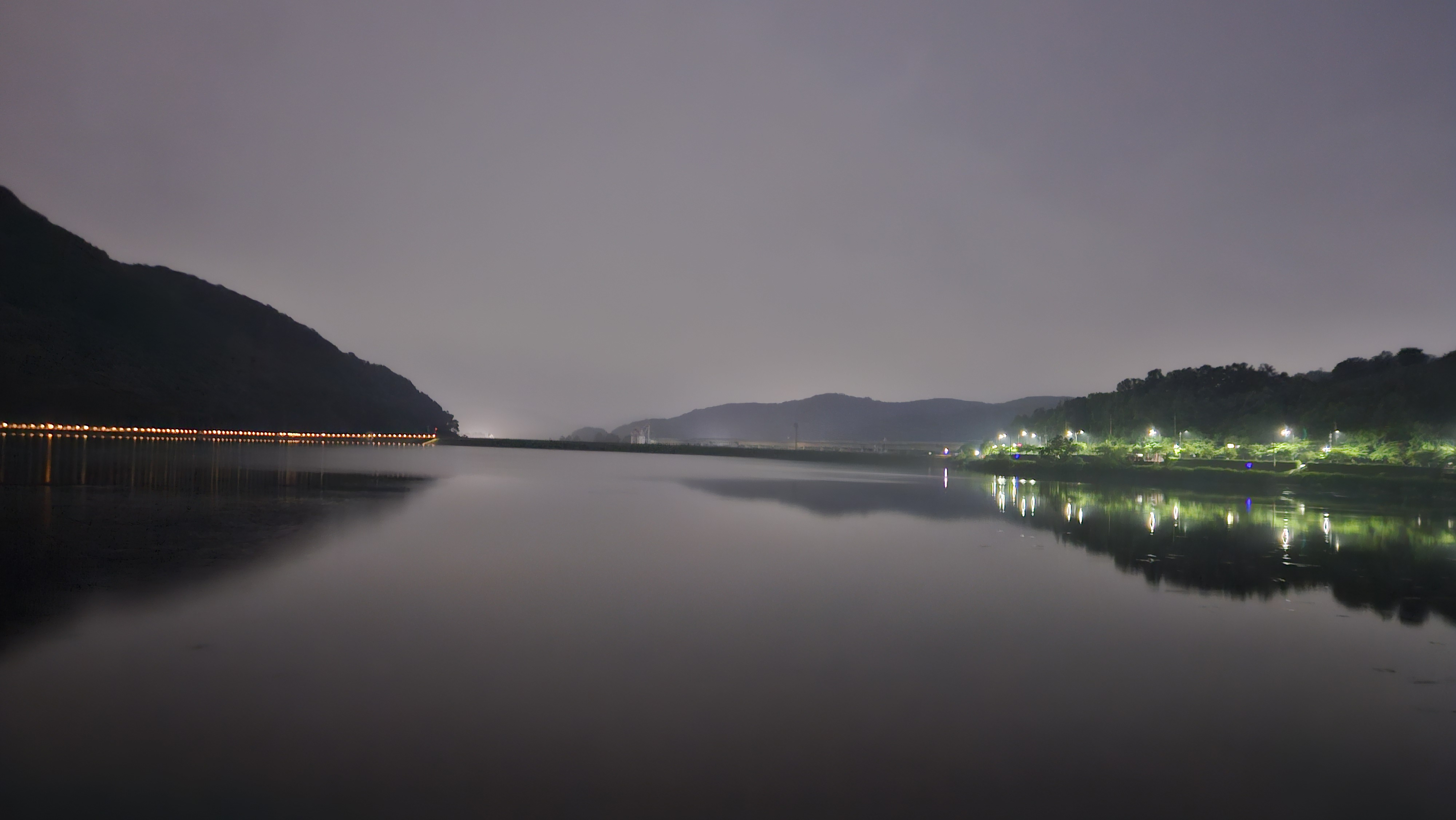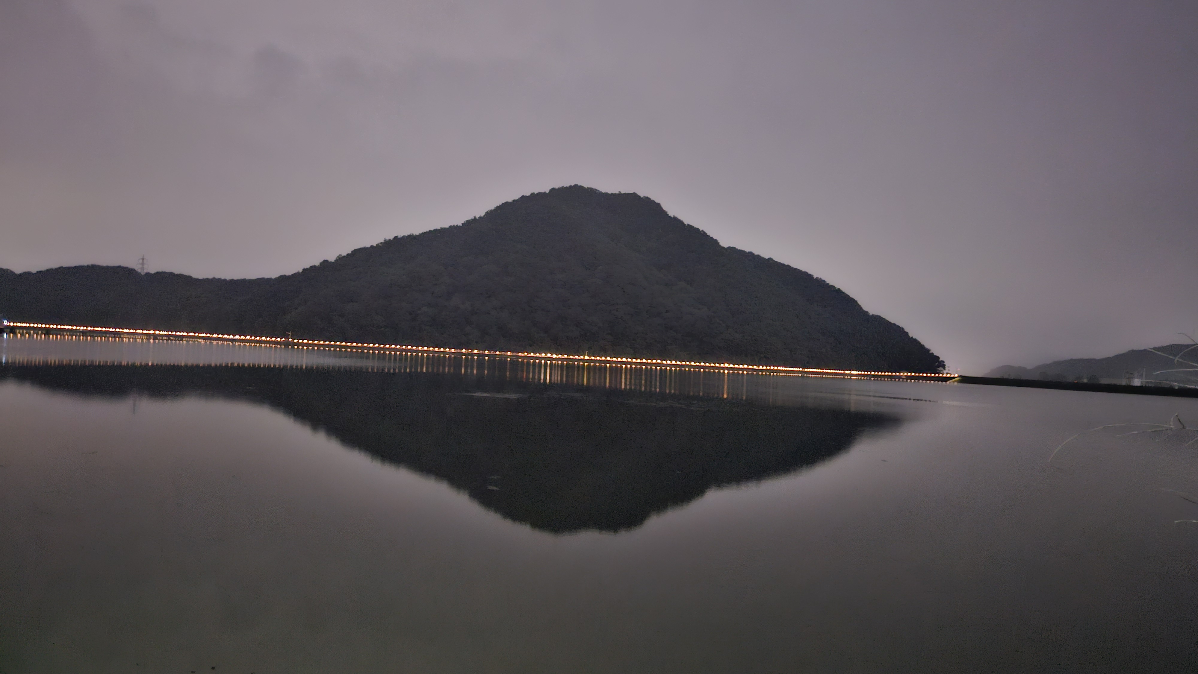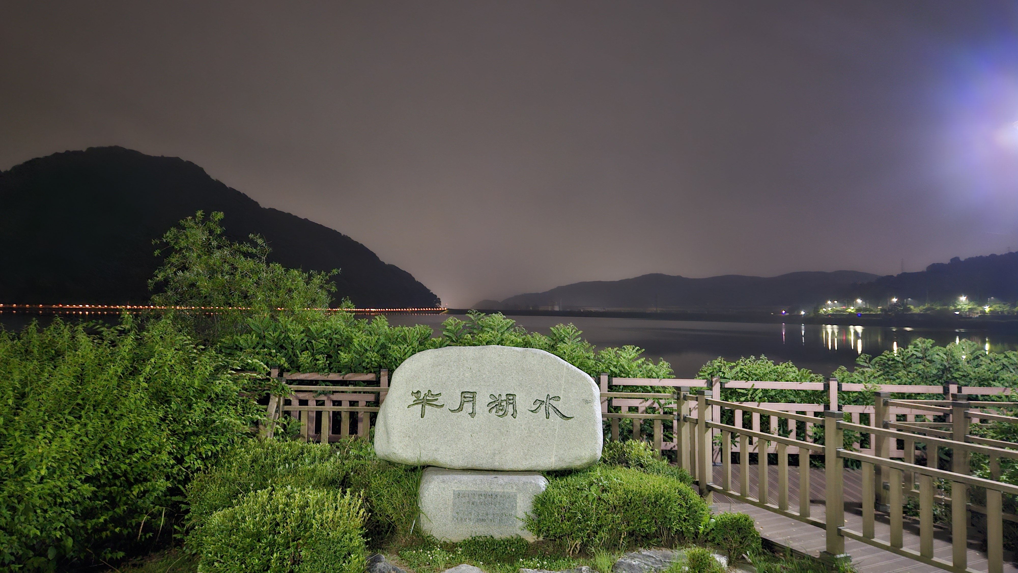반월호수 남쪽에 있는 퇴미산과 호수 위로 설치된 둘레길 조명