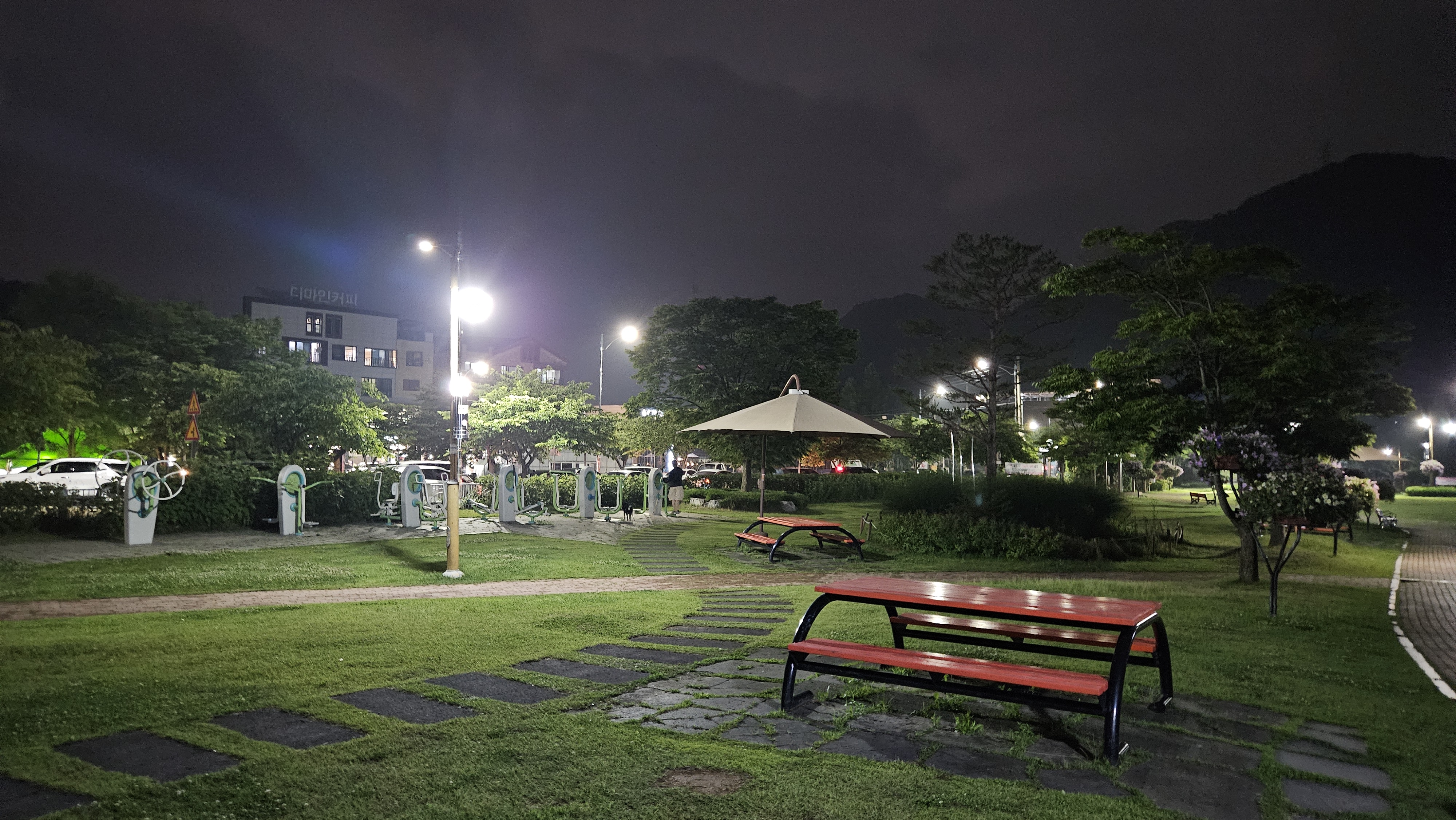 오랜만에 유니스의 정원을 구경하고, 1km 남짓 떨어져 있는 반월호수공원을 찾아 저녁을 먹고 야경을 구경했습니다.