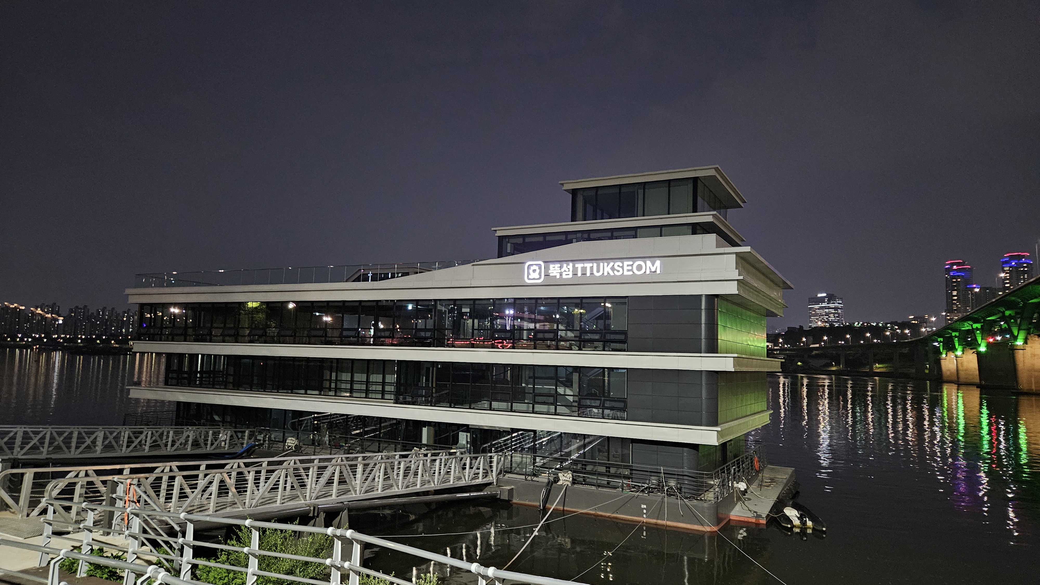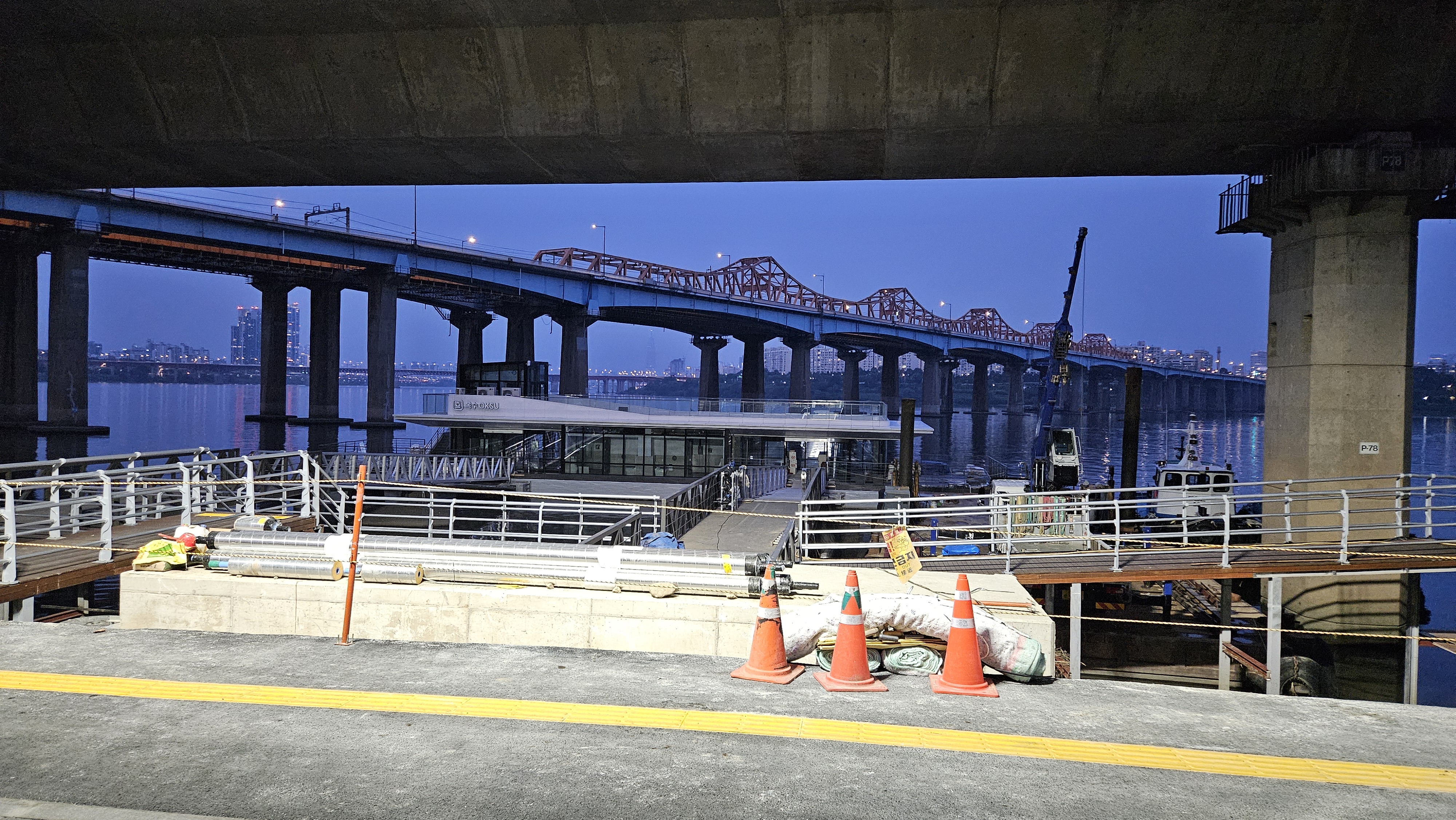 똑섬선착장은 공사를 마무리한 상태로 아직 운행 전이라 불만 꺼져 있고, 옥수선착장은 거의 마무리되었지만 아직 정리가 덜 된 상태입니다.