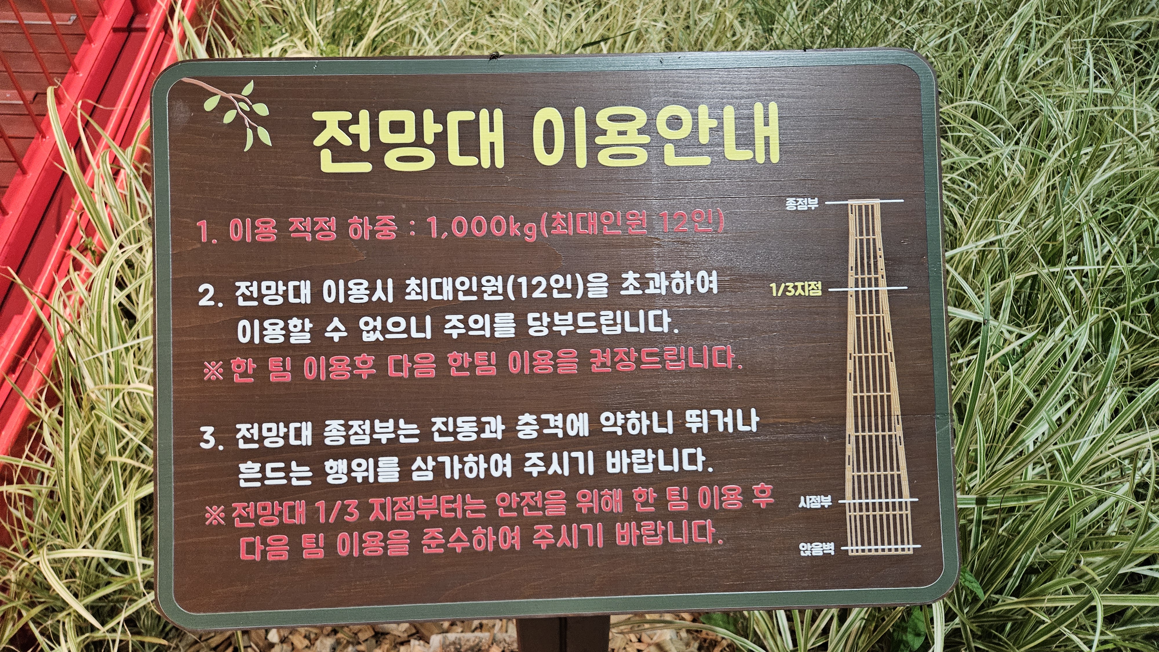 전망대는 시작지점에만 지탱할 수 있는 힘이 있기 때문에 전망대 끝에 오르면 제법 하중을 많이 받을 것 같습니다.