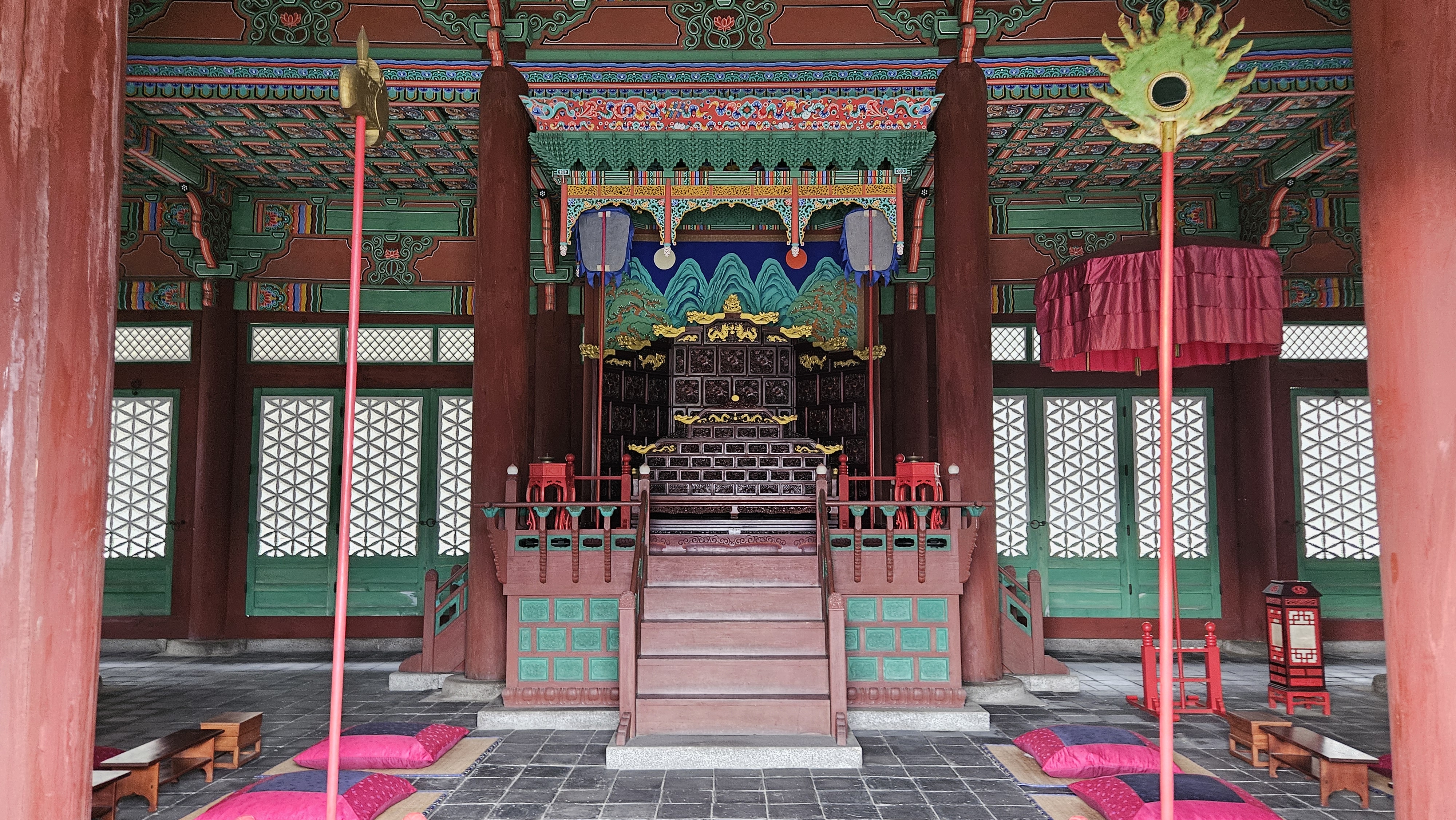 숭정전 내부 모습은 조선 5대 궁궐의 정전과 동일하게 어좌 뒤에 일월오봉도가 놓여 있습니다.