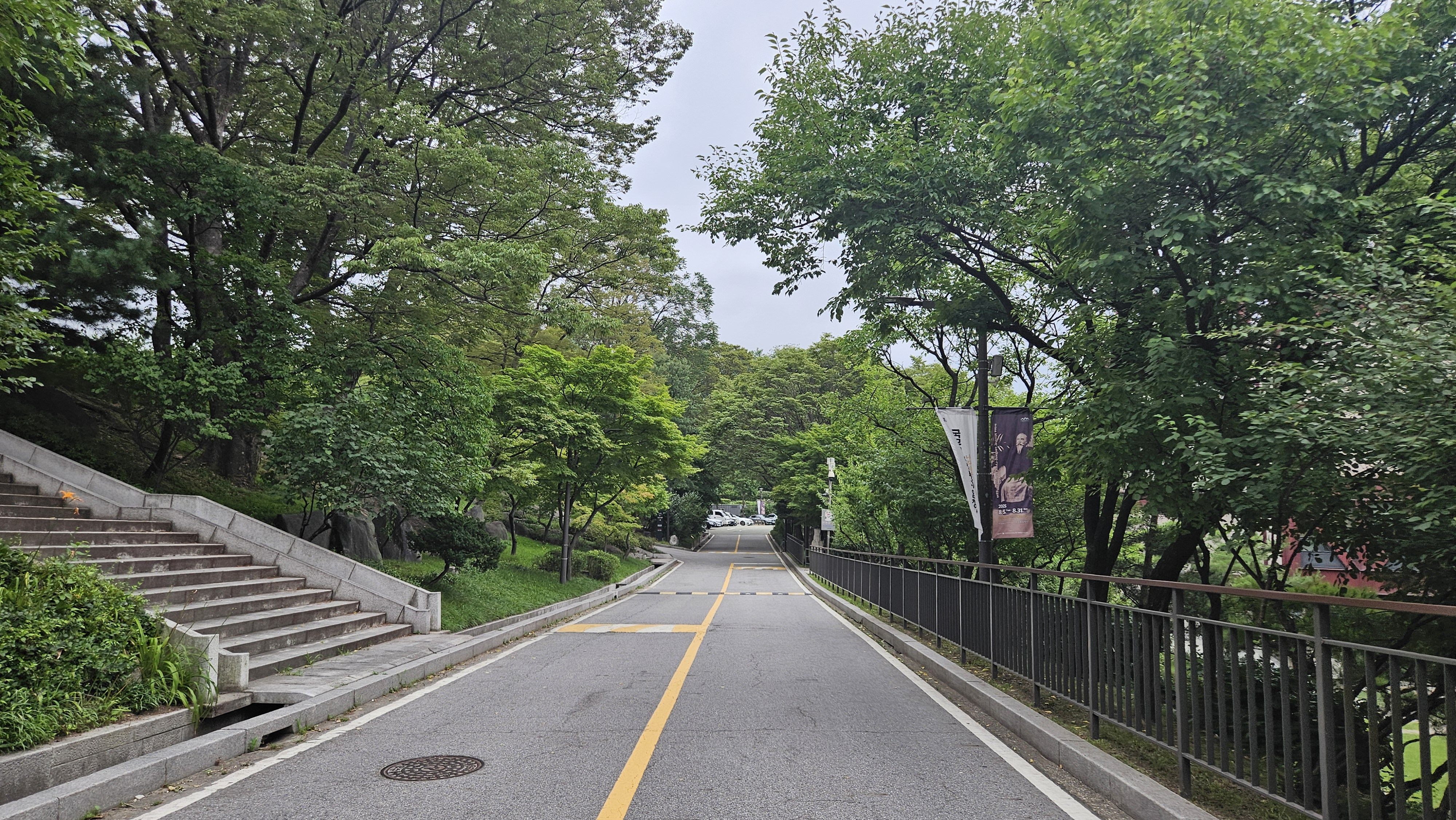 경희궁 주차장과 주차장 진입로 모습