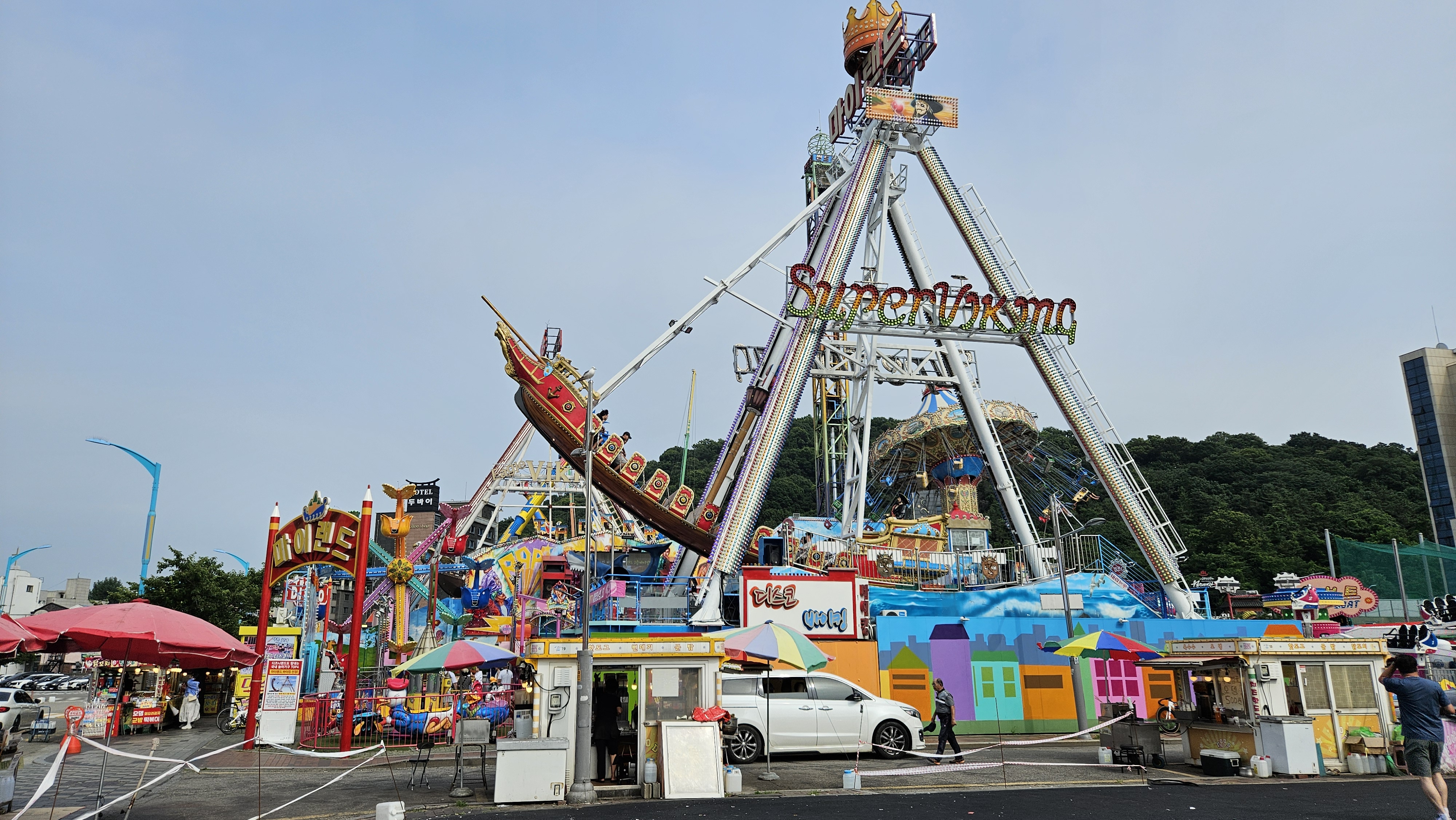 입구에 있는 좁은 공간의 놀이공원에는 마이랜드, 비취랜드, 월미랜드 등 3개의 놀이공원이 이웃해 있는데 자세히 보지 않으면 하나의 놀이공원으로 보입니다.