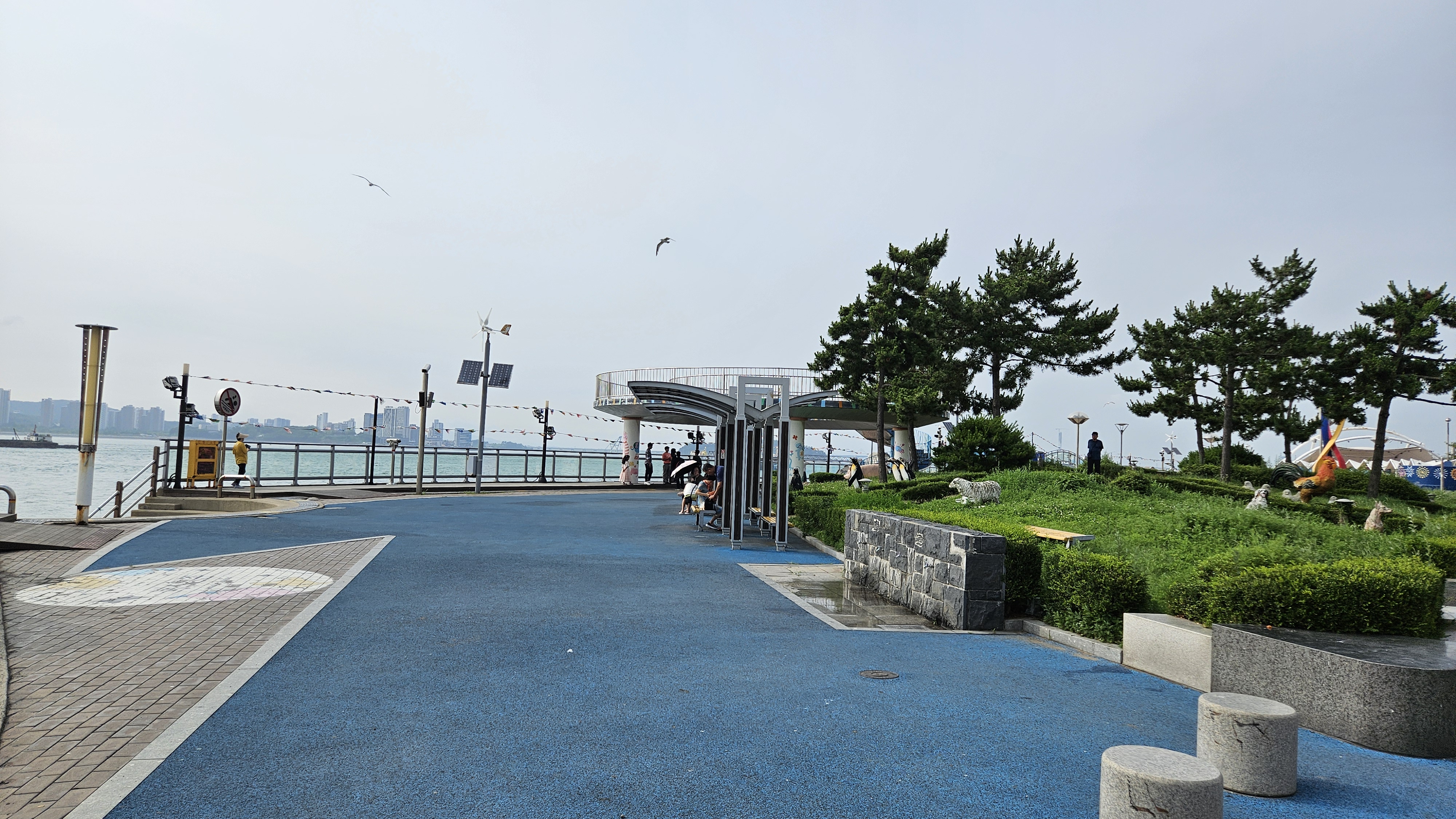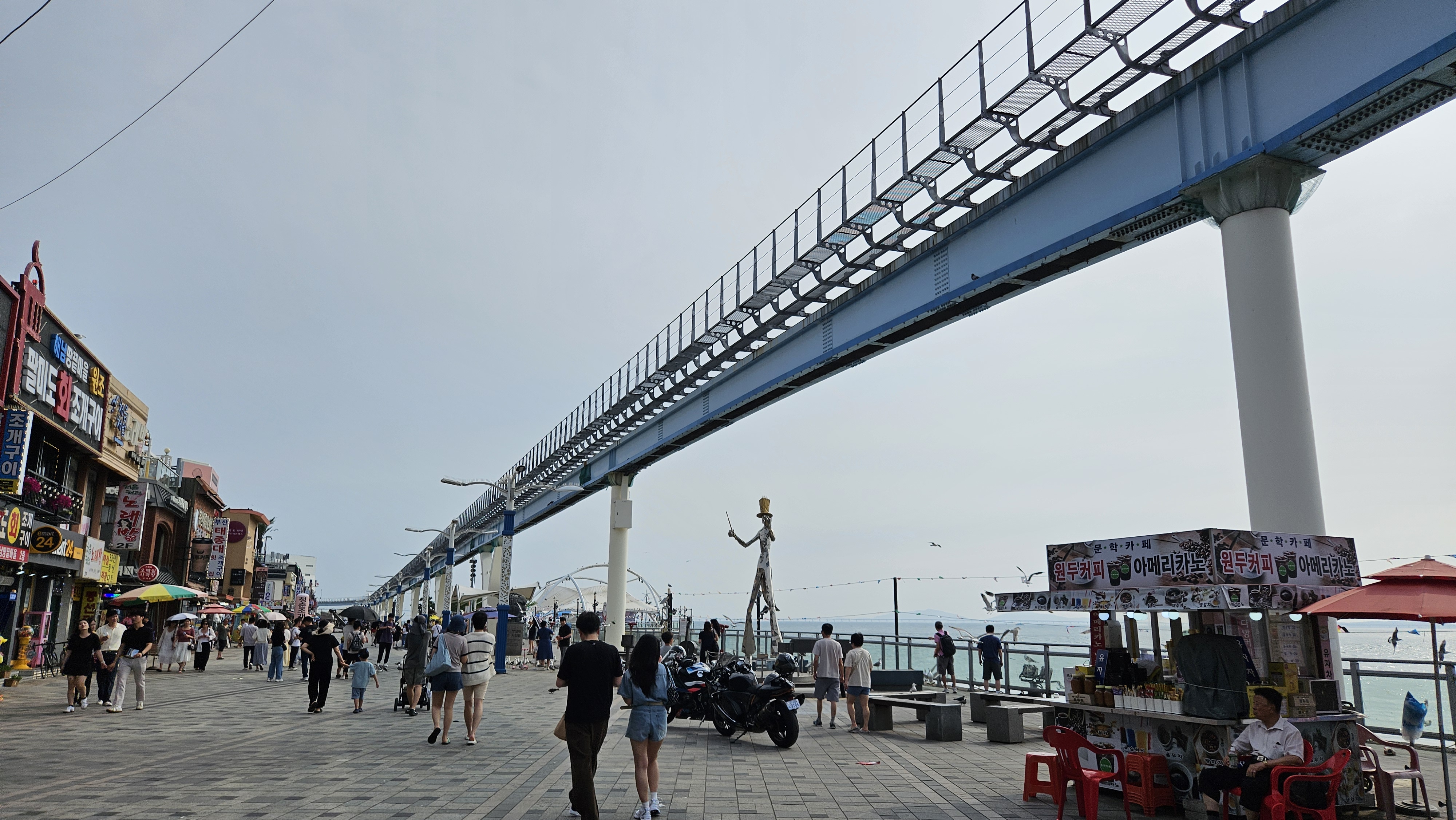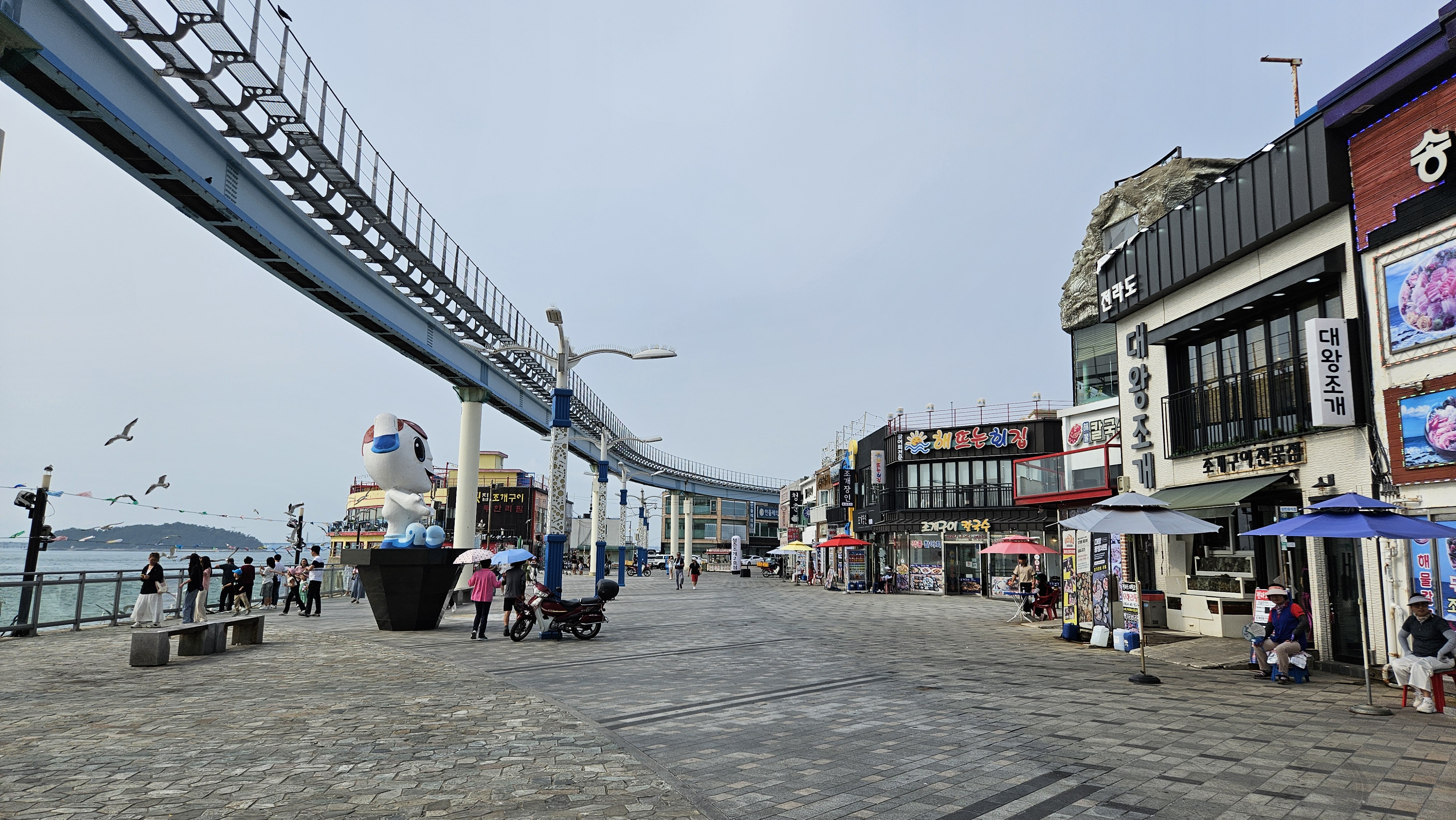 드러머 조형물 앞에는 갈매기들로 가득하네요.