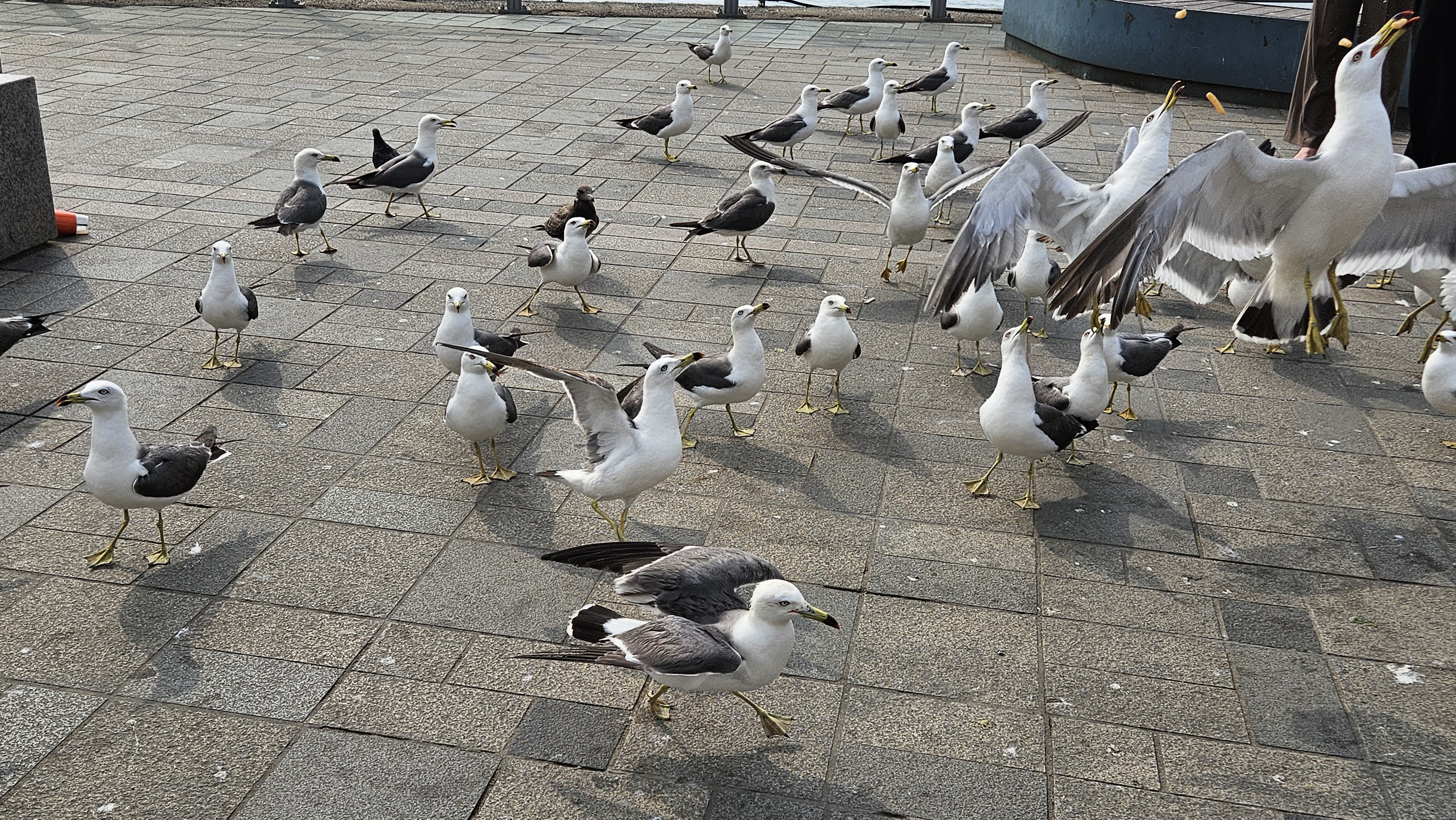 새우강을 주는 사람들이 있어 몰려들고 있습니다.