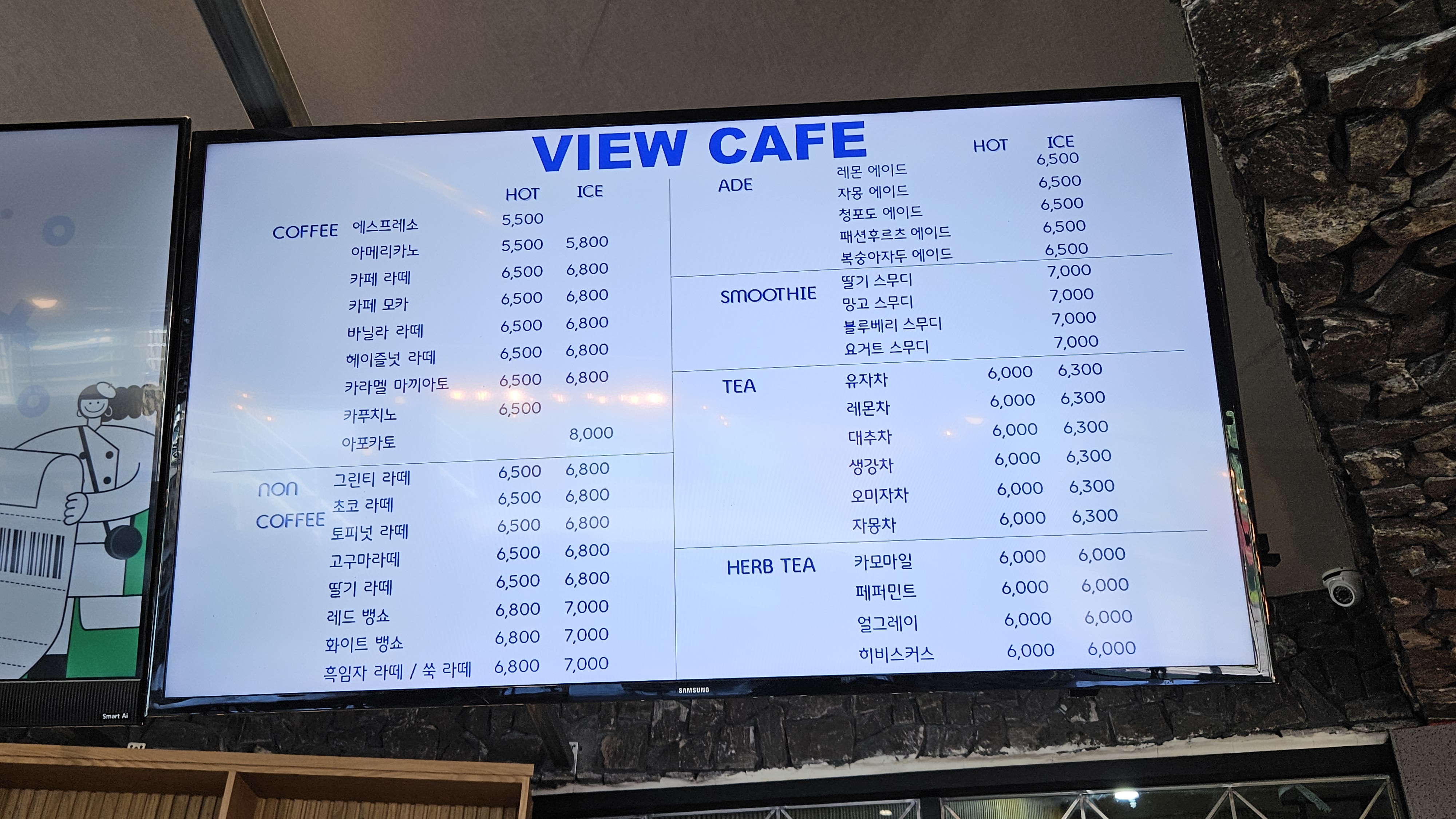 그 외 에이드와 스무디, 차 종류들이 있습니다.