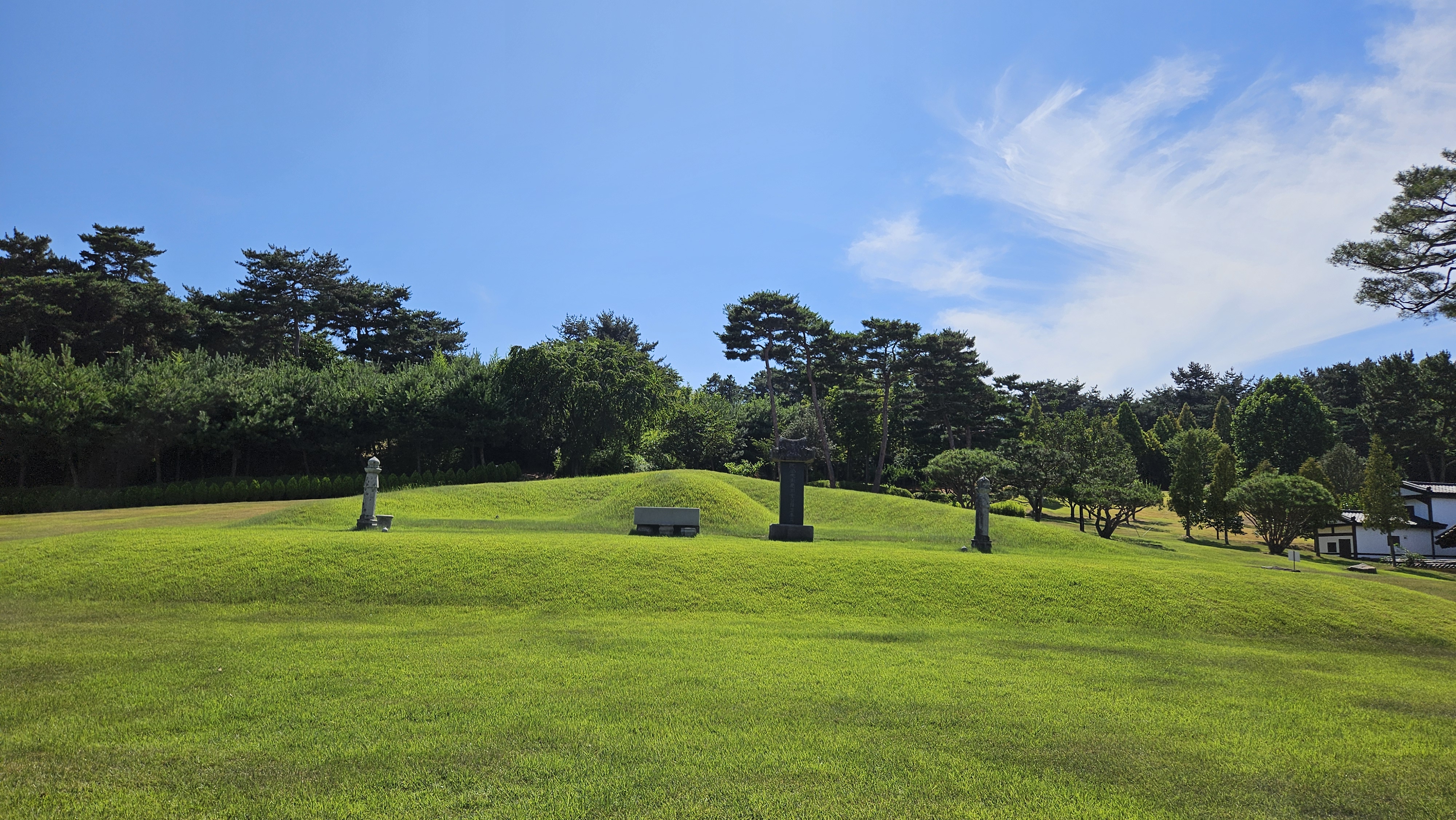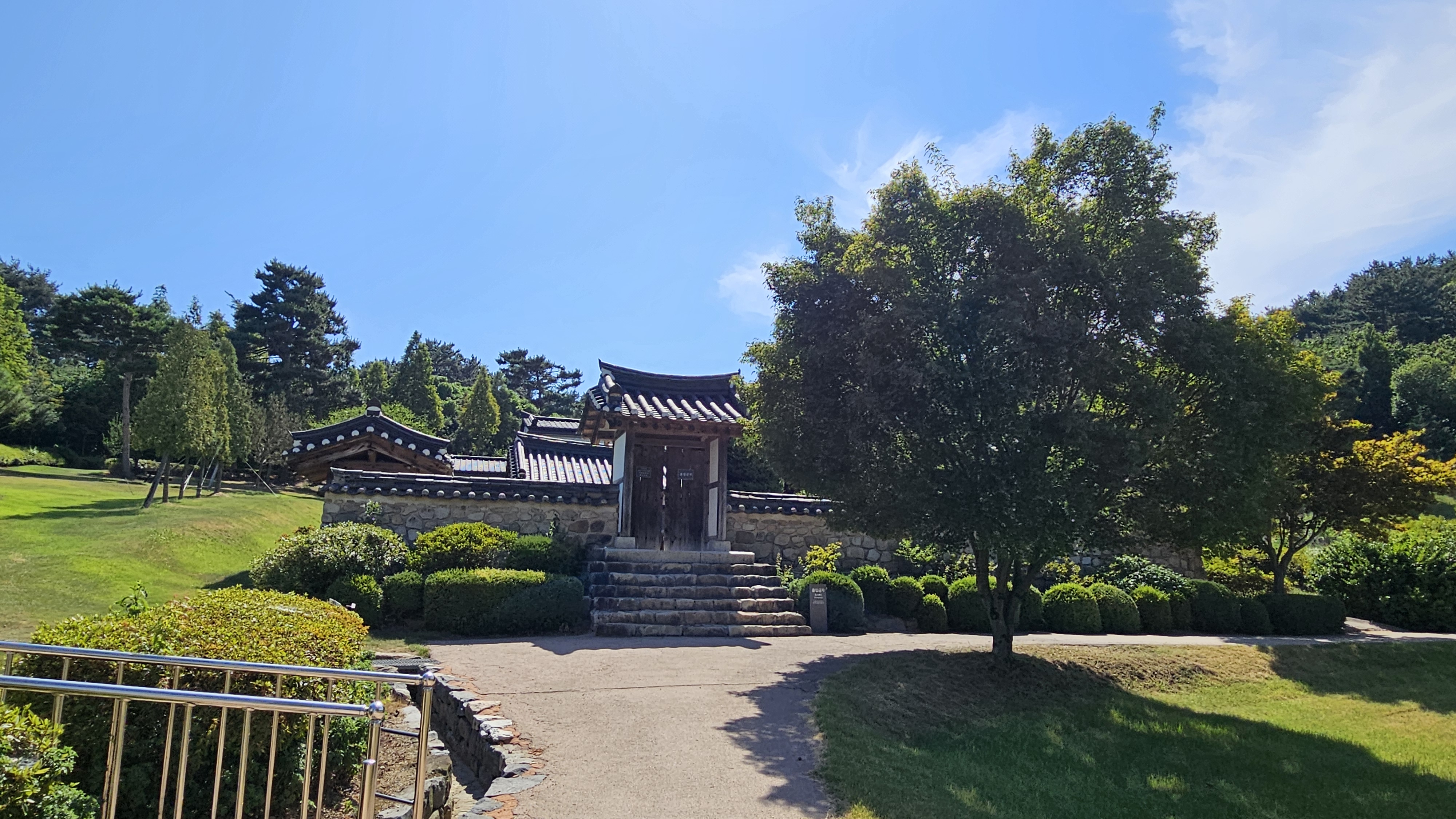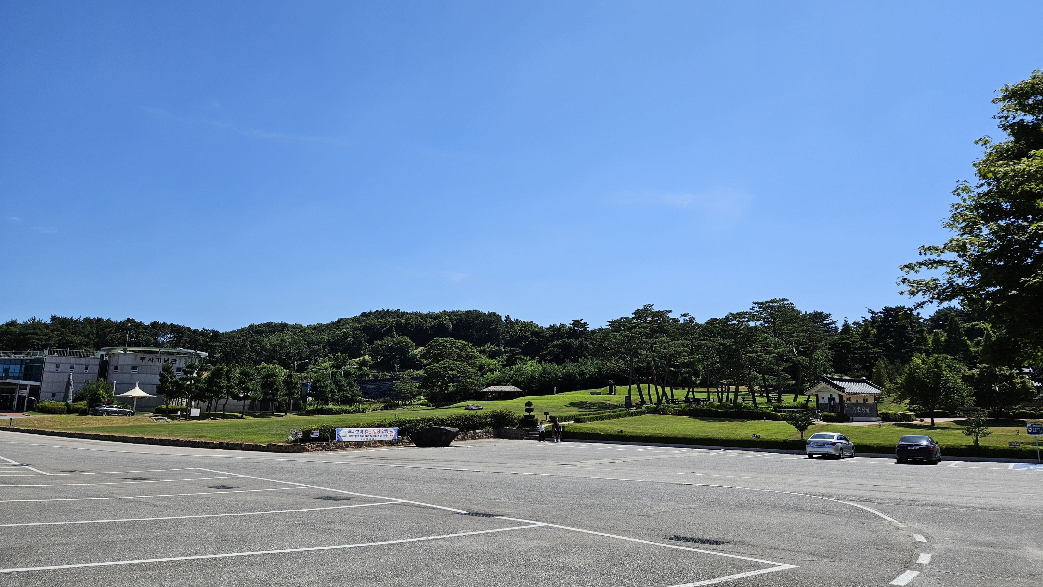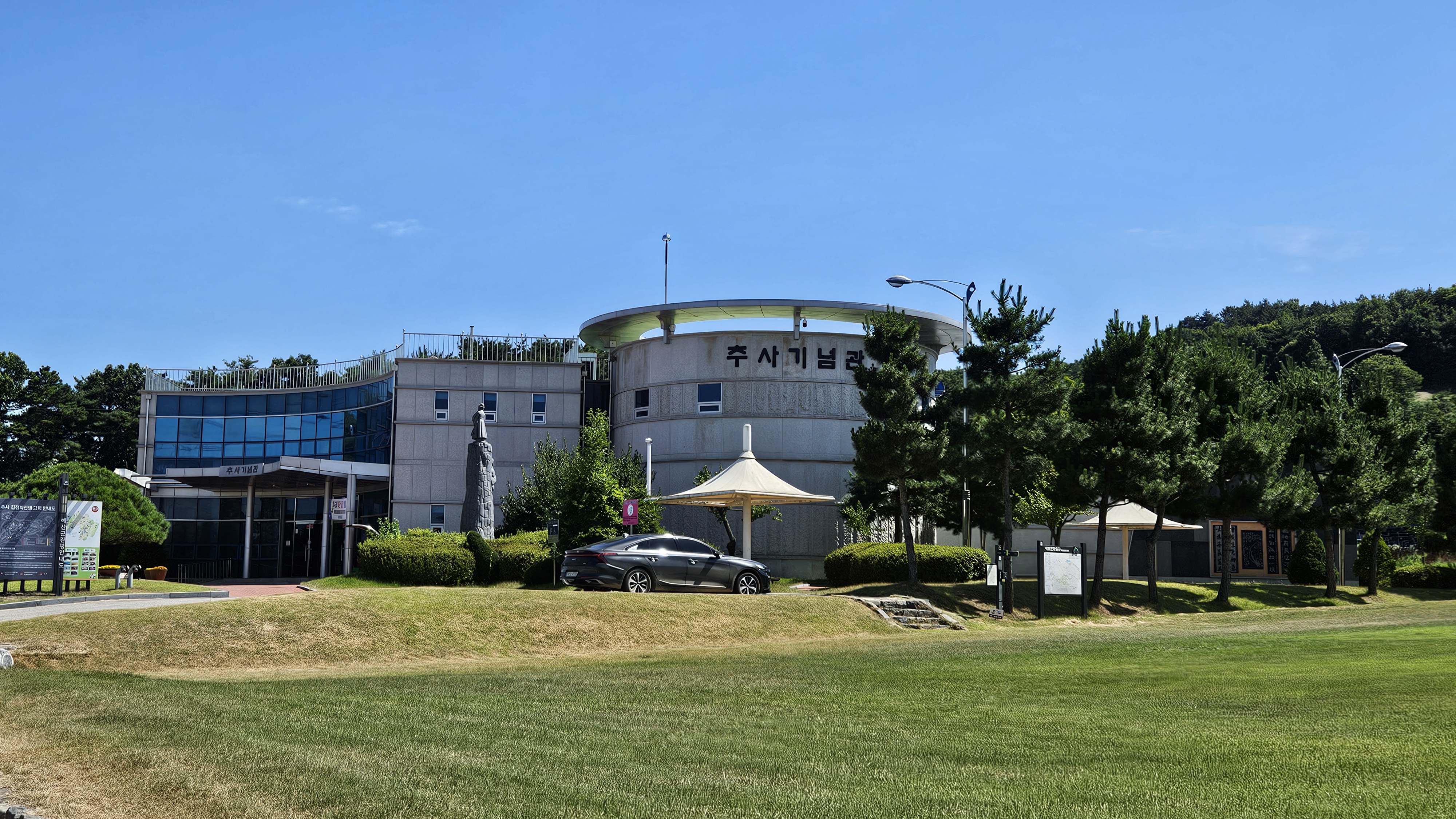 좌측에 추사기념관이 있고, 중앙 푸른 잔디밭은 추사 김정희 묘가 있습니다.