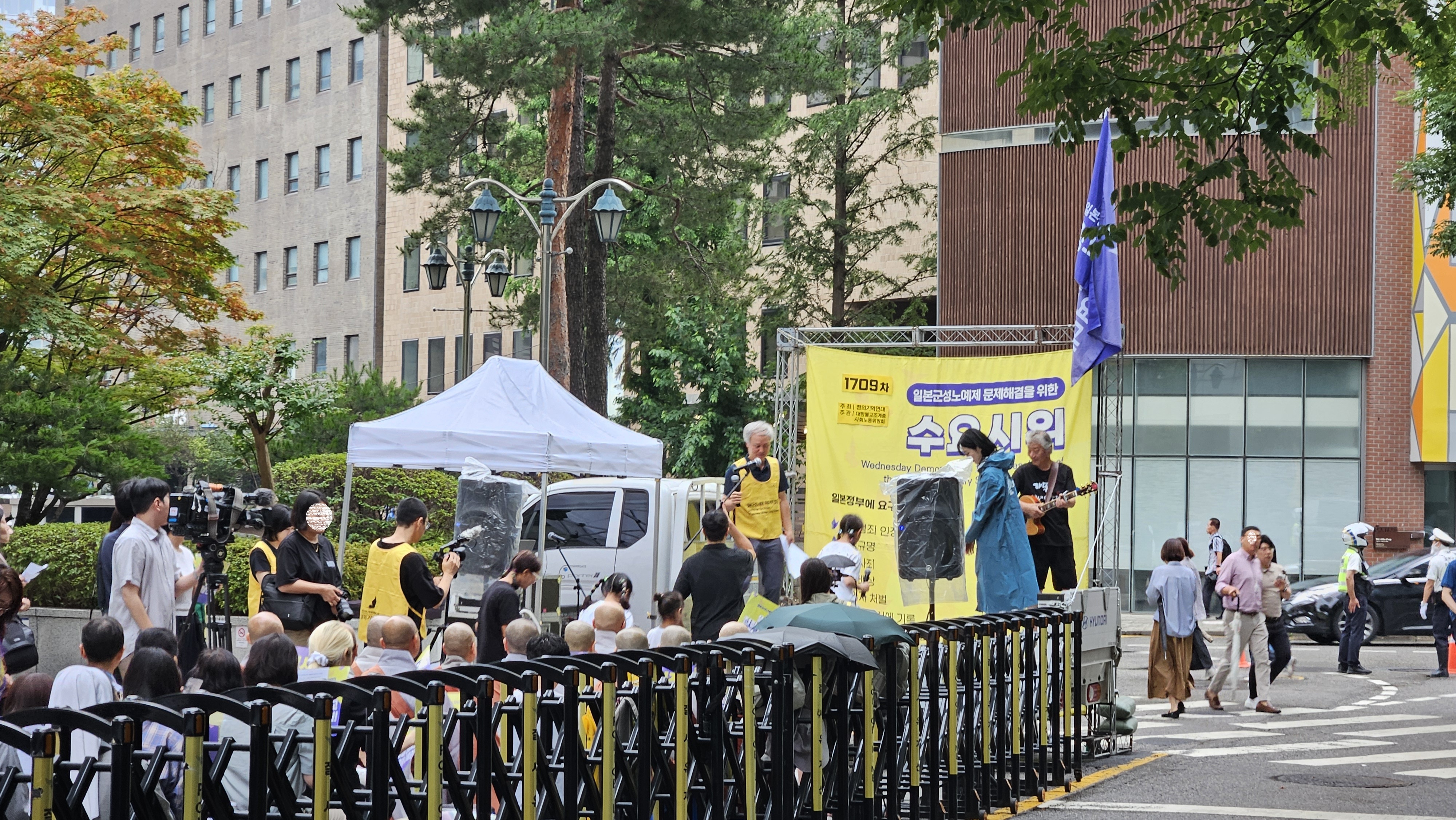 지난 수요일 점심시간에 일본대사관 앞을 지나가다가 1709차 일본군 성노예 문제해결을 위한 수요시위 현장을 보게 되었습니다.