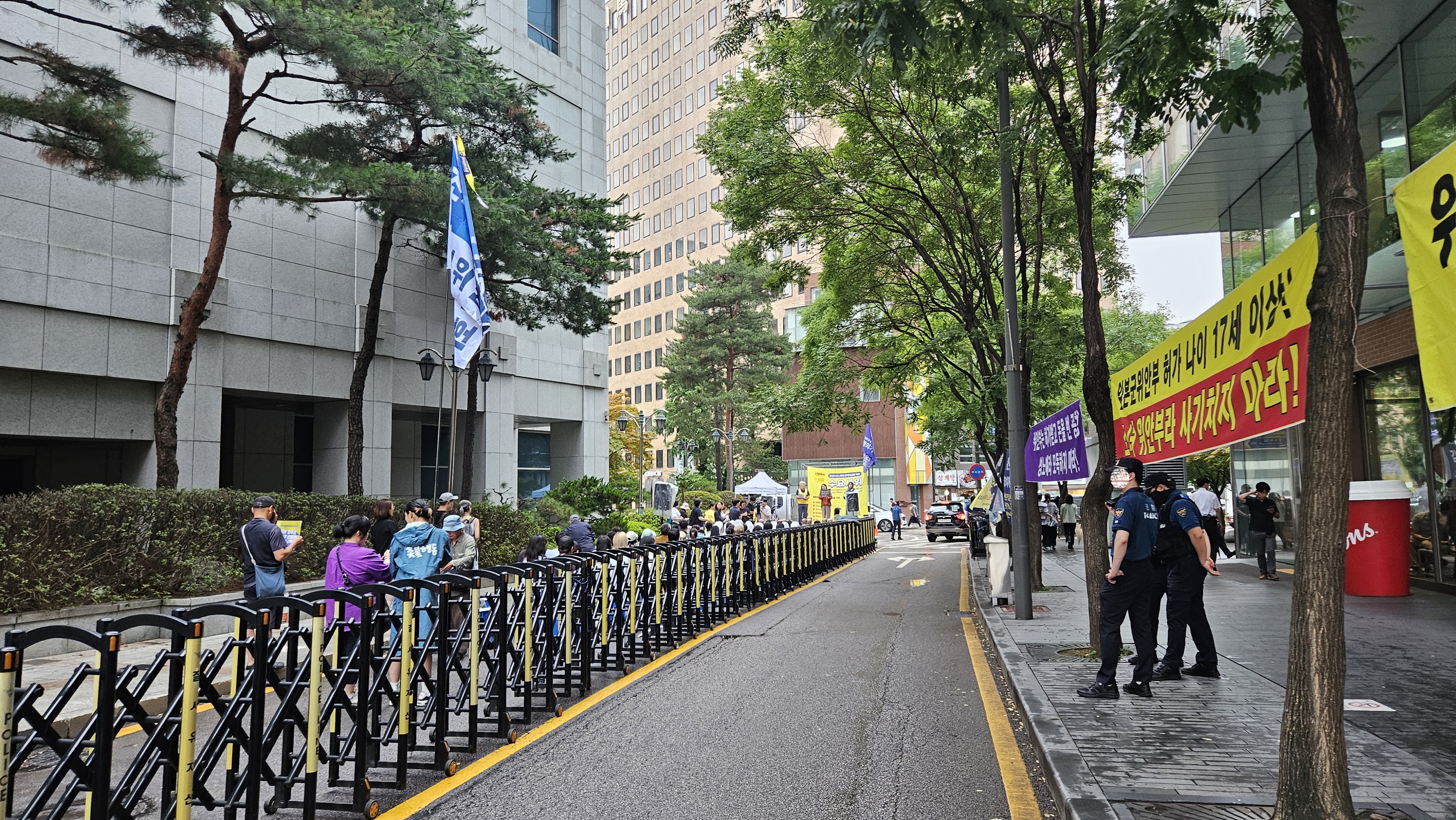 그리고 서울지방국세청 옆 율곡로 2길 노상에서 수요시위가 진행 중입니다.