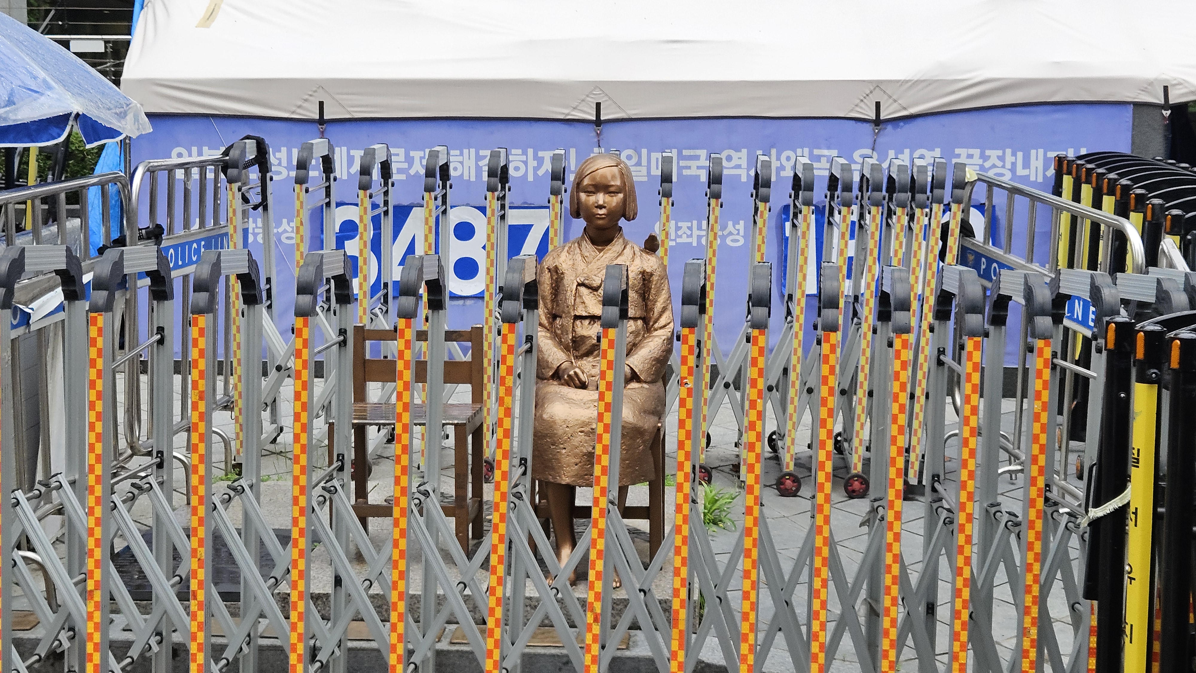 평화의 소녀상에서는 현재 3487일차 소녀상 철야농성이 진행되고 있습니다.