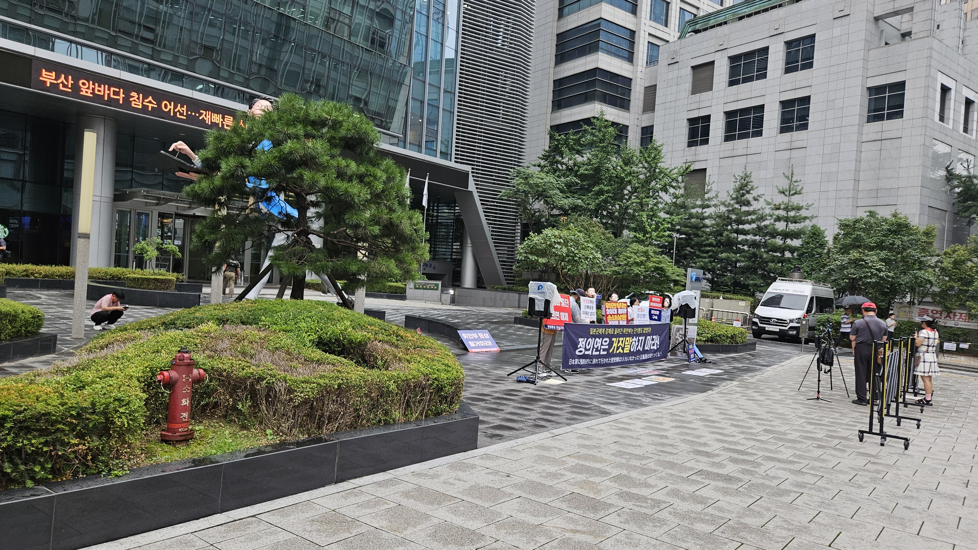수요시위 장소를 먼저 집회신고로 선점하기 위한 비열한 짓은 물론 수요시위 참여자에게 고함을 지르고 스피커로 모욕적인 발언을 하기도 한다고 합니다.
