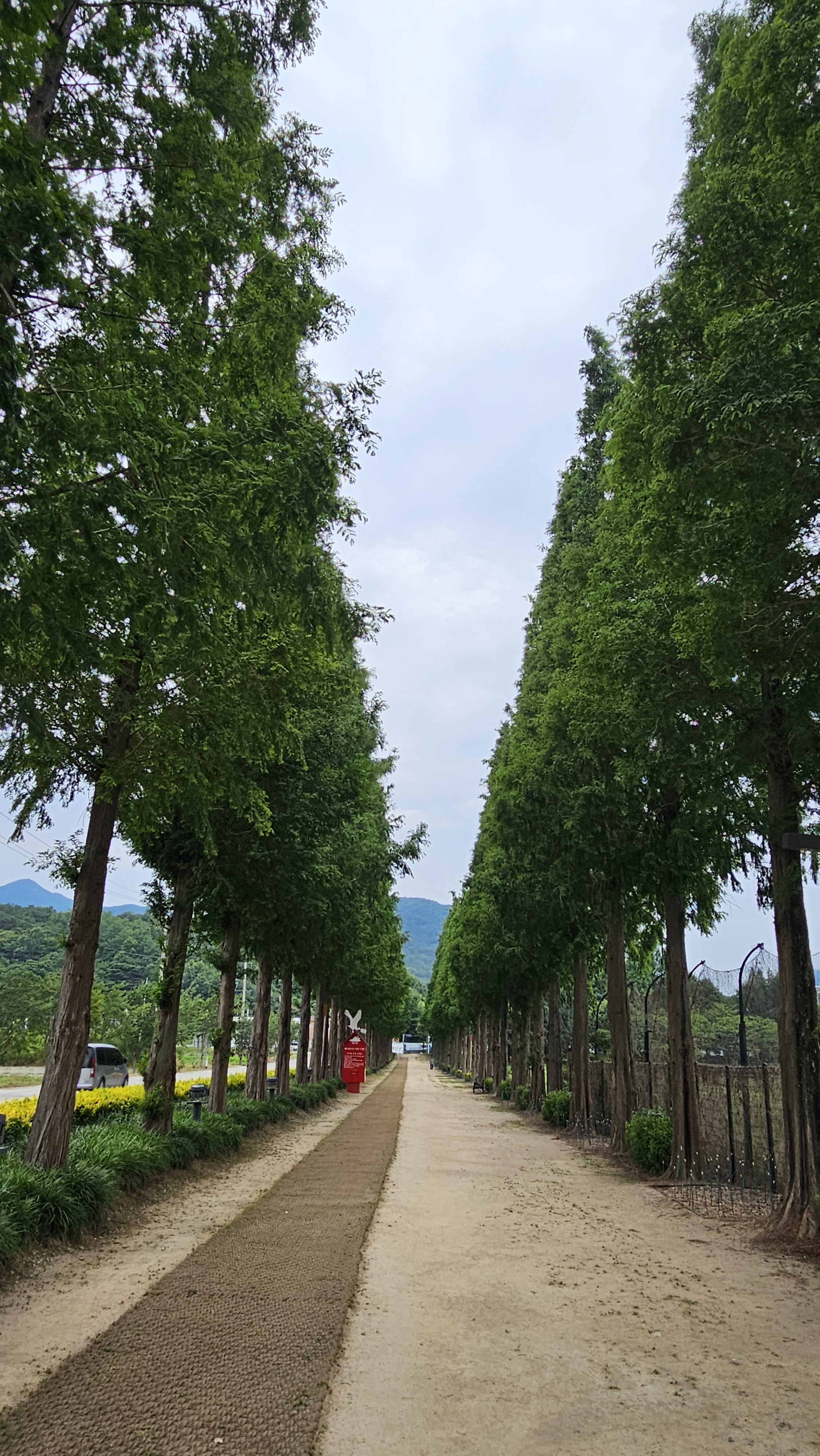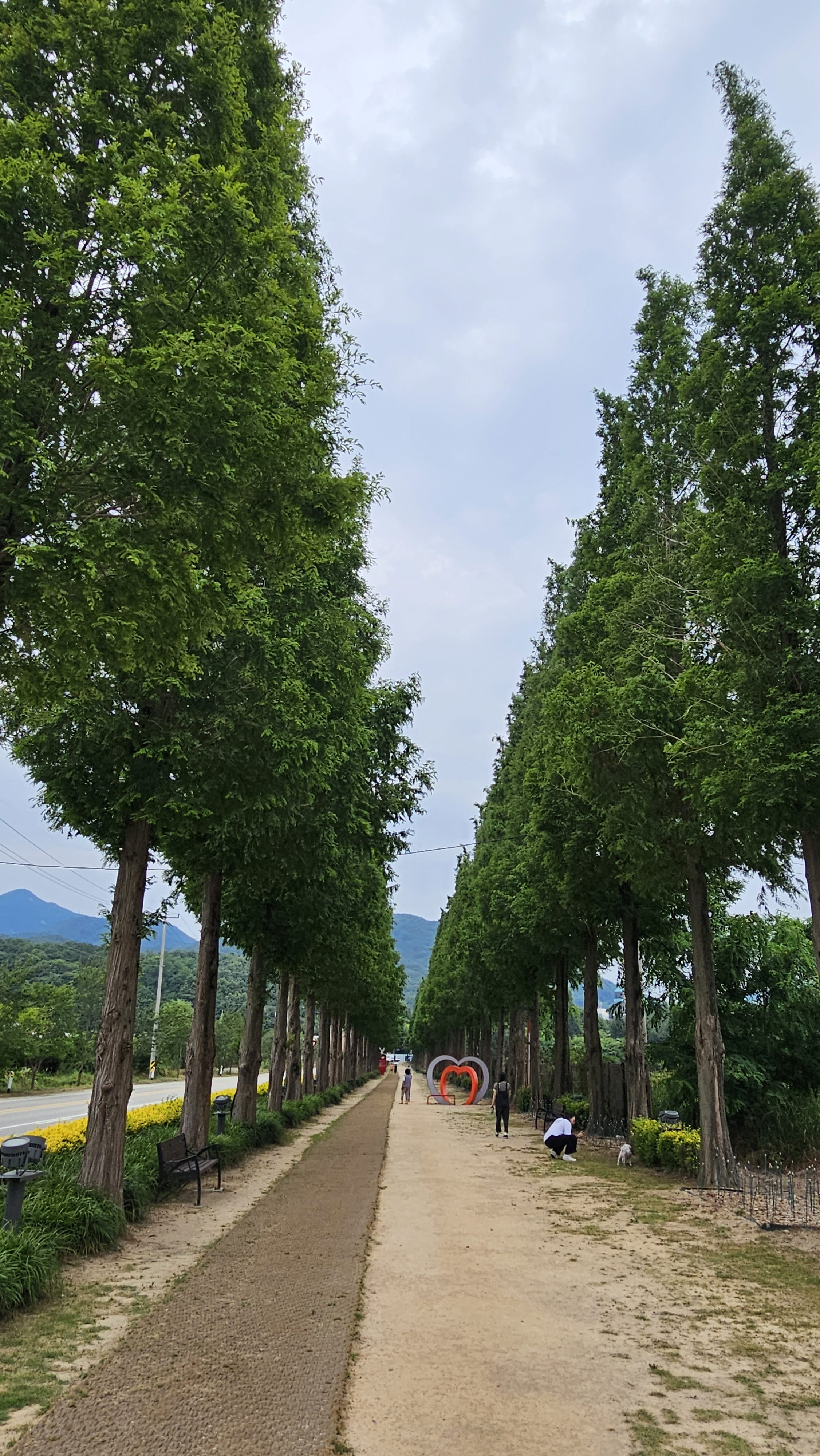 이날은 날씨가 흐려 햇빛이 없었는데, 날 좋은 날엔 메타세콰이아 사이로 스며드는 햇빛이 예쁠 것 같습니다.