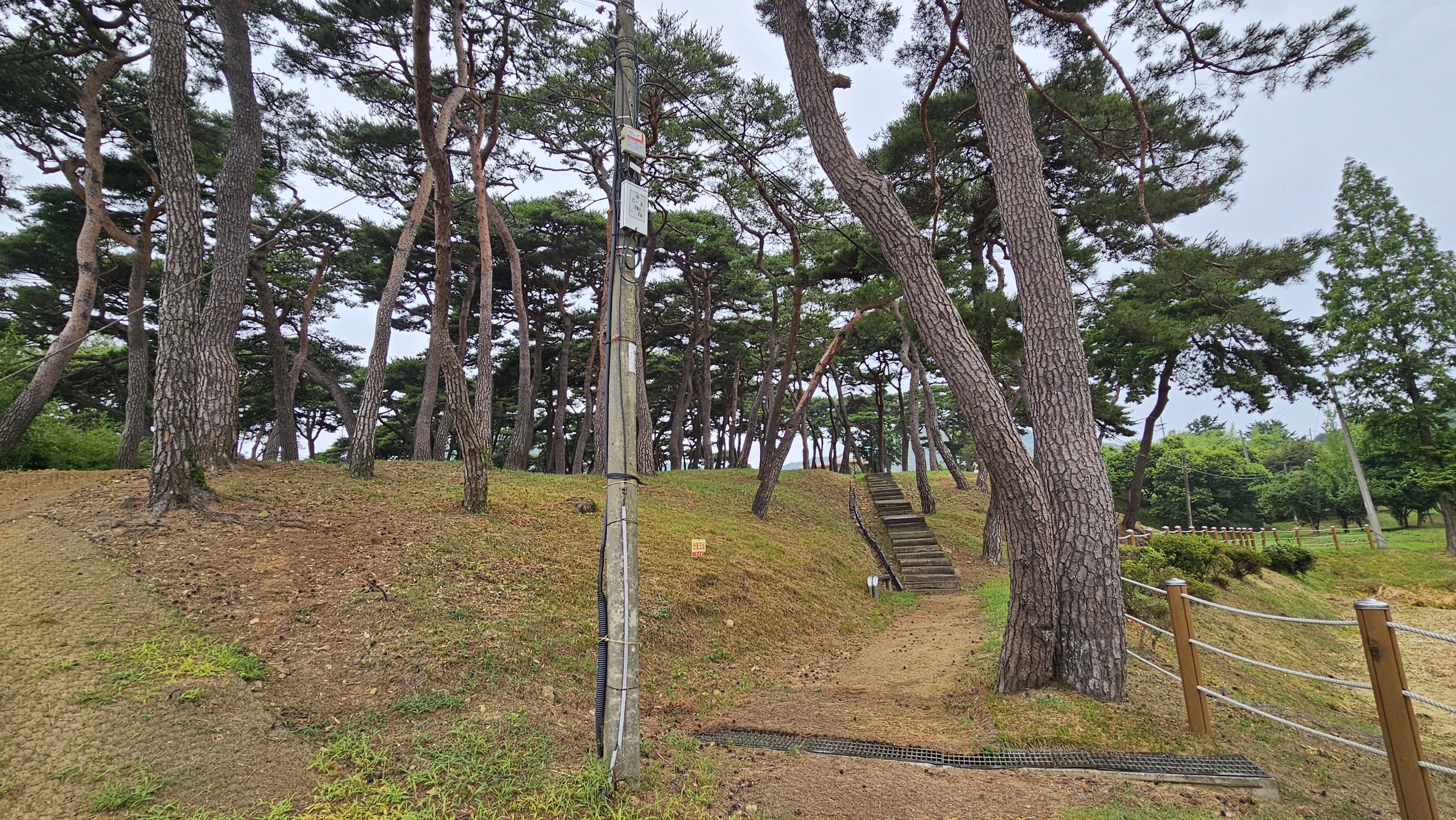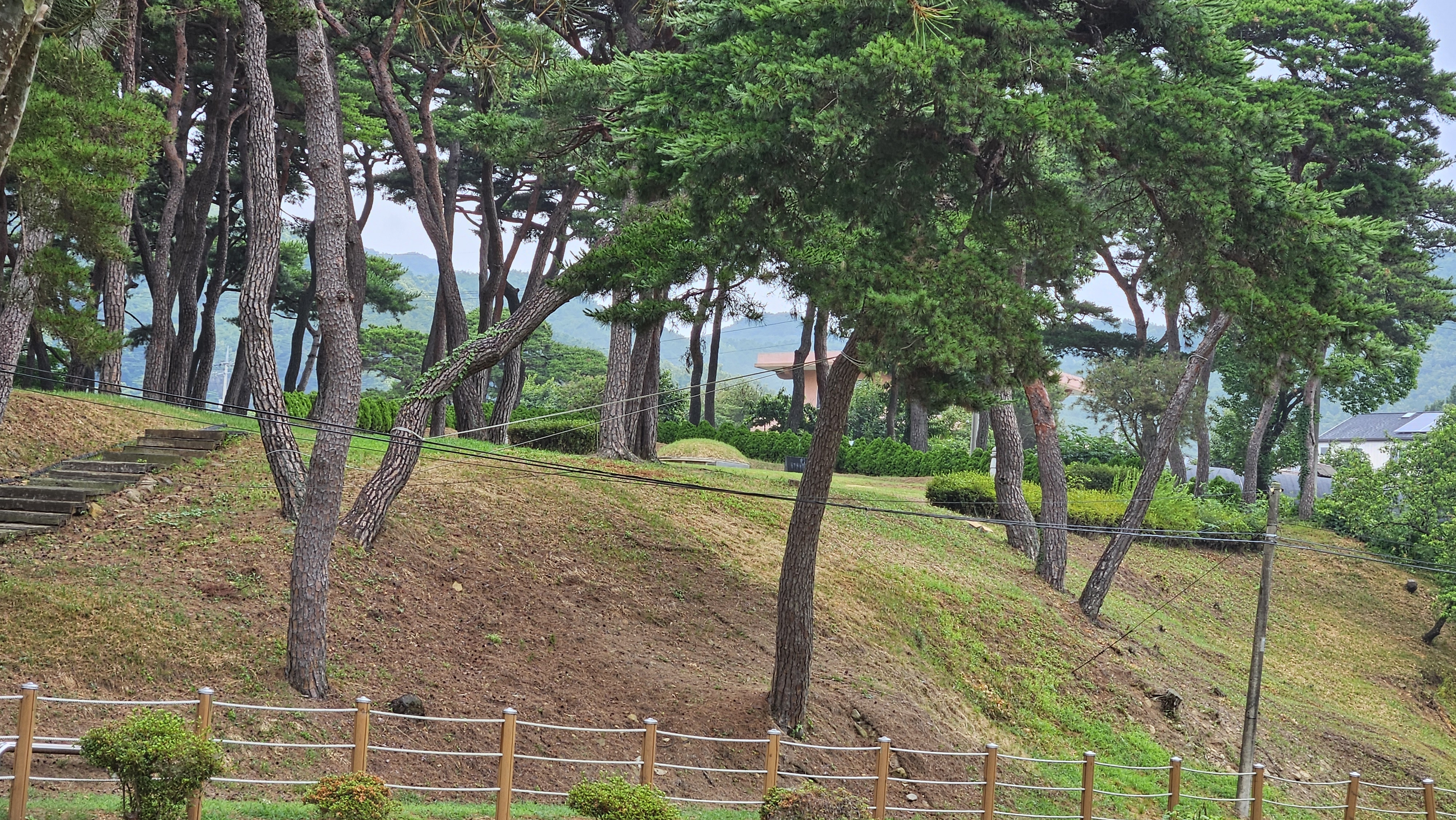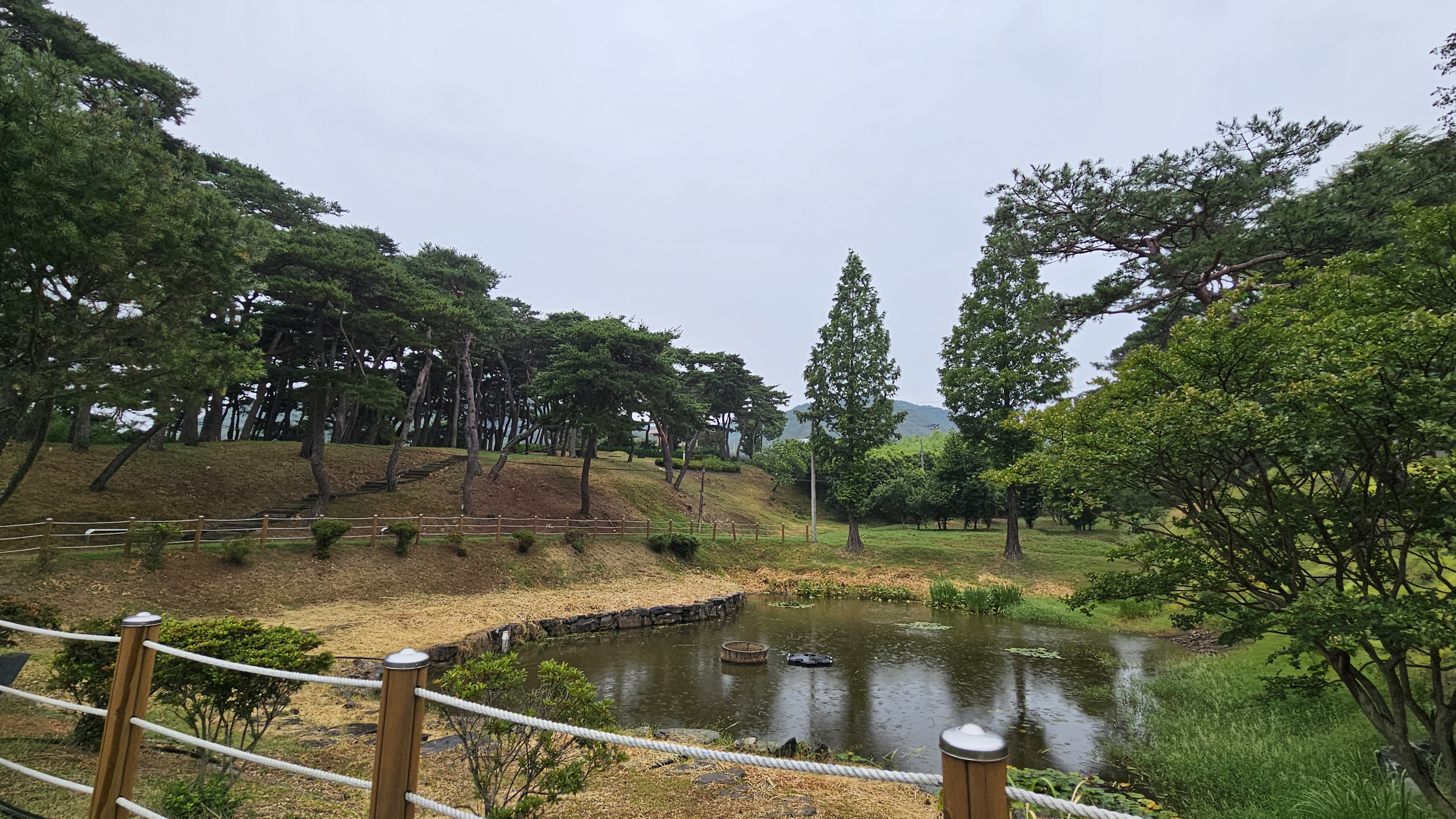 작은 연못이 있고, 그 위 소나무가 가득한 곳엔 배용순 여사 묘소가 있습니다.