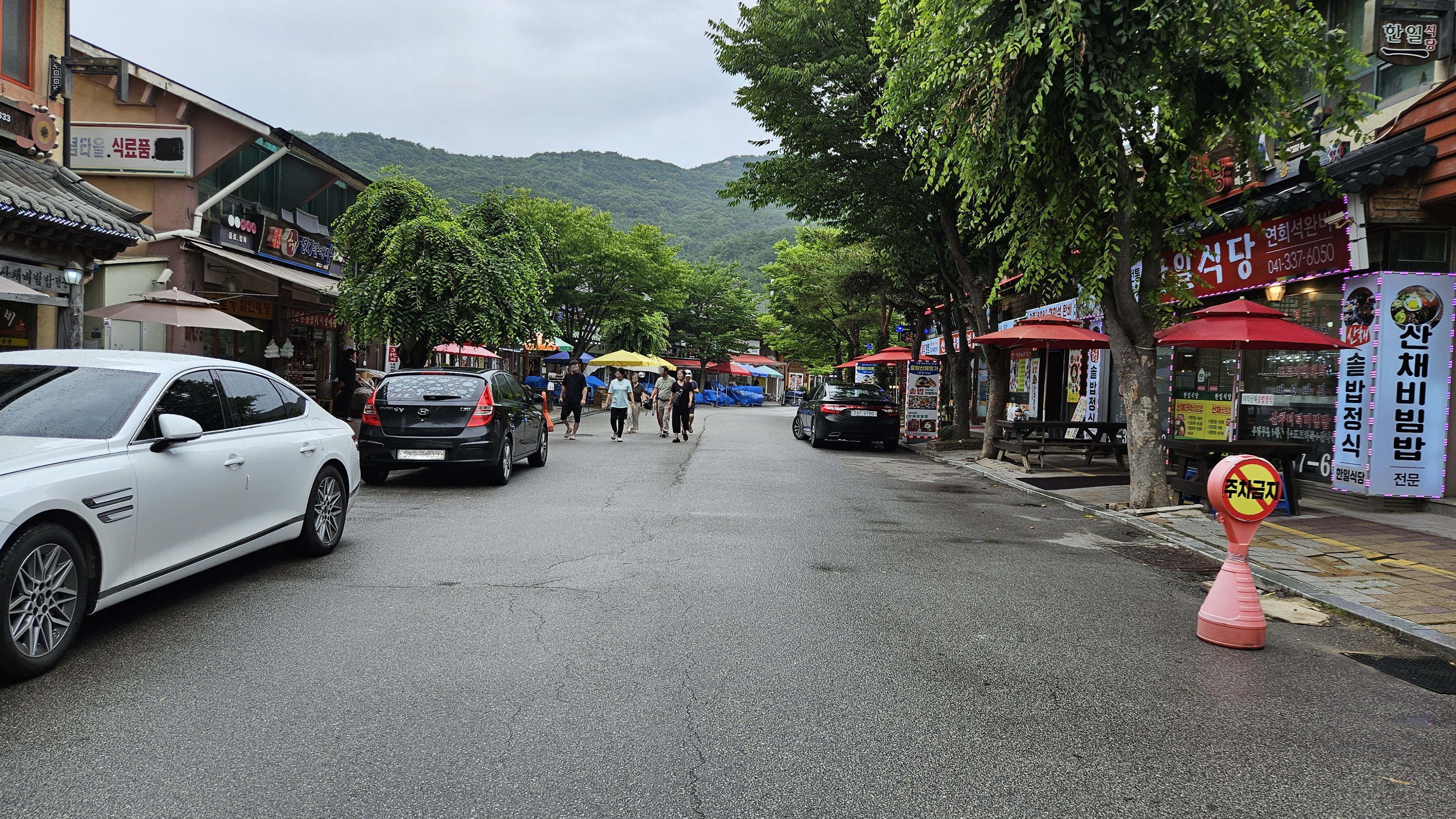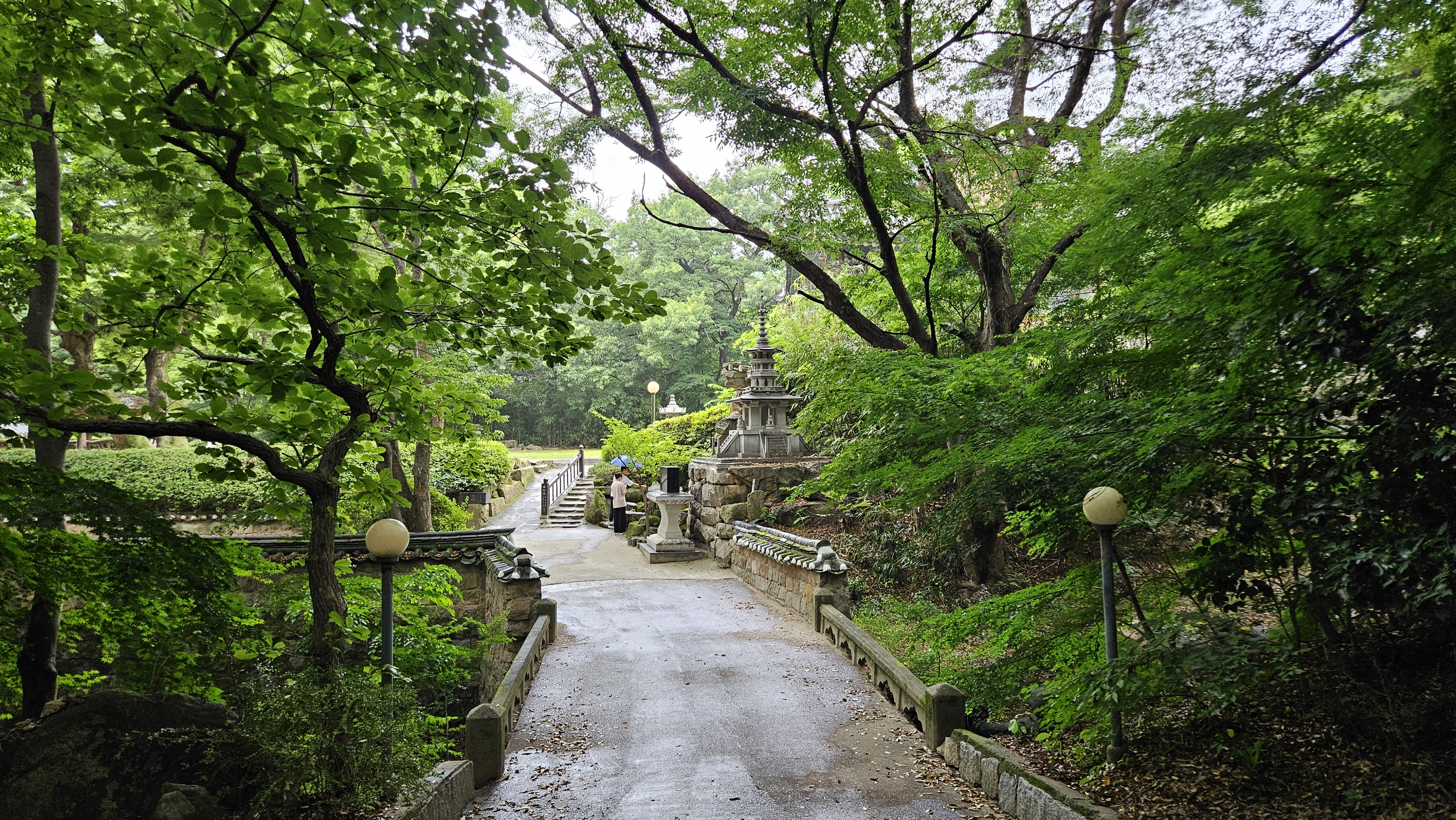 비 오는 날 운치 있는 수덕사 진입로 모습