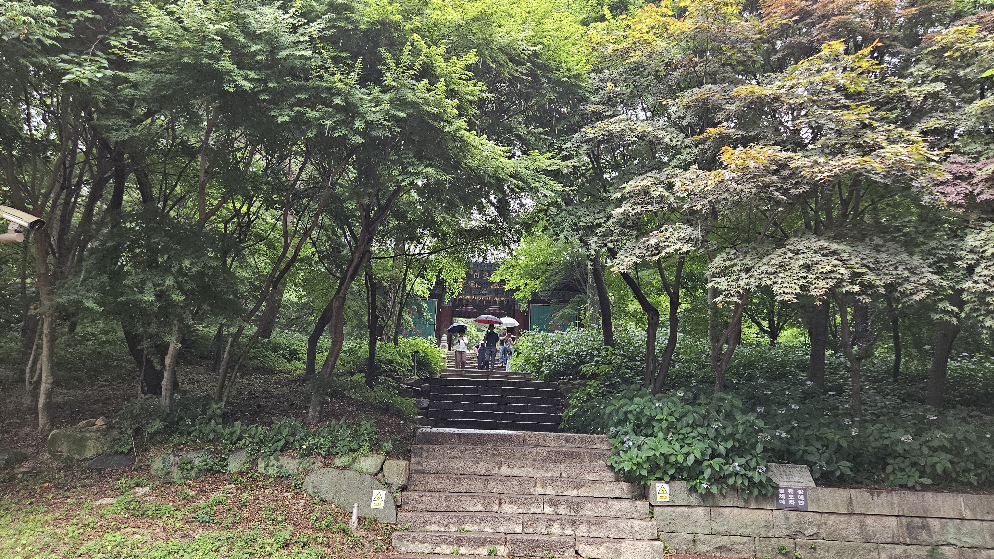 보슬비가 내리는 가운데 울창한 여름 숲이 무척 싱그럽게 느껴지네요.