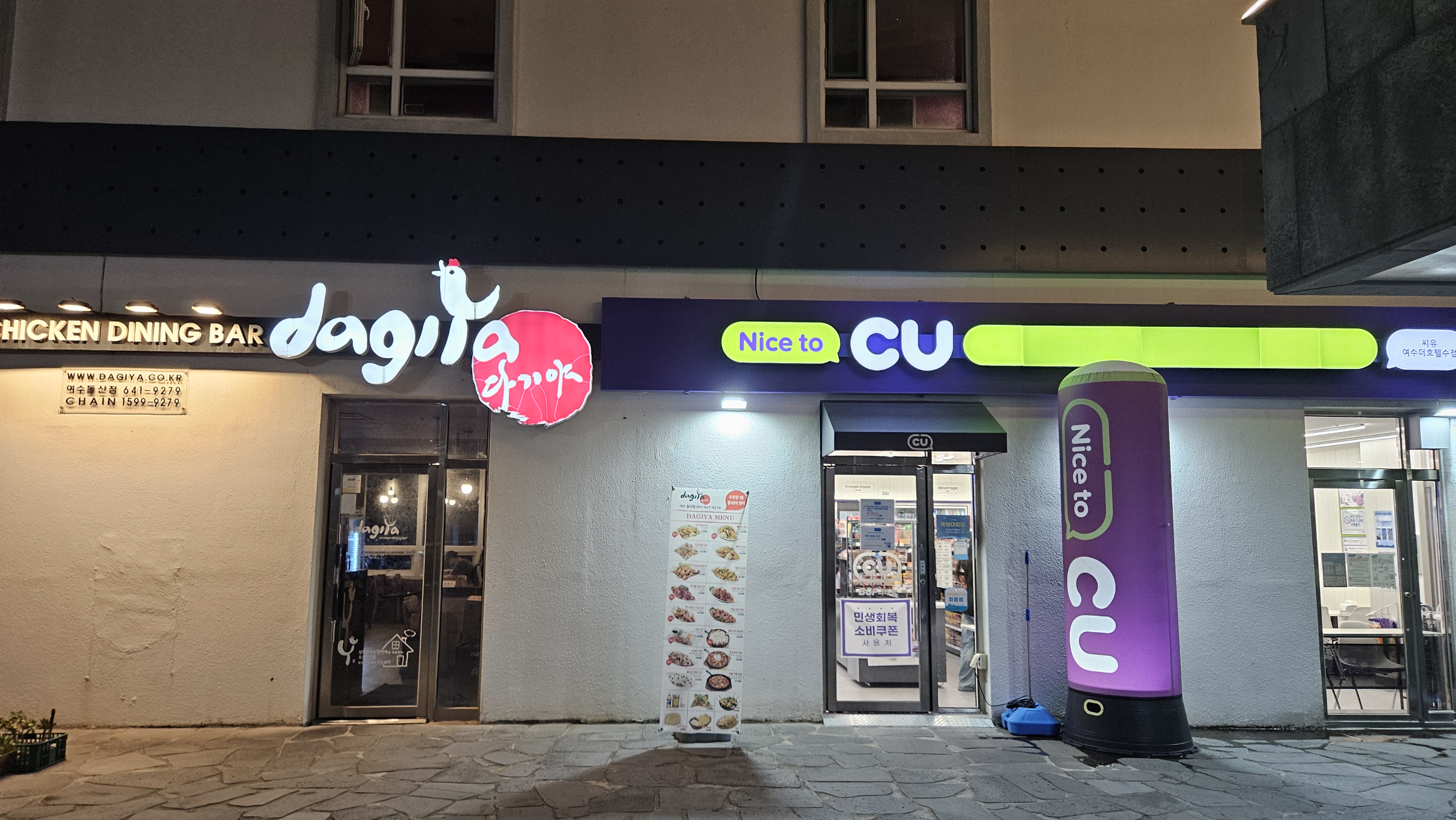 1층에 다기야 치킨집과 CU 편의점이 있습니다.