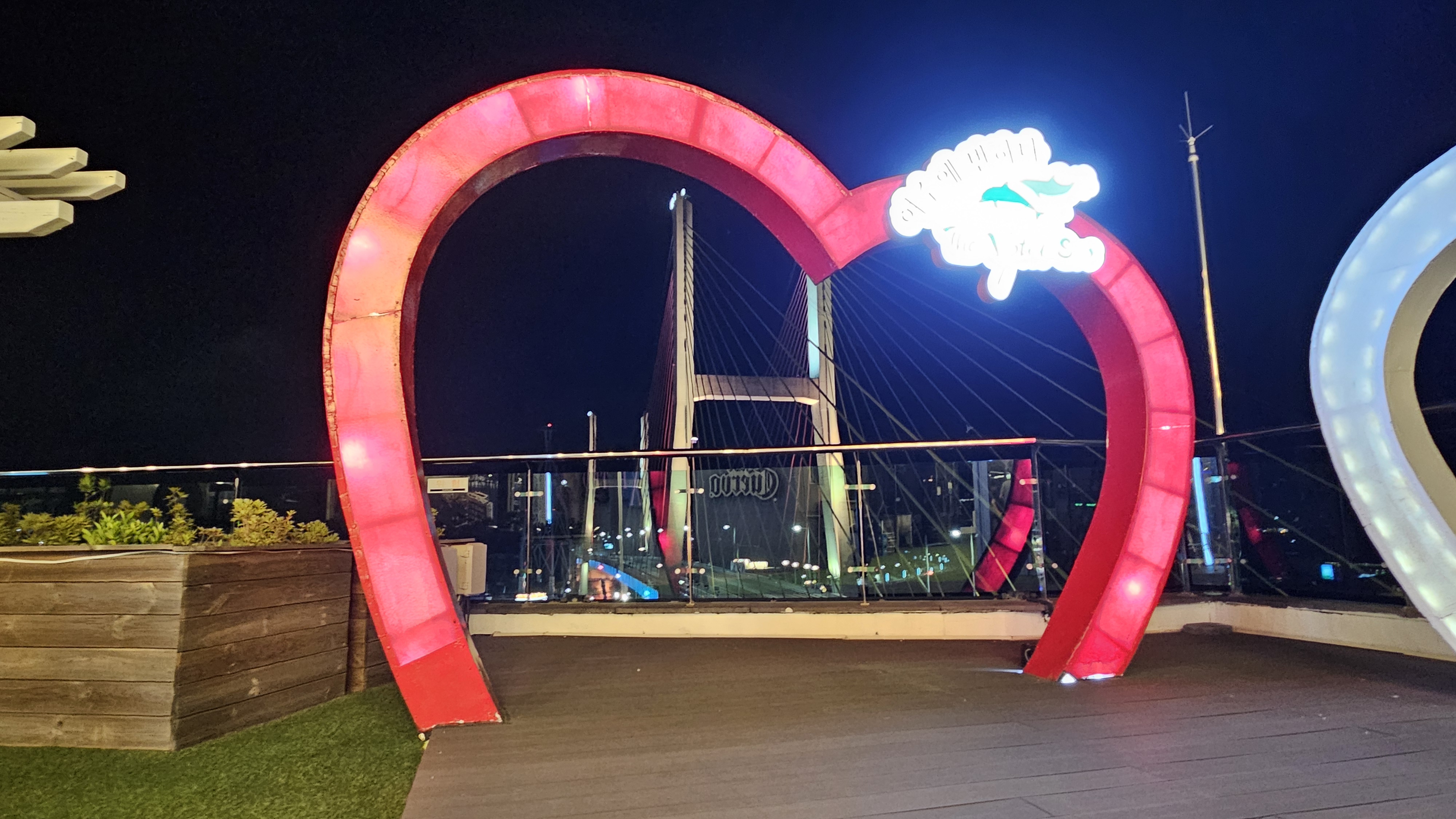 더호텔 수 옥상 전망대에서의 여수 밤바다 풍경